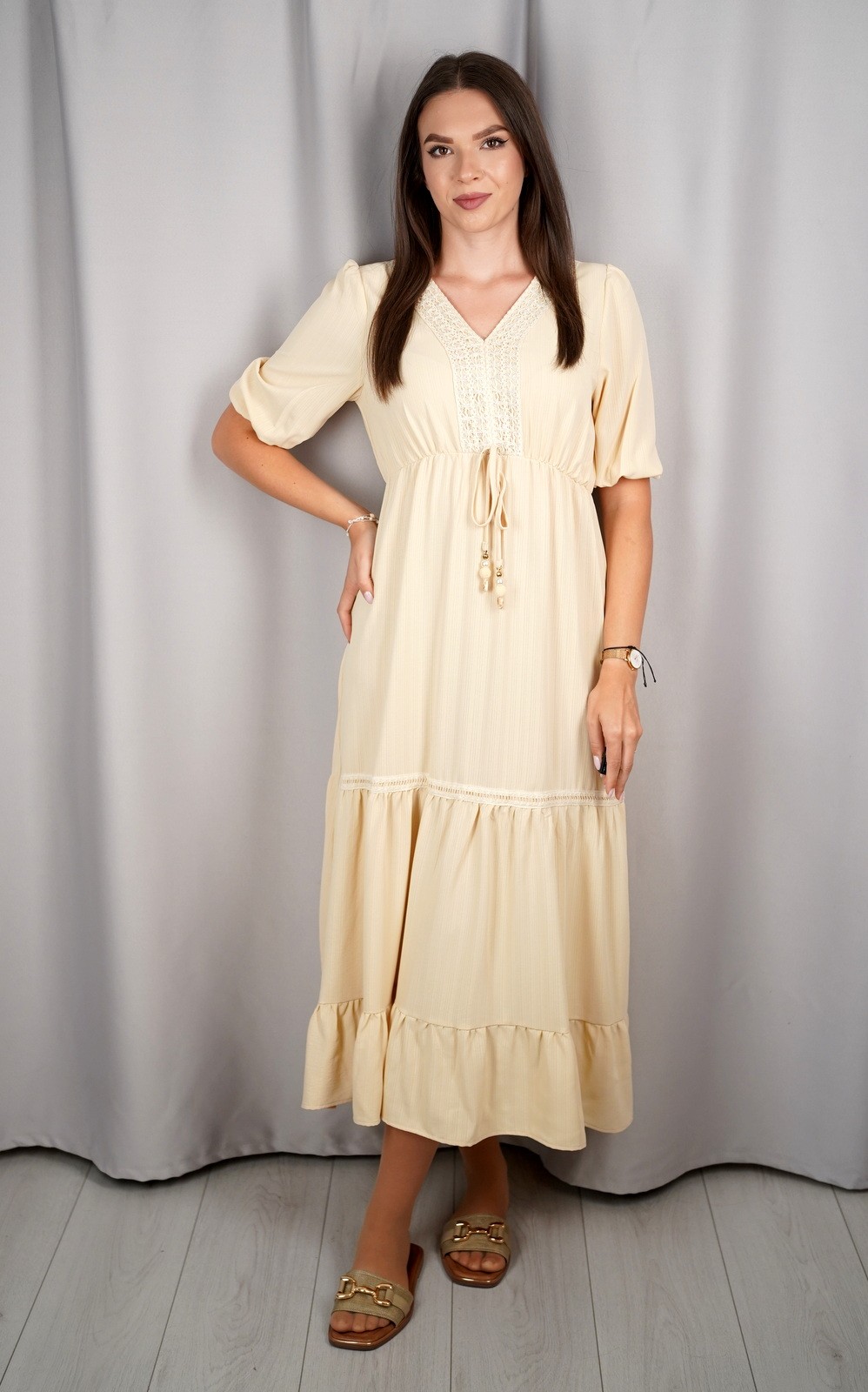 Ženska boho haljina s čipkastim detaljima i vezicom u struku – u veličinama – L135