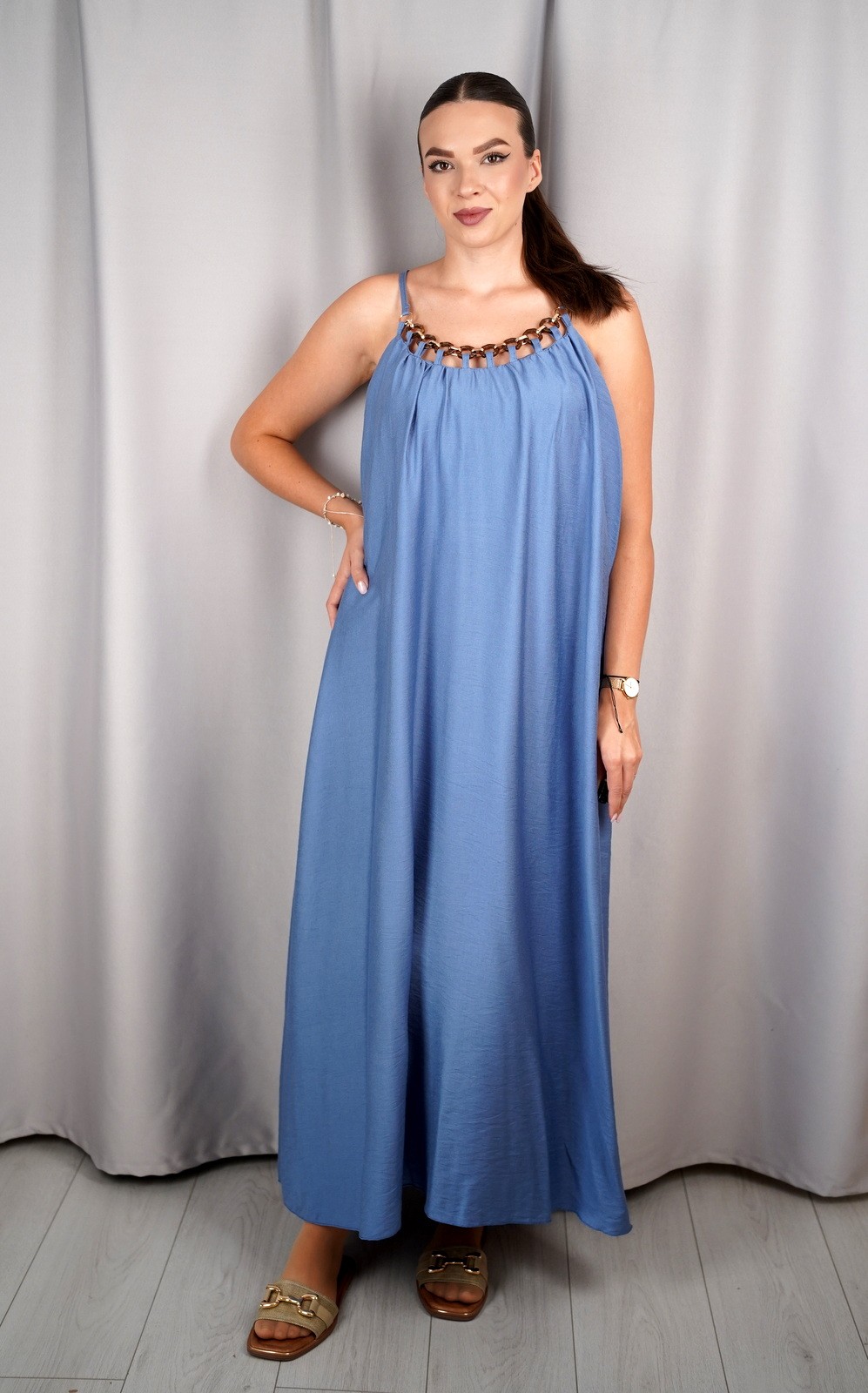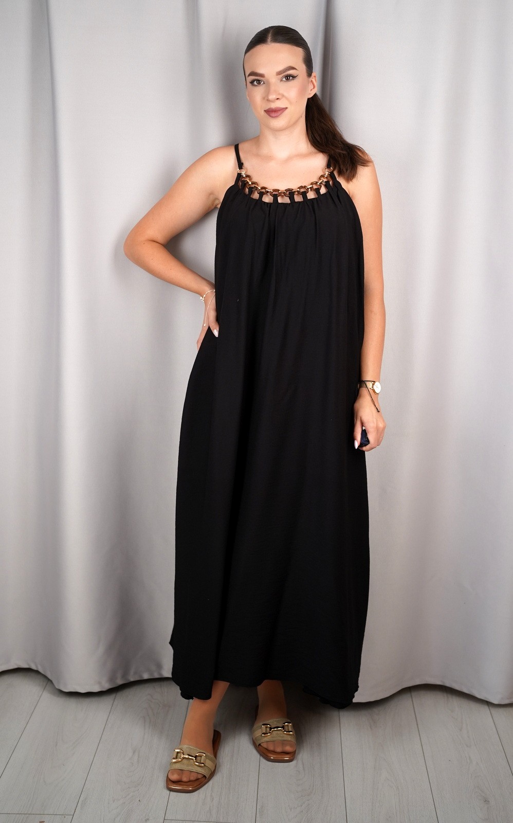 Ženska duga haljina s tankim naramenicama i dekorativnim lancem – ART:23338/23328