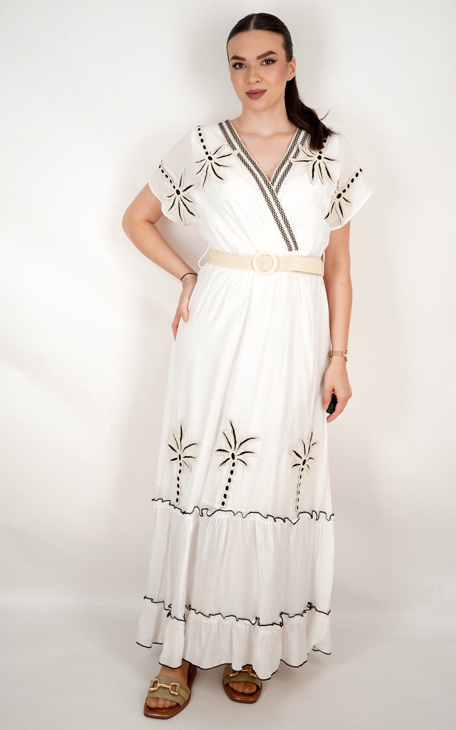 Ženska duga haljina s vezenim detaljima – pleteni remen gratis – 13523