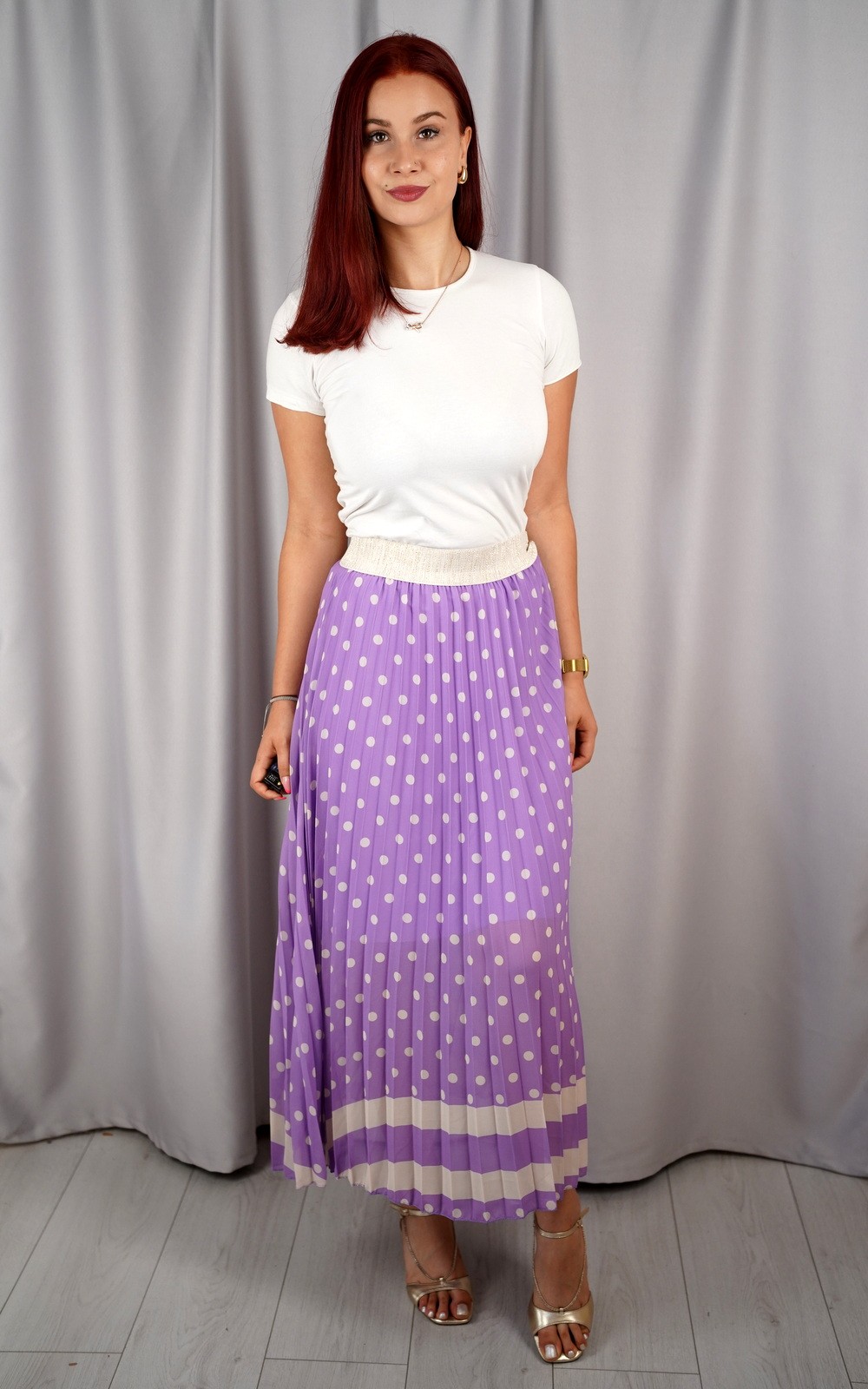 Ženska duga plisirana suknja s točkastim uzorkom – U8806