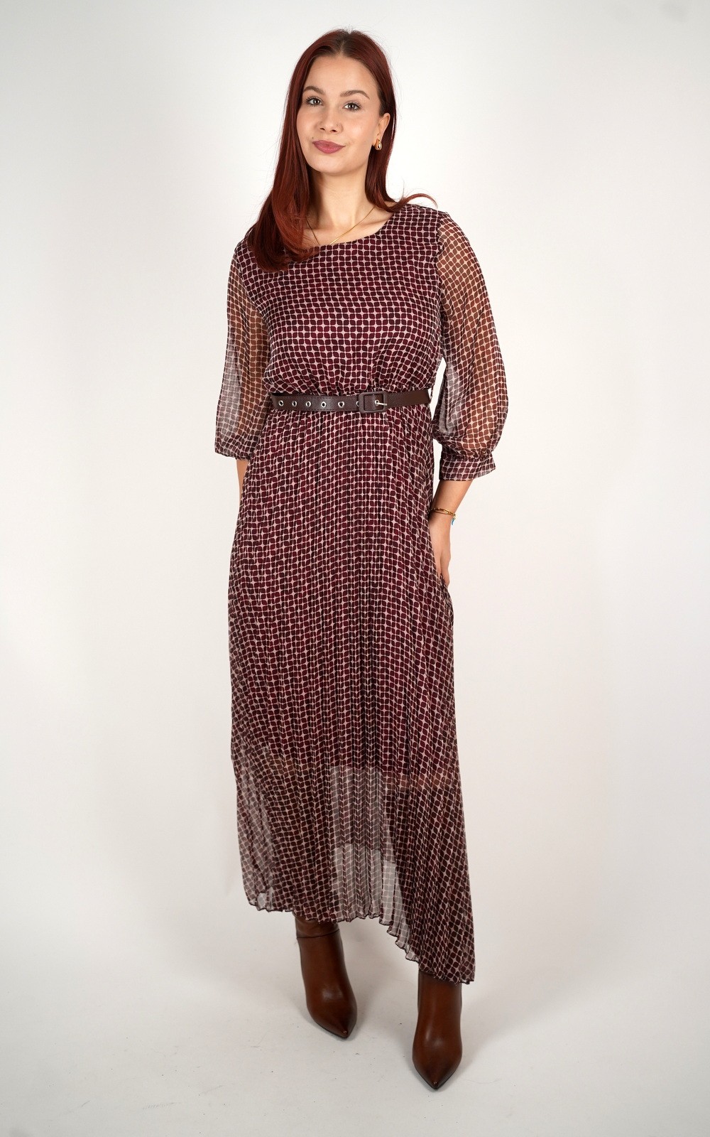 Ženska duga prozračna haljina s laganim rukavima i remenom u struku – 5387