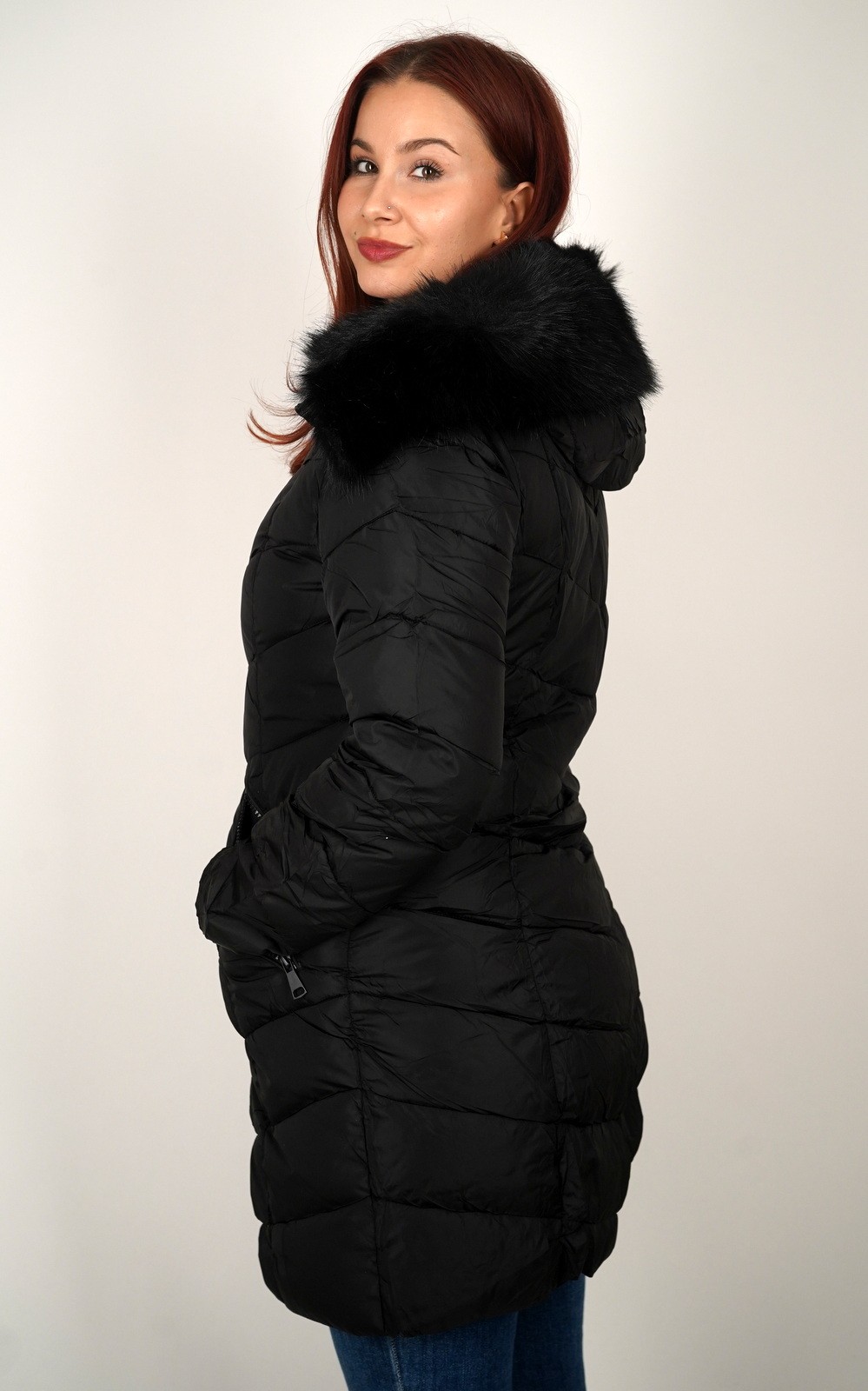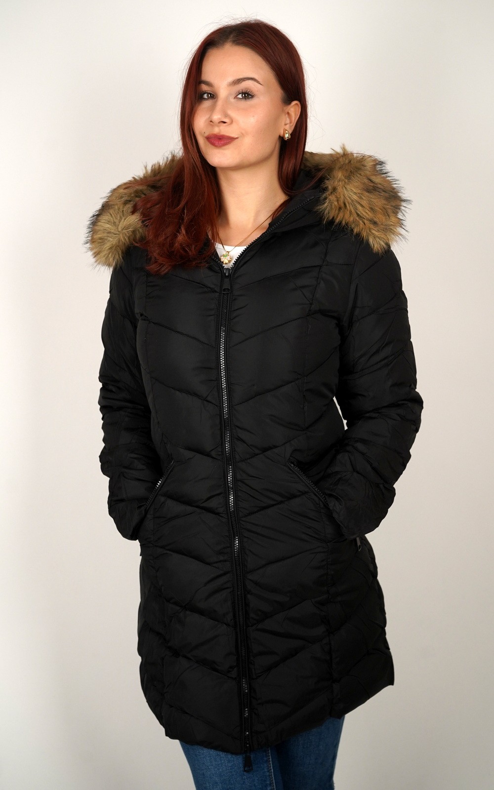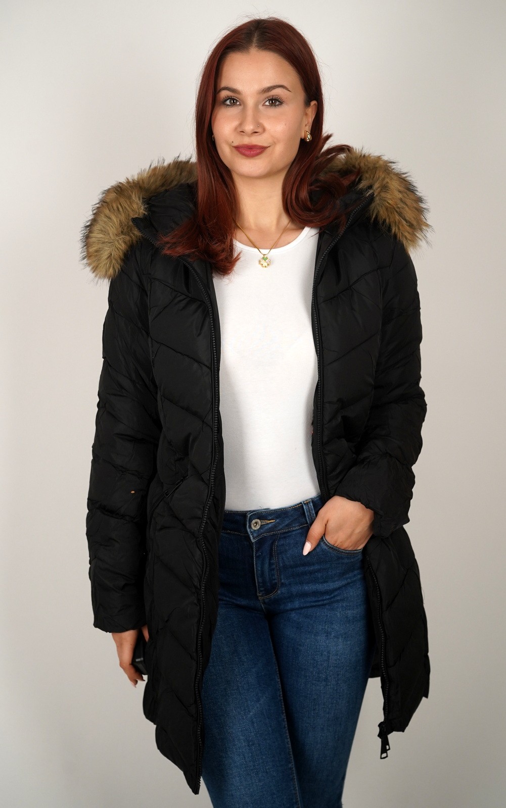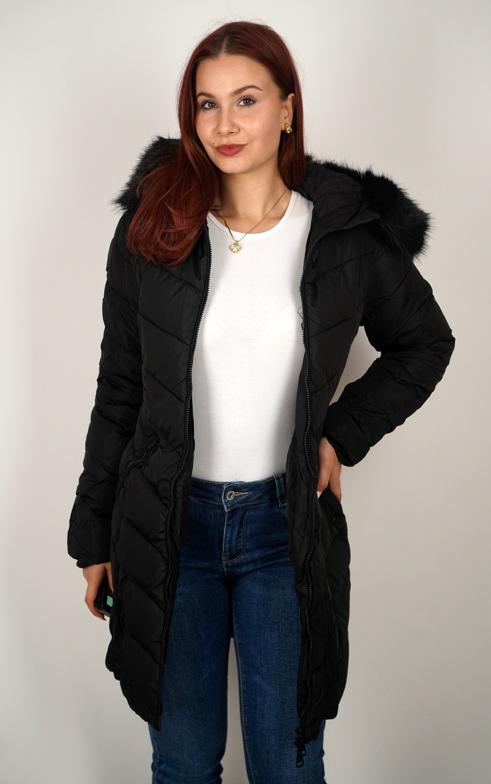 Ženska duža zimska jakna s krznom i kapuljačom – u veličinama – V6379