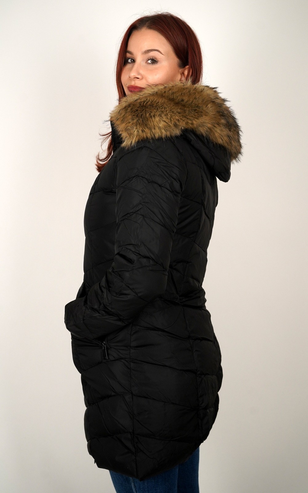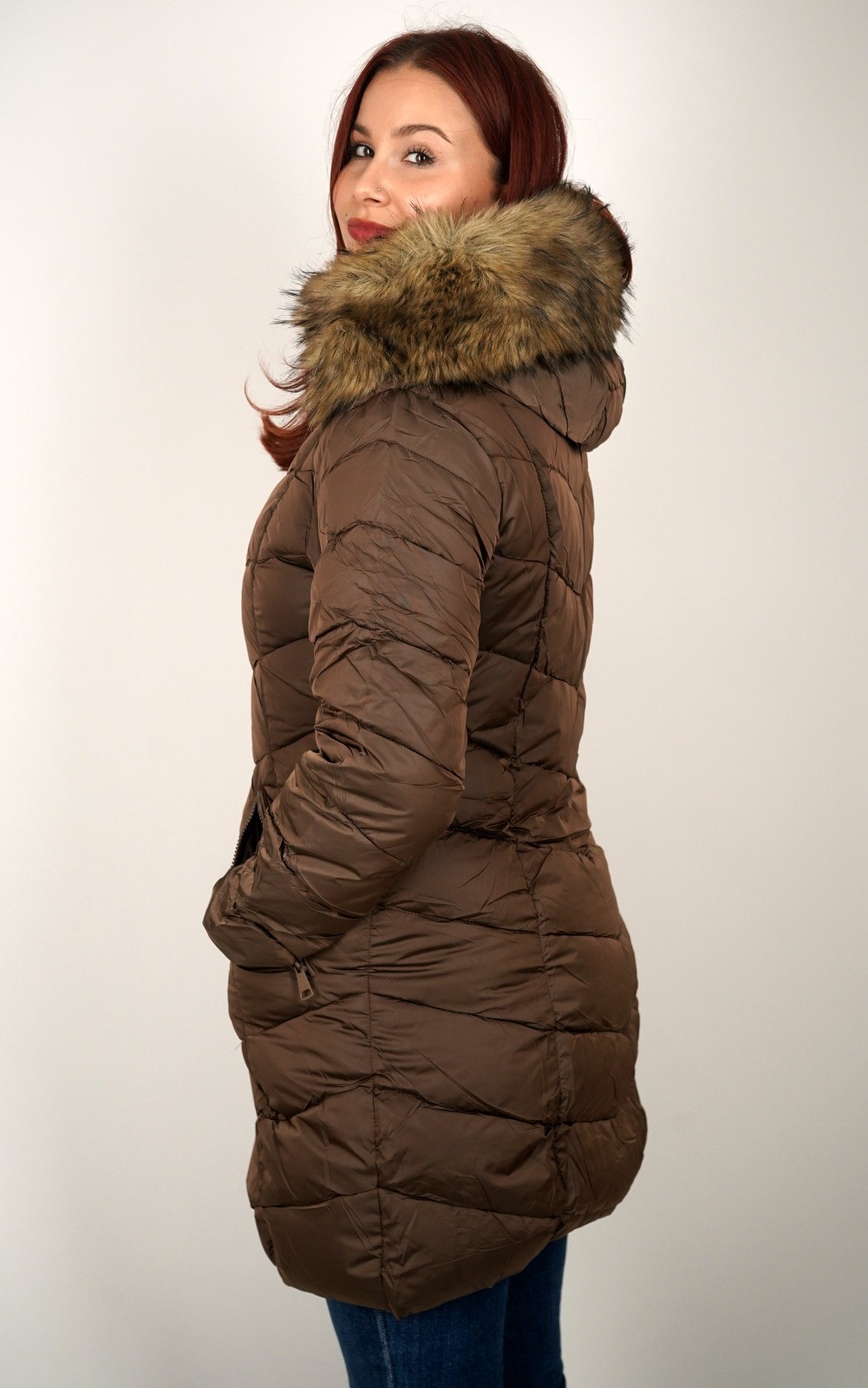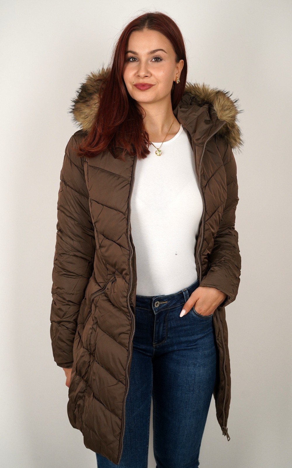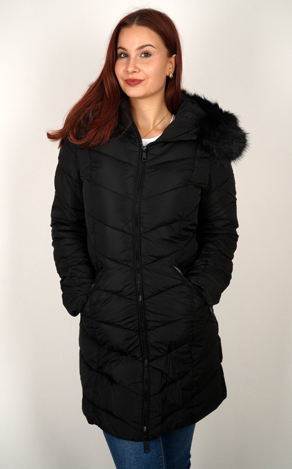 Ženska duža zimska jakna s krznom i kapuljačom – u veličinama – V6379
