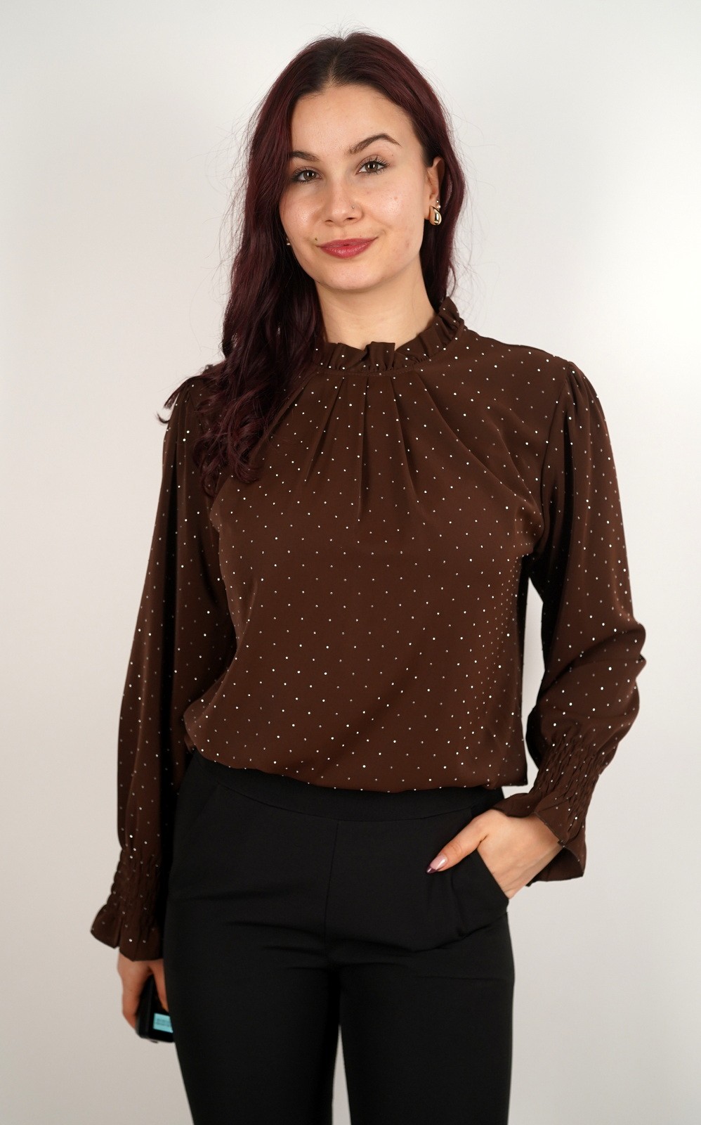Ženska elegantna košulja s cirkonima i plisiranim ovratnikom – ART:89842