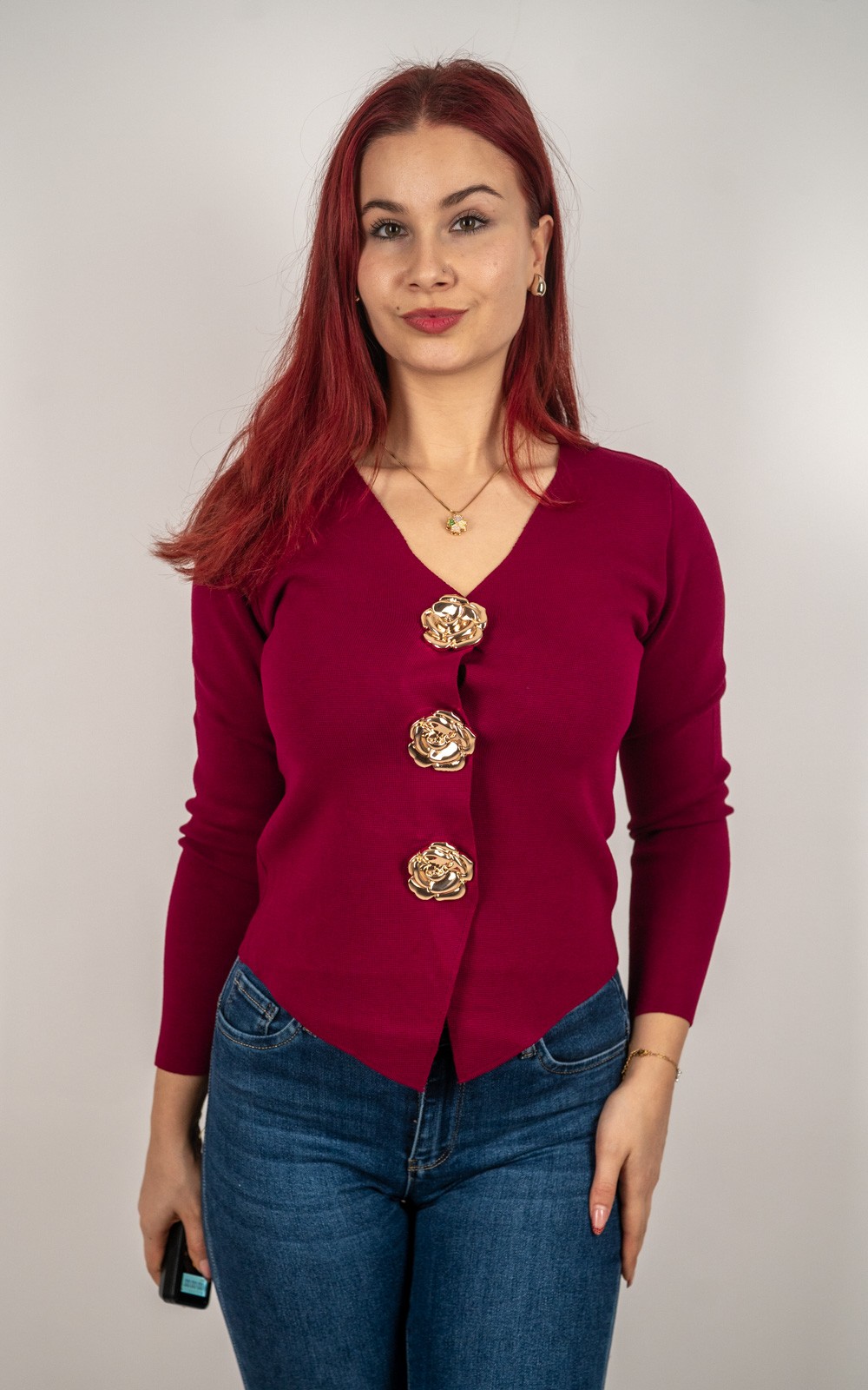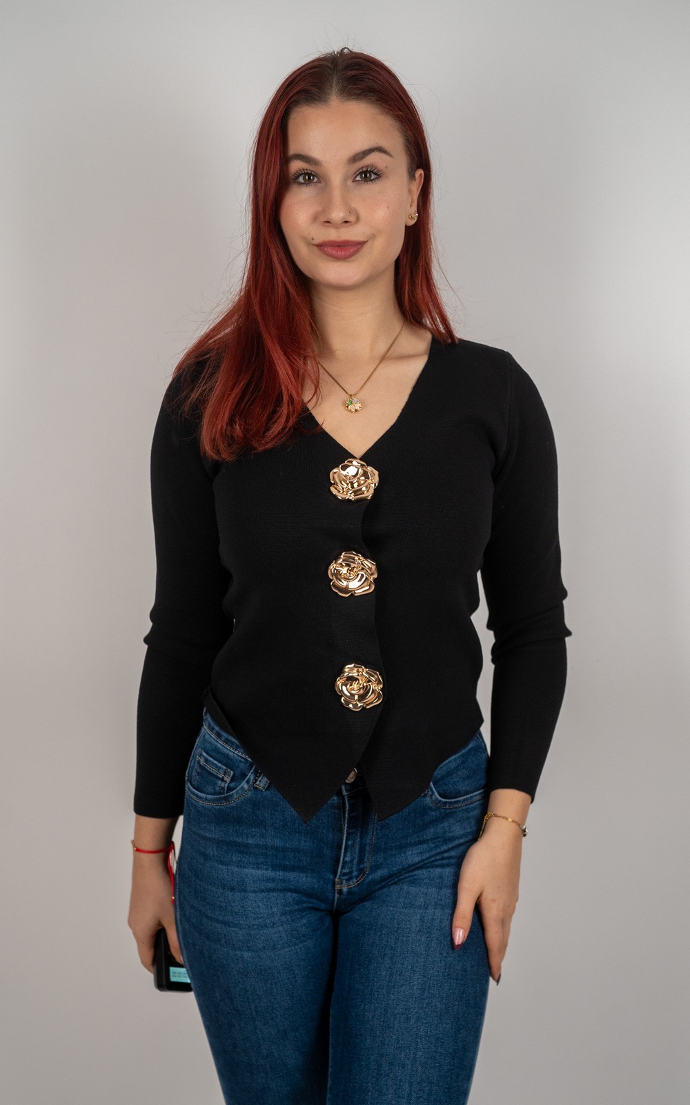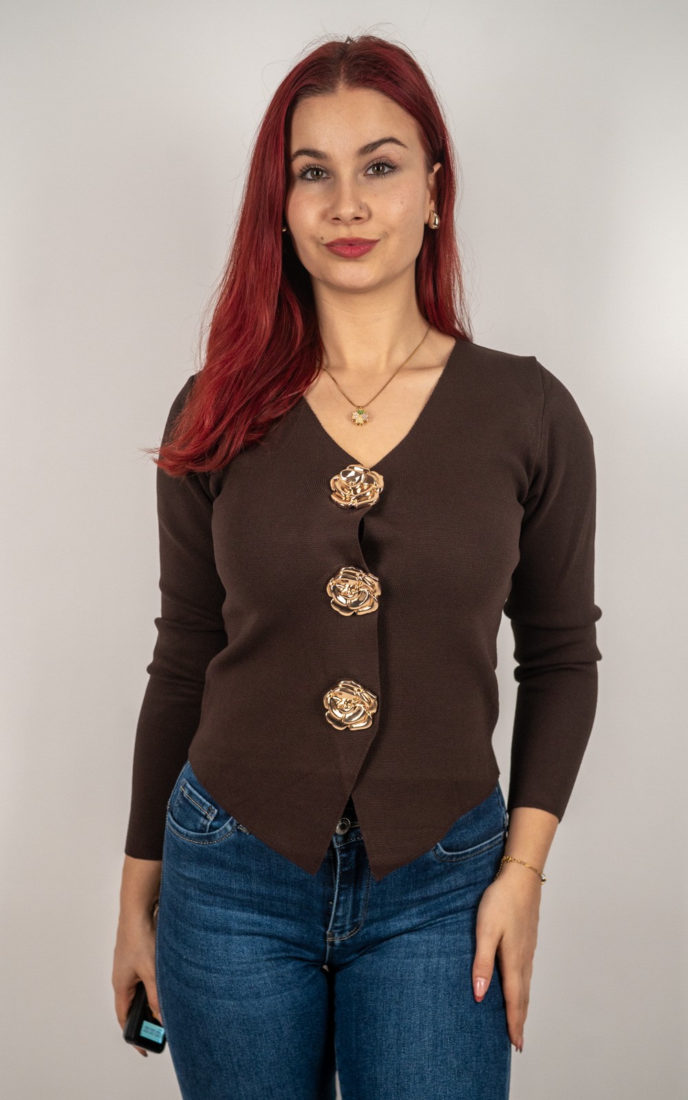 Ženska elegantna pletena majica/vesta s ukrasnim metalnim kopčama – 9784