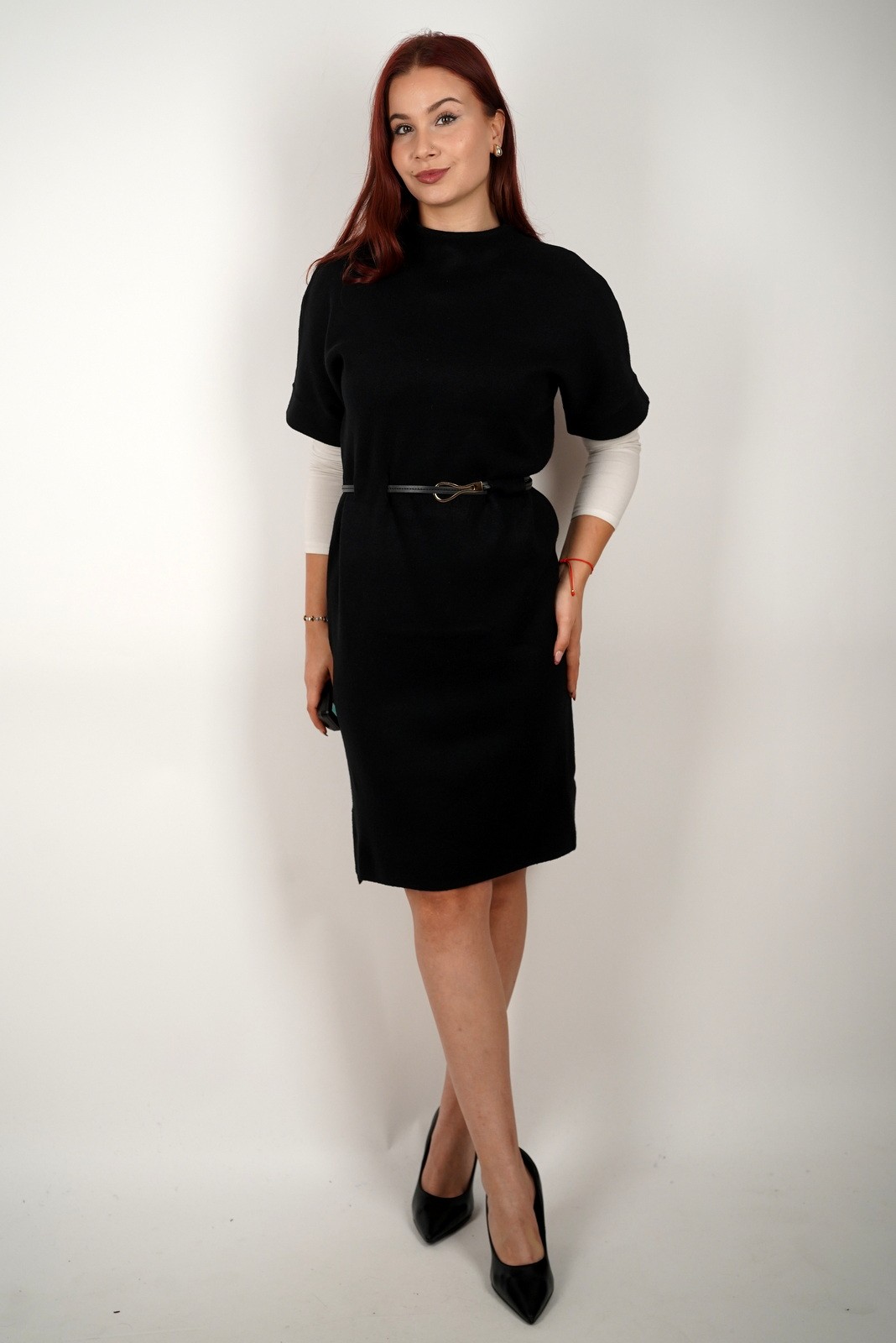 Ova elegantna ženska pletena haljina spaja udobnost pletiva s profinjenim krojem koji pristaje svakoj figuri. Kratki rukavi s podvrnutim rubom i decentni rol ovratnik daju dozu modernog minimalizma, dok tanki remen u struku naglašava siluetu i dodaje ženstveni dodir. Haljina je izrađena od mekanog i toplog materijala koji pruža osjećaj ugode, idealna za prijelazno razdoblje ili slojevite zimske kombinacije. Može se nositi samostalno s elegantnim salonkama ili u kombinaciji s dolčevitom i čizmama za urbaniji izgled. Savršena za posao, kavu s prijateljicama ili večernji izlazak.