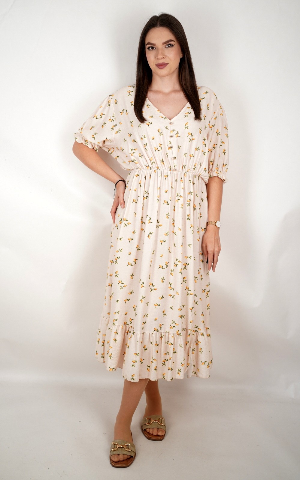 bozic30 očekuje te snižena cijena od 14.00 € za ovaj artikl u košarici.Lepršava midi haljina s nježnim uzorkom, idealna za svakodnevne šetnje, izlete ili ljetne večeri. Elastični struk ističe figuru, dok lagani volani i opušteni kroj pružaju maksimalnu udobnost. V-izrez i kratki rukavi daju haljini ženstven izgled, a dužina ispod koljena savršeno balansira eleganciju i ležernost. Napravljena od prozračnog materijala koji omogućuje koži da diše, ova haljina je neizostavan komad u ljetnoj garderobi.