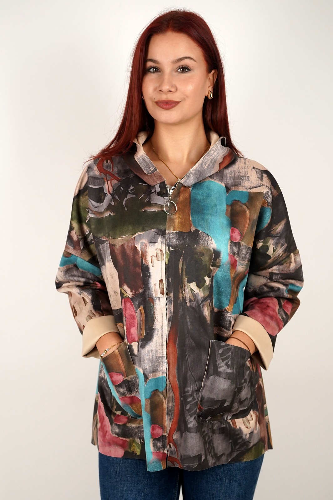 bozic10 očekuje te snižena cijena od 27.00 € za ovaj artikl u košarici.Ova ženska jakna kombinira udobnost i moderan izgled u jednom komadu. Izrađena je od laganog materijala koji je idealan za prijelazna razdoblja poput proljeća i jeseni. Apstraktni uzorak daje joj jedinstven i umjetnički dojam, dok kapuljača i praktični džepovi osiguravaju funkcionalnost u svakodnevnom nošenju. Patentni zatvarač s dekorativnim prstenom dodatno naglašava moderan izgled, a ležerni kroj pruža slobodu pokreta i lako se kombinira s trapericama, tenisicama ili elegantnijom obućom. Savršen izbor za sve koje žele spoj stila i praktičnosti u jednom odjevnom komadu.
