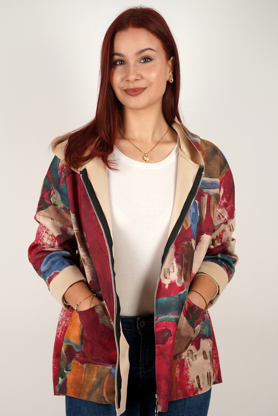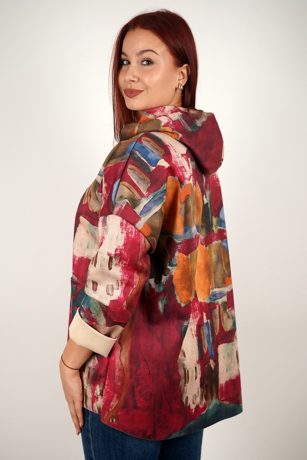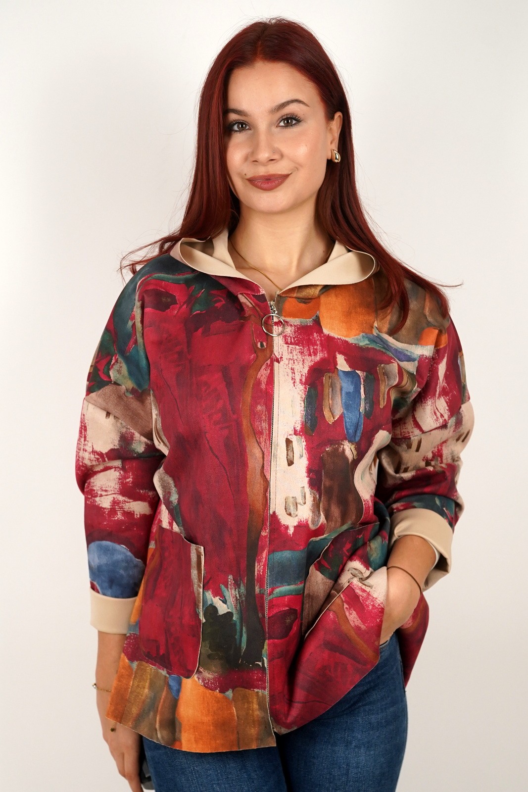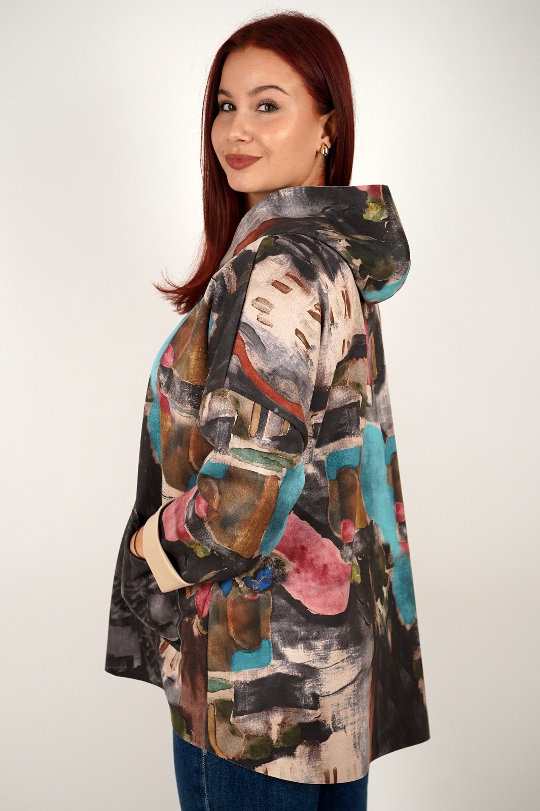 Ženska jakna brušena eko koža s apstraktnim uzorkom i kapuljačom – 5075