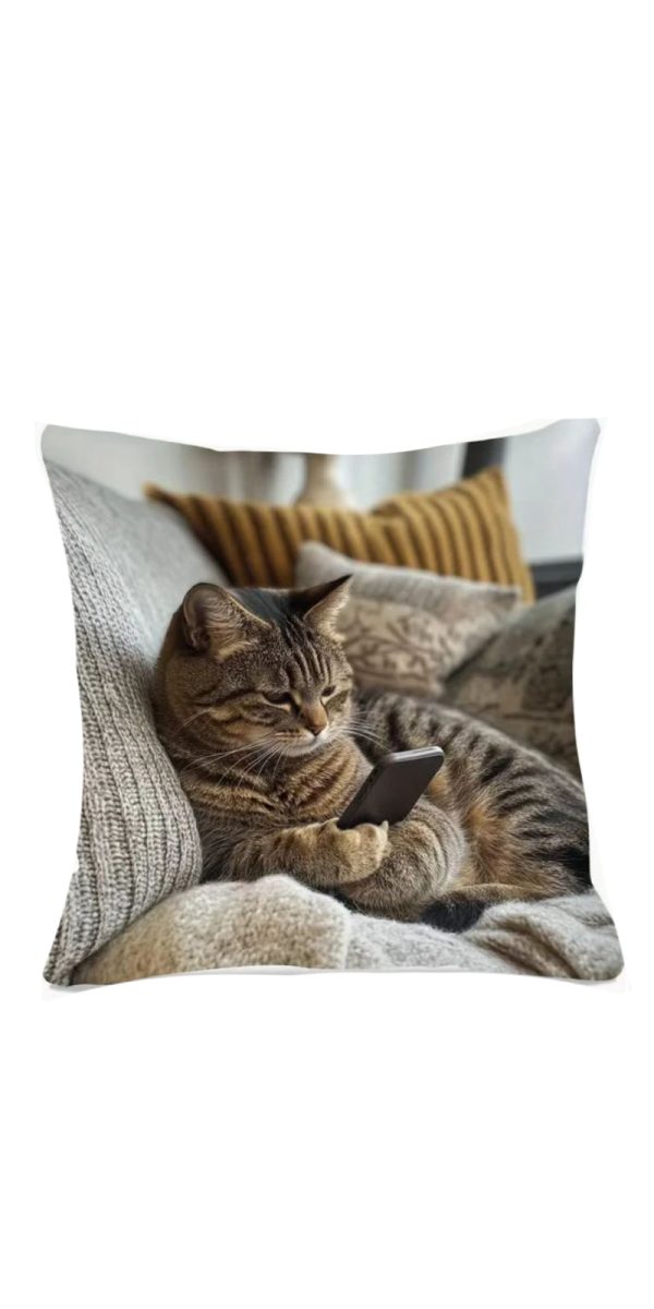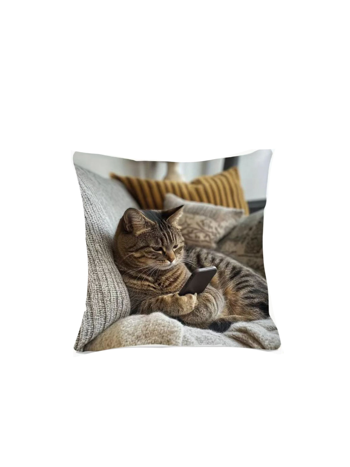 Ukrasna jastučnica s uzorkom – NO:WJ-01 – mačka s mobitelom