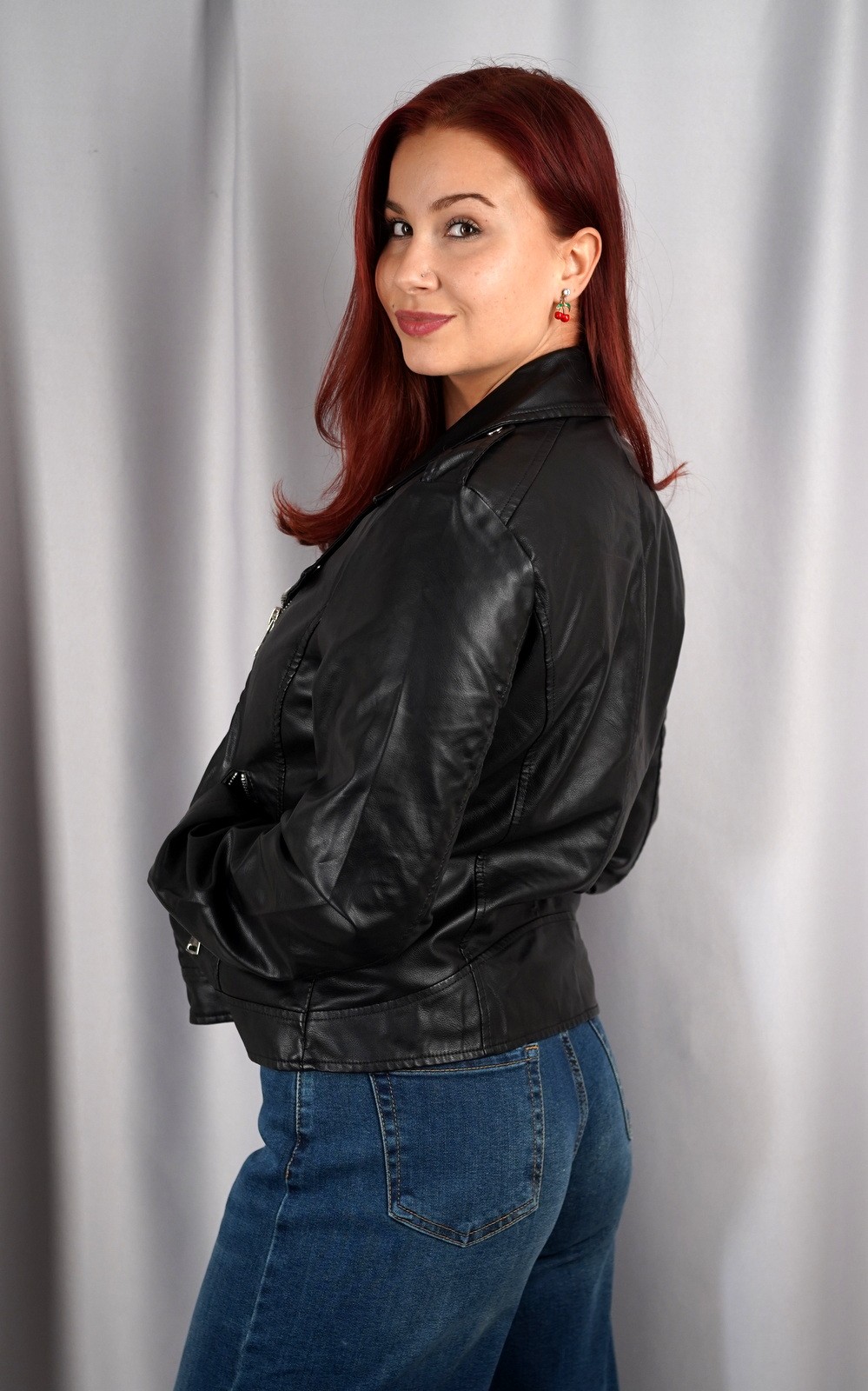 Ženska jakna eko koža s patentom – veće veličine – V6352 B