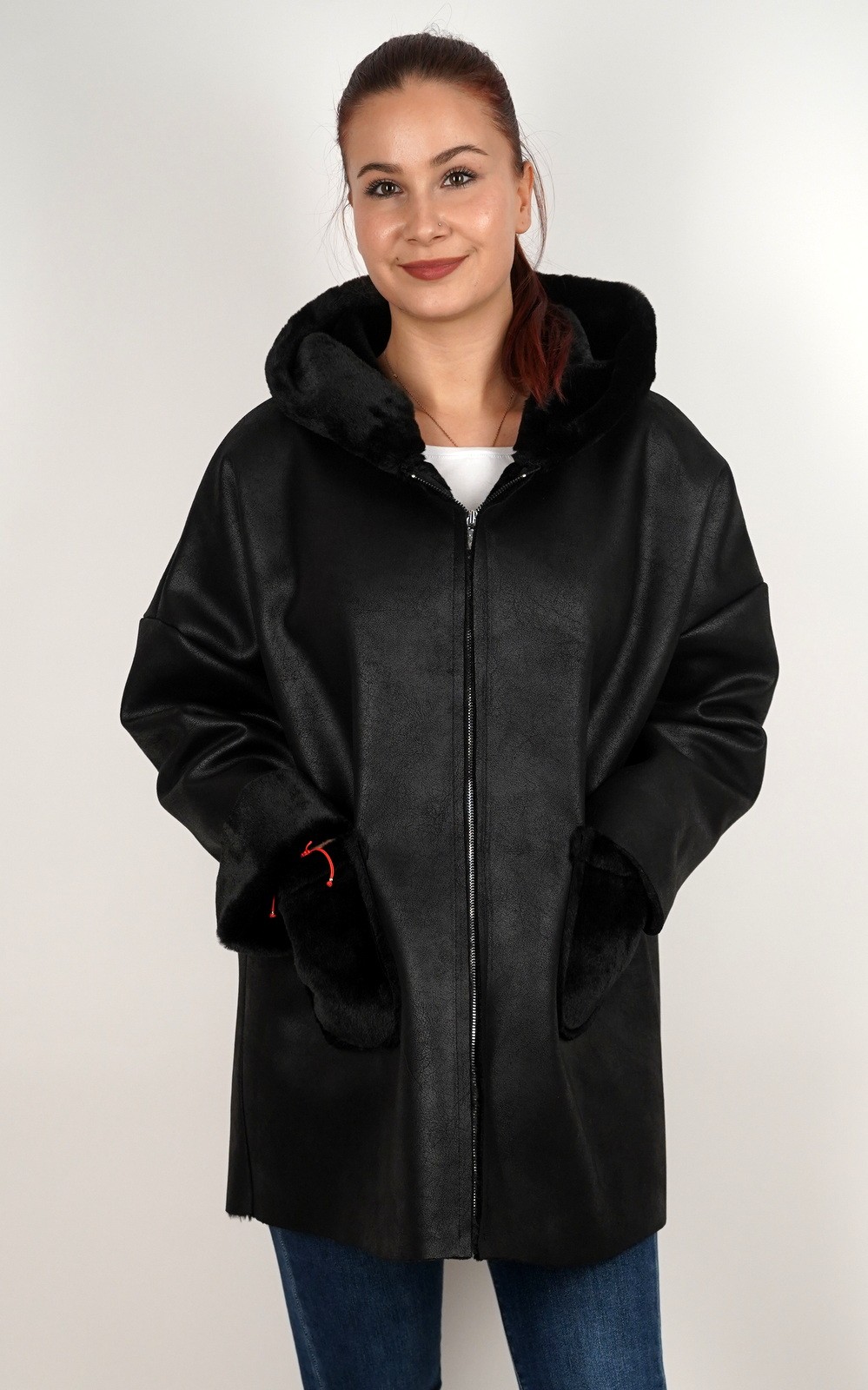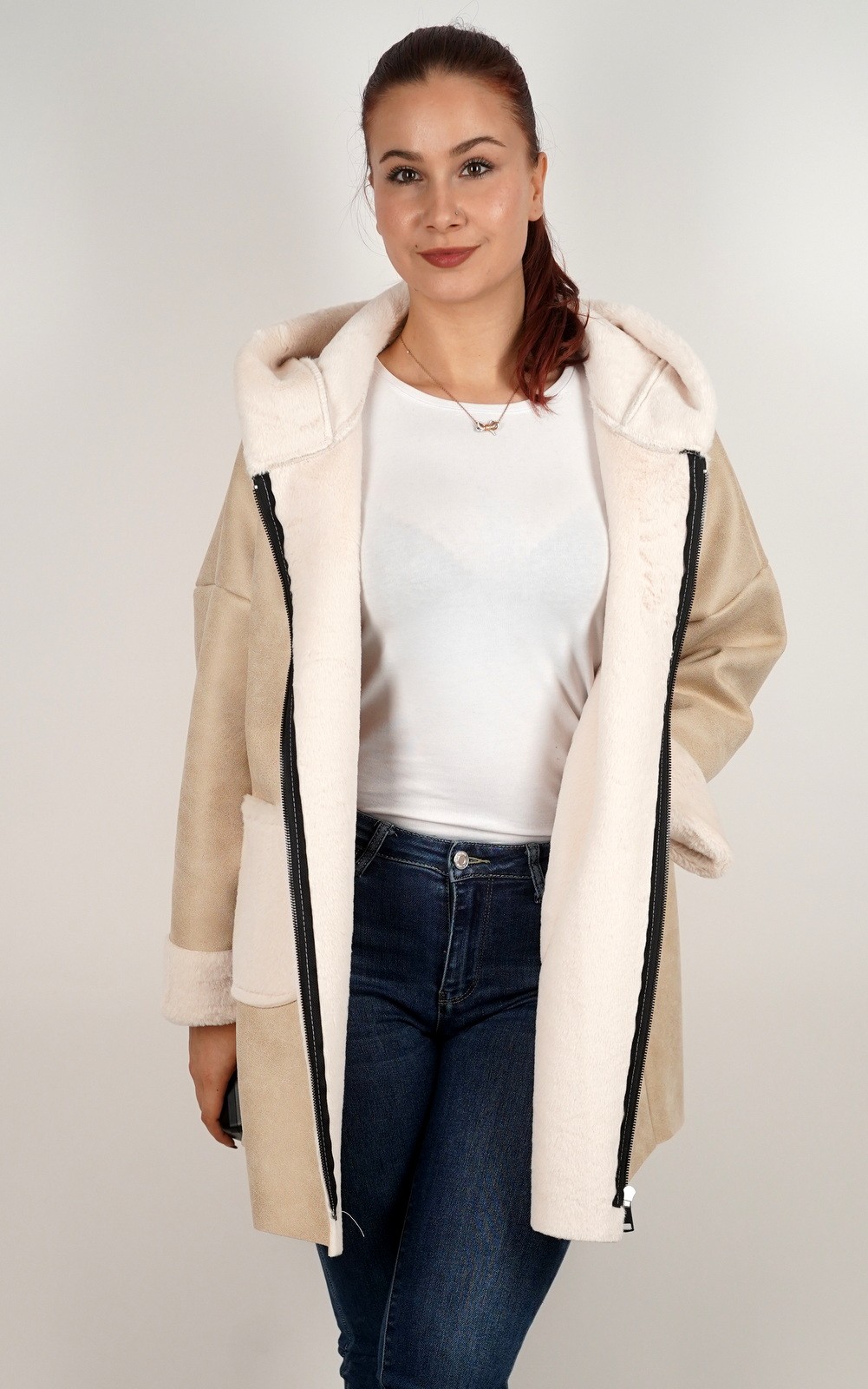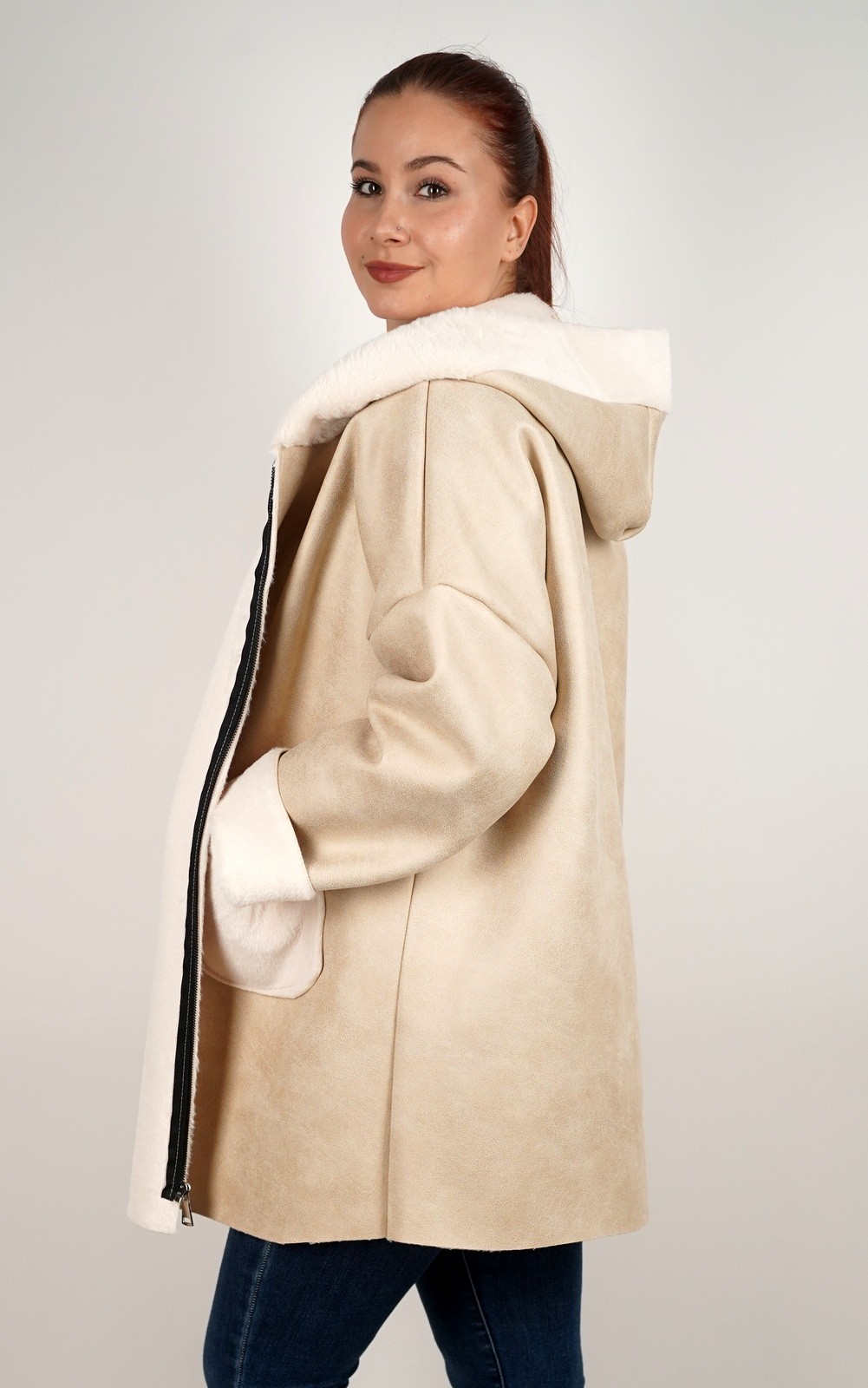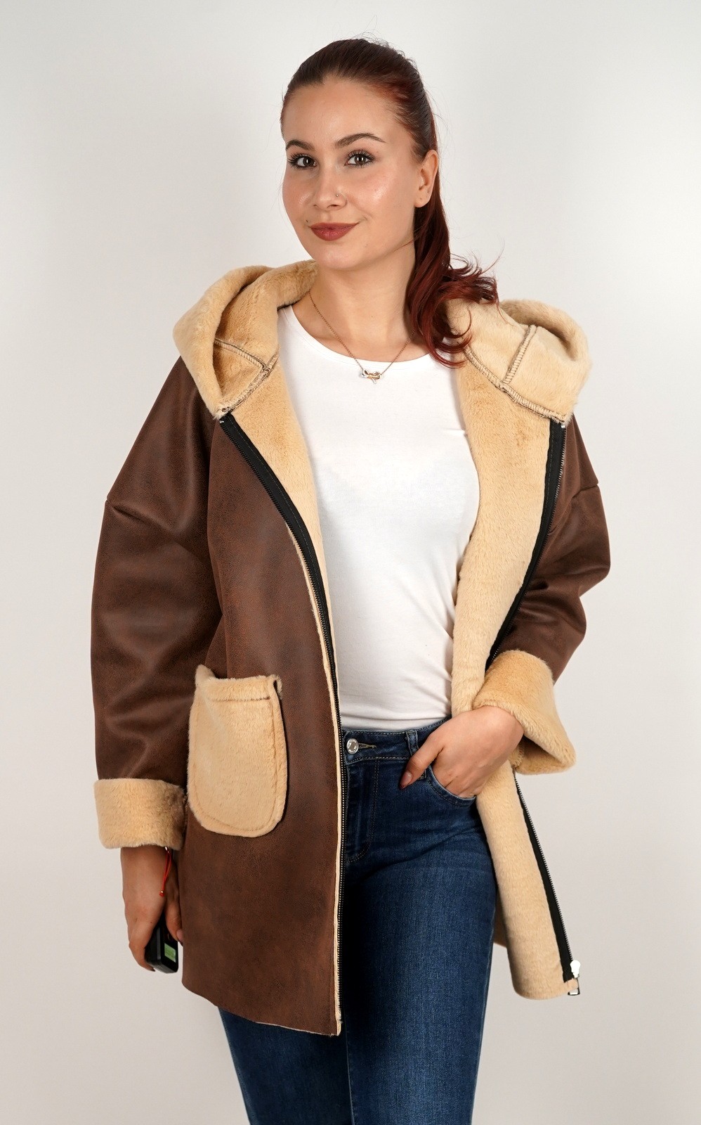 Ženska jakna s kapuljačom i obrubom od umjetnog krzna – 45011615