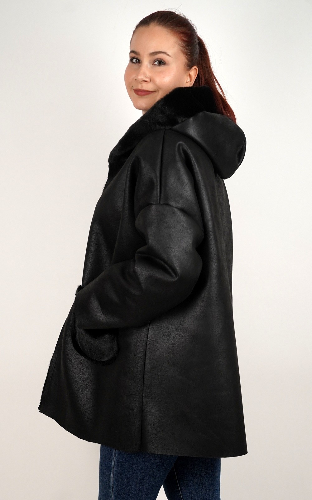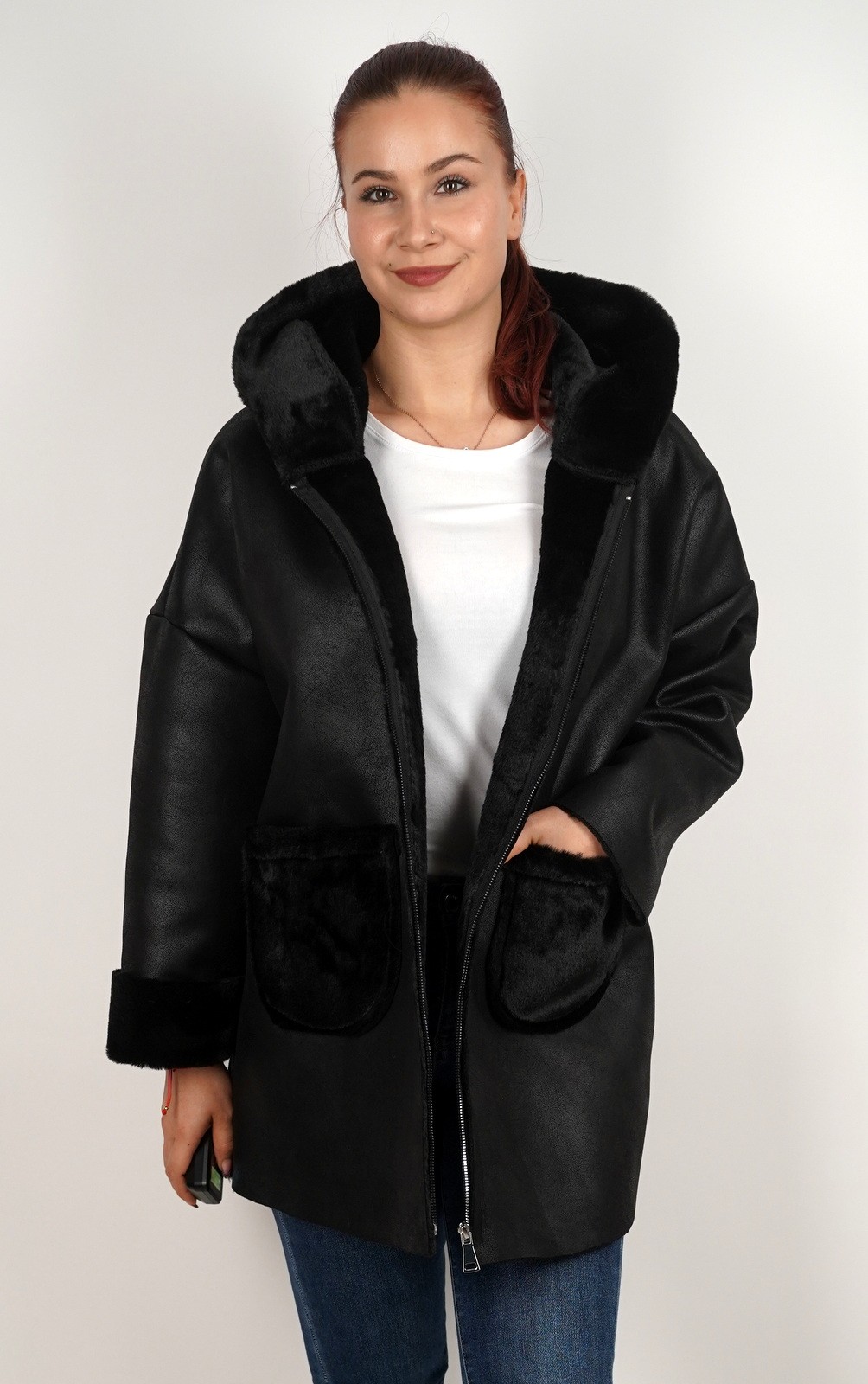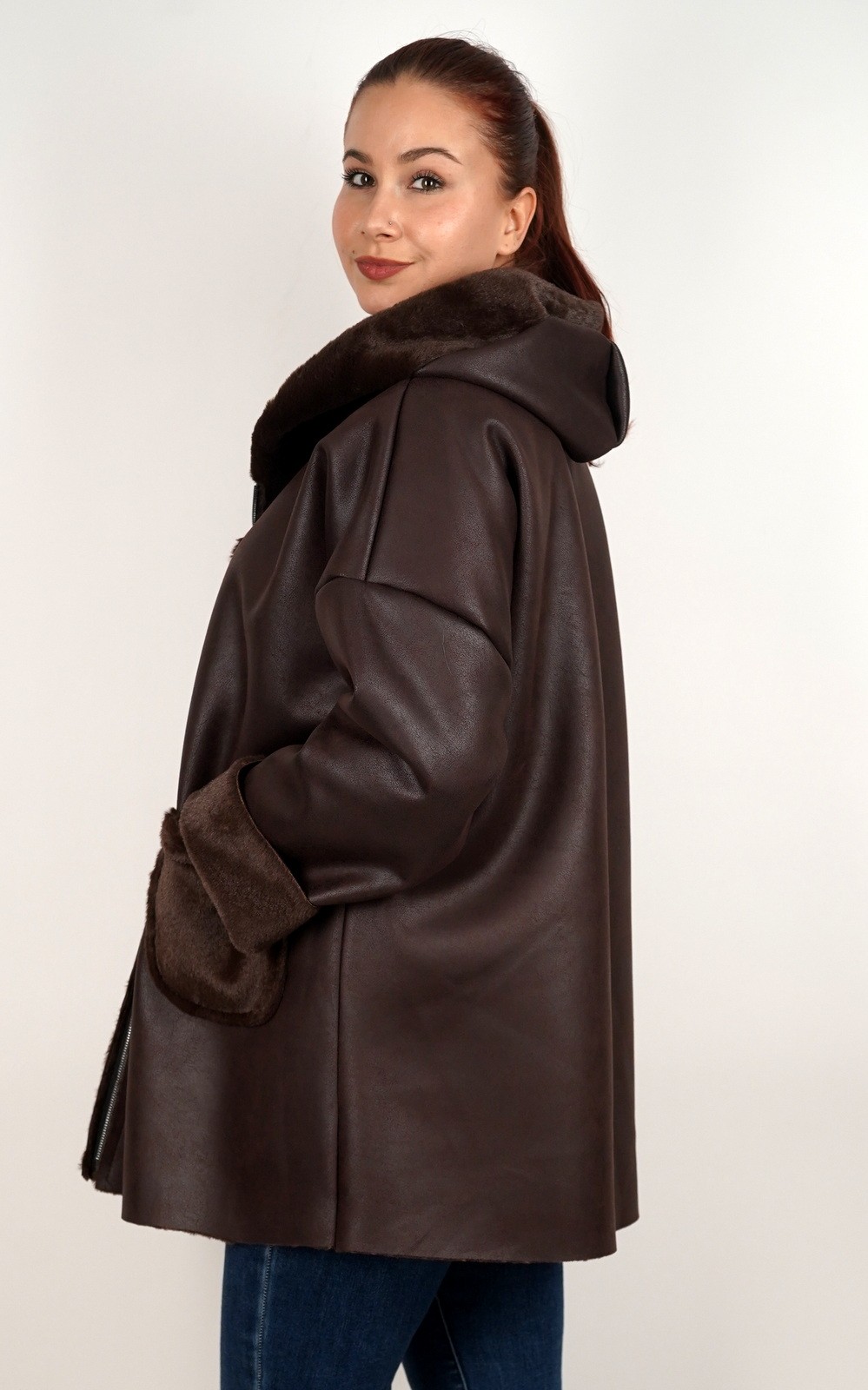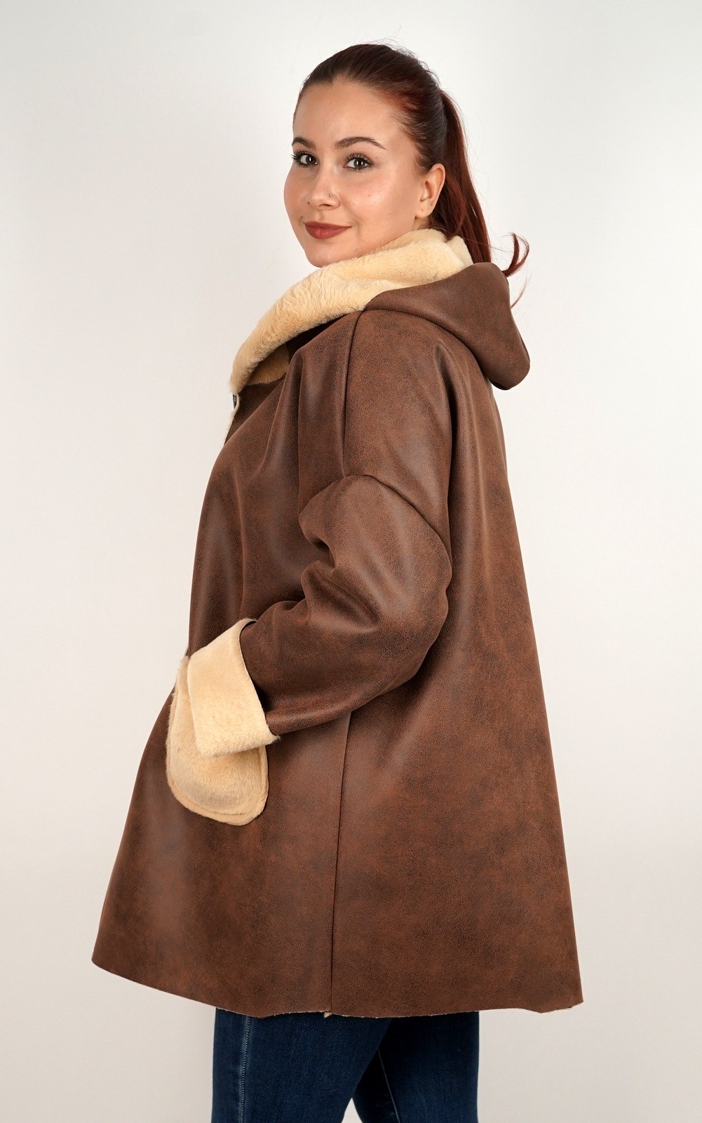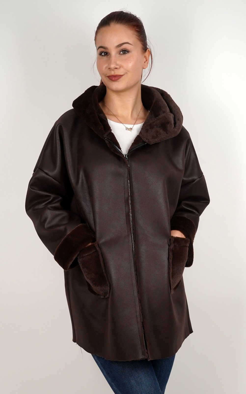 Ženska jakna s kapuljačom i obrubom od umjetnog krzna – 45011615
