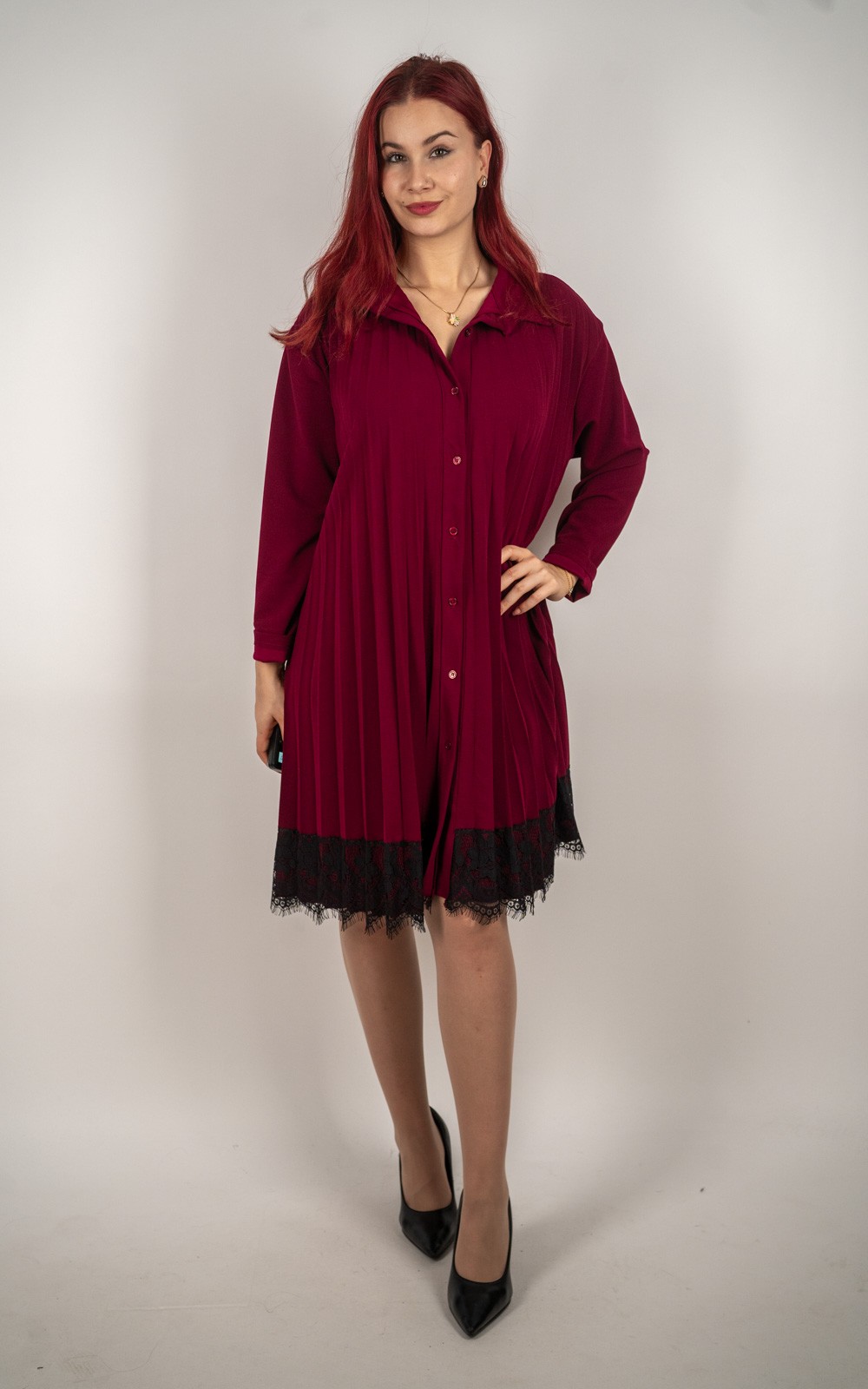Ženska košulja/haljina s plisiranim prednjim dijelom i čipkastim rubom – 51416