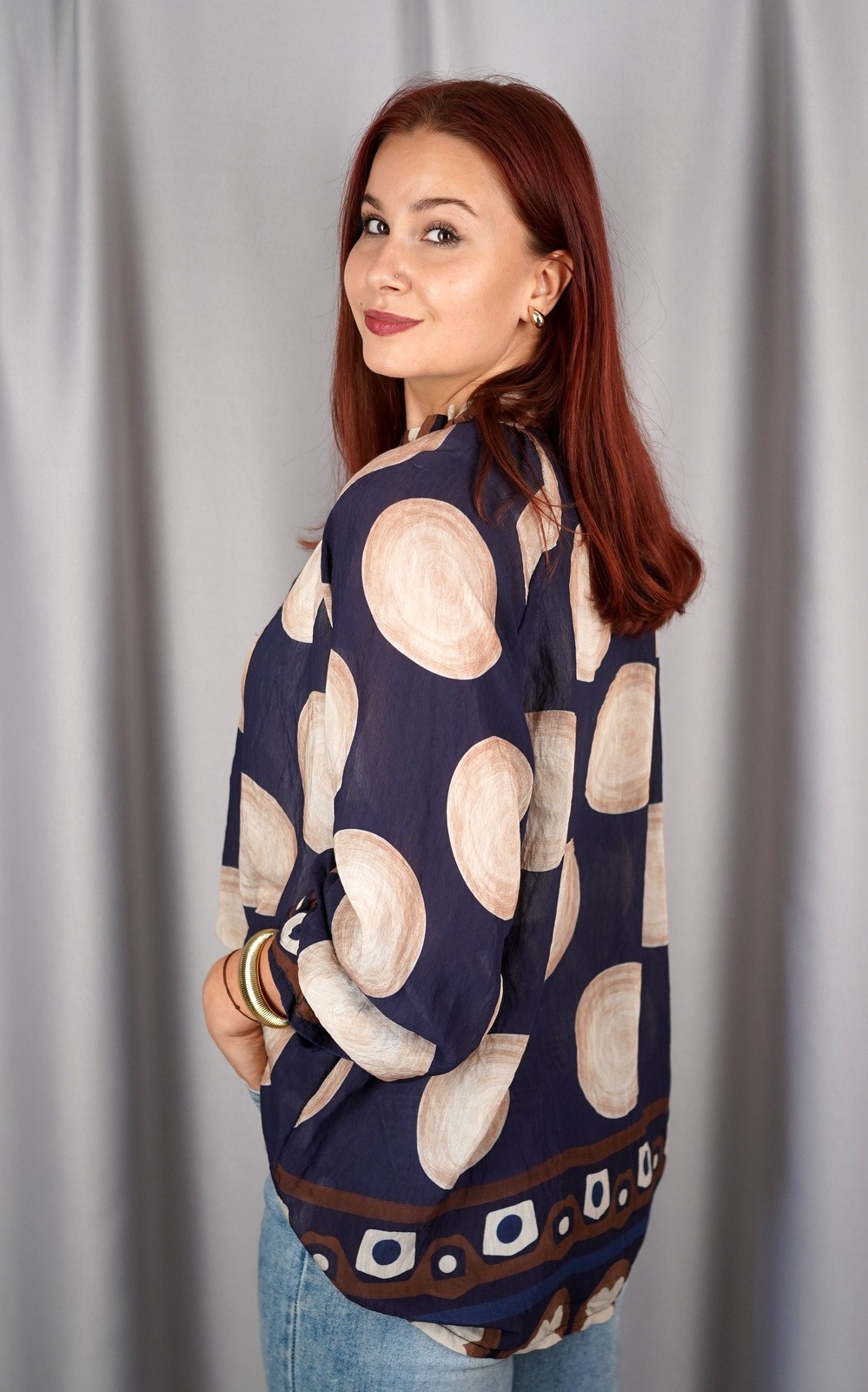 bozic15 očekuje te snižena cijena od 25.50 € za ovaj artikl u košarici.Ova ženska košulja na točkice donosi savršenu ravnotežu između retro šarma i modernog stila. Lepršavi materijal pruža udobnost i lakoću nošenja, dok volan oko ovratnika i dekorativna mašna unose ženstvenu i romantičnu notu. Puf rukavi s elastičnim završetkom dodatno naglašavaju profinjen izgled, a uzorak točkica daje veseli, bezvremenski dojam koji nikad ne izlazi iz mode. Savršeno se kombinira s trapericama za casual izgled, ali i s elegantnim suknjama ili hlačama za poslovne i svečane prigode. Idealan izbor za sve žene koje žele unijeti dašak elegancije i razigranosti u svoju garderobu.