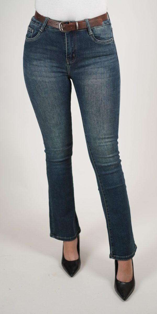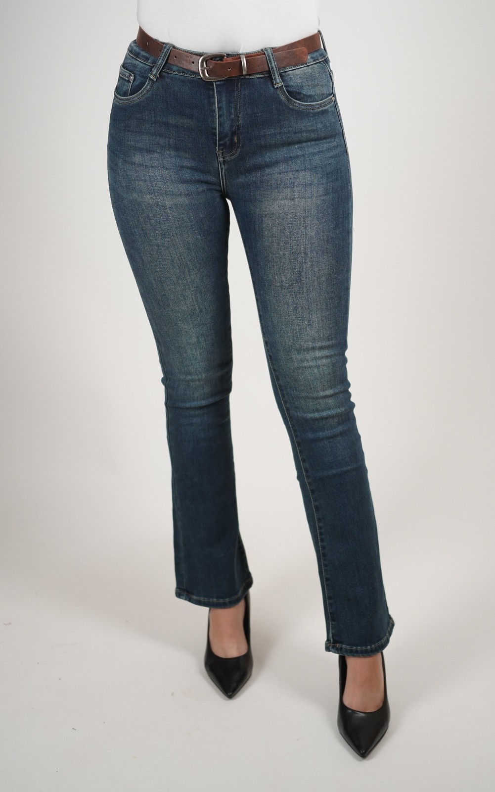 kolekcijaŽenske tamne zvonolike traperice – remen gratis – J2317-2H