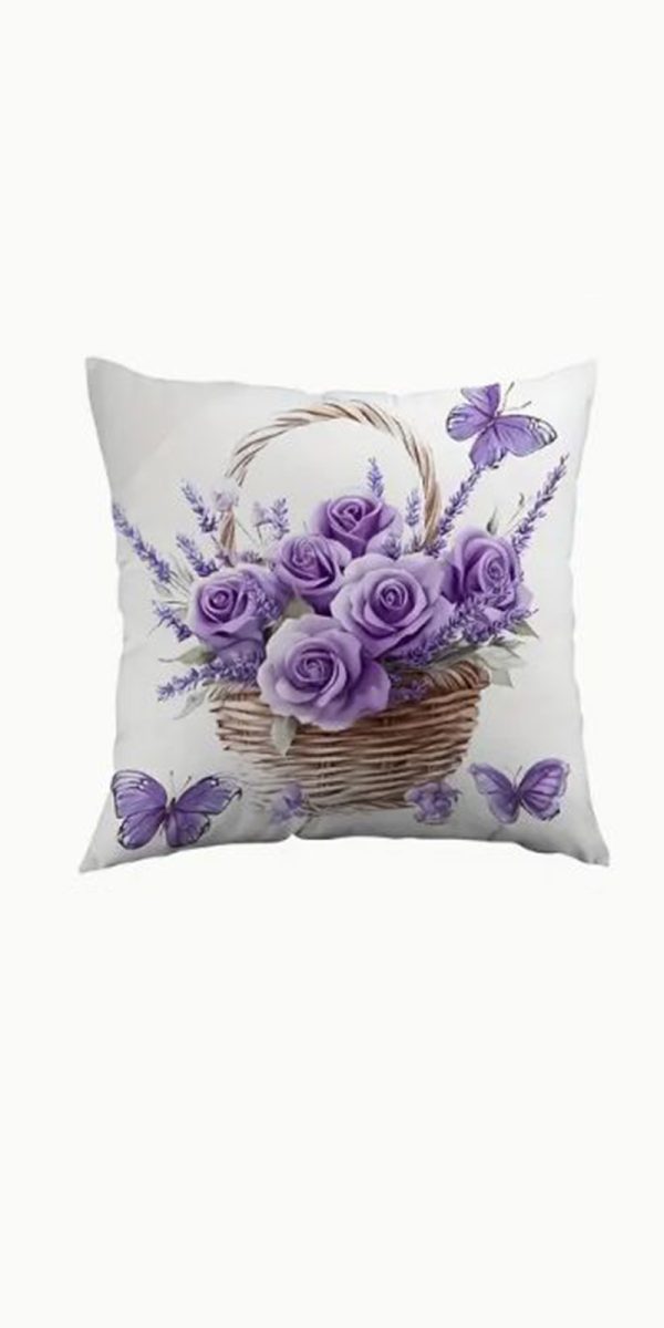 Ukrasna jastučnica s uzorkom – NO:WJ-01 – košara ljubičastih ruža i leptira