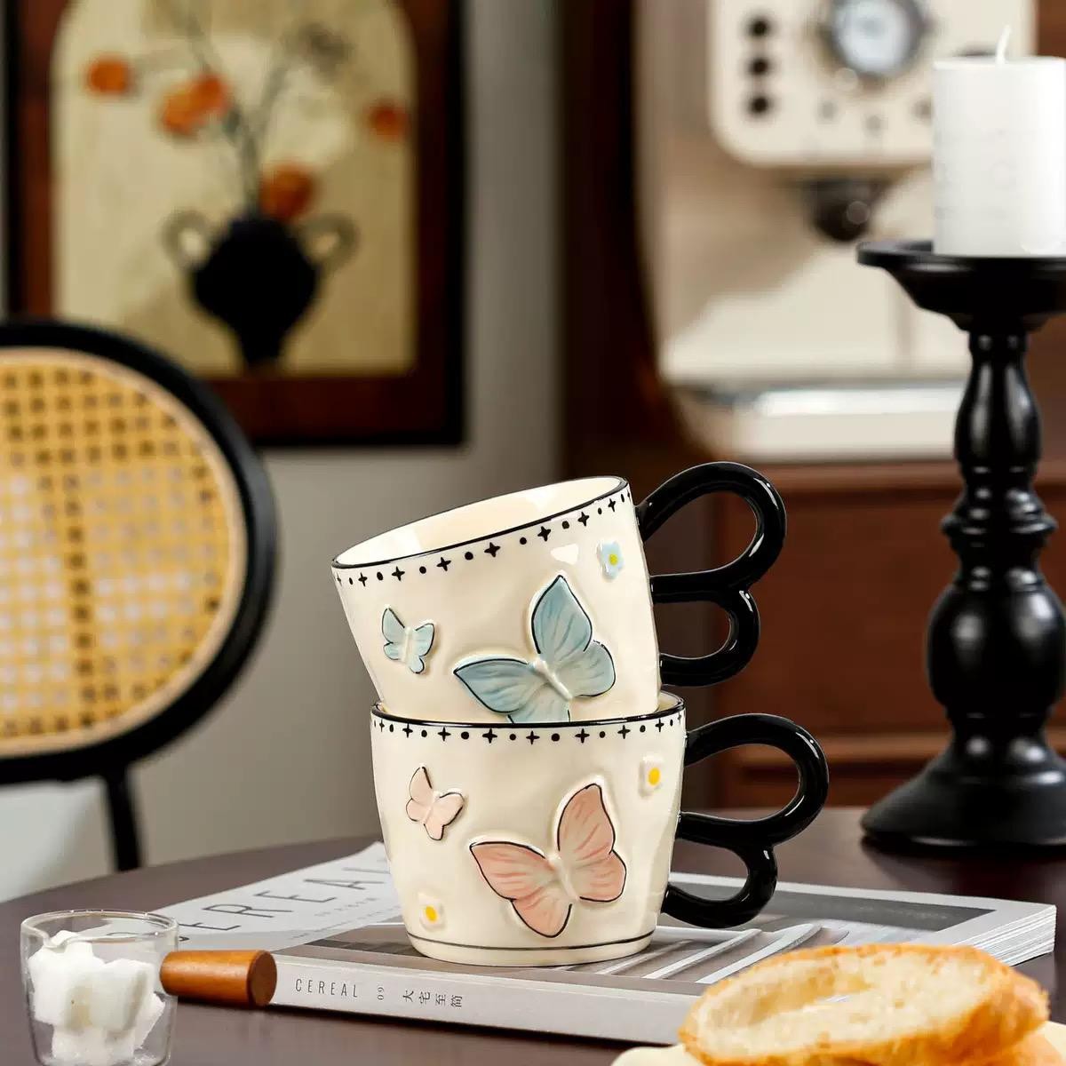 Keramička šalica s 3D reljefnim leptirima 400 ml