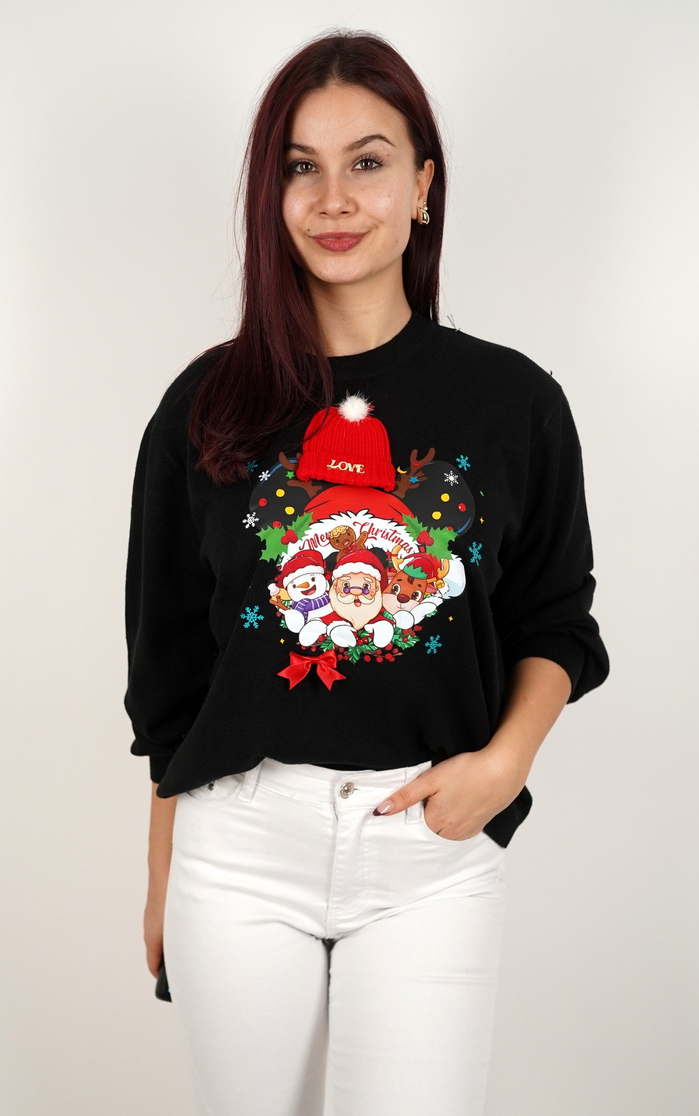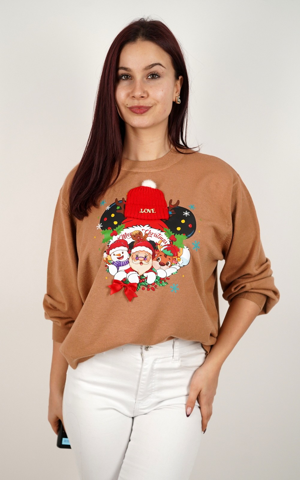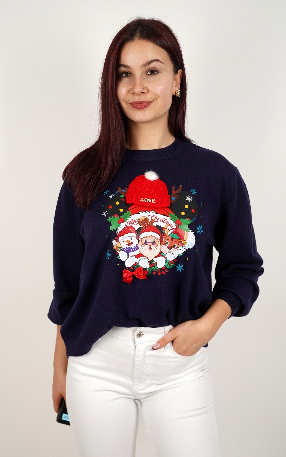 Ženska majica fino meko pletivo s 3D detaljem i Božićnim printom – 8-1762
