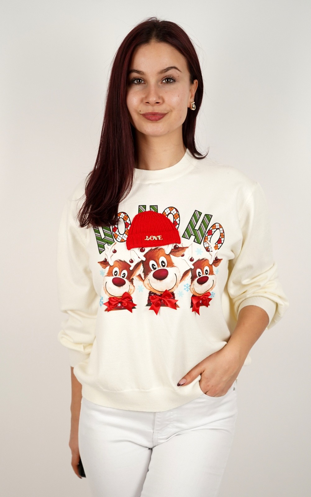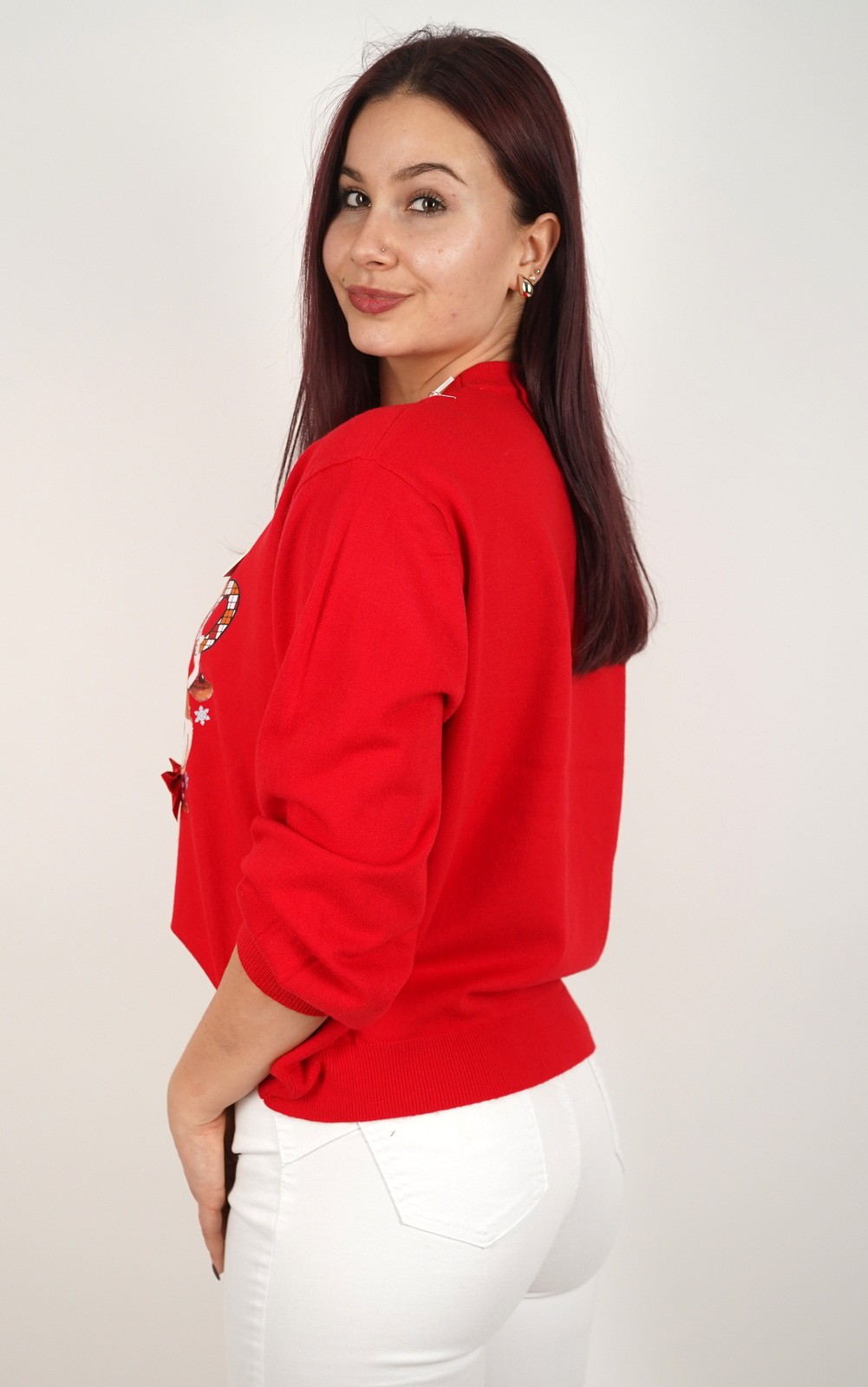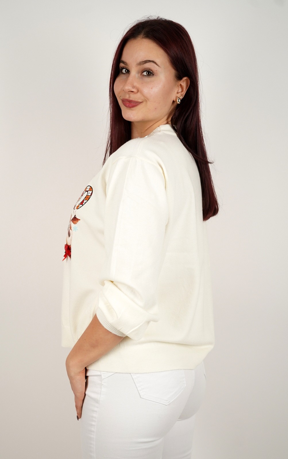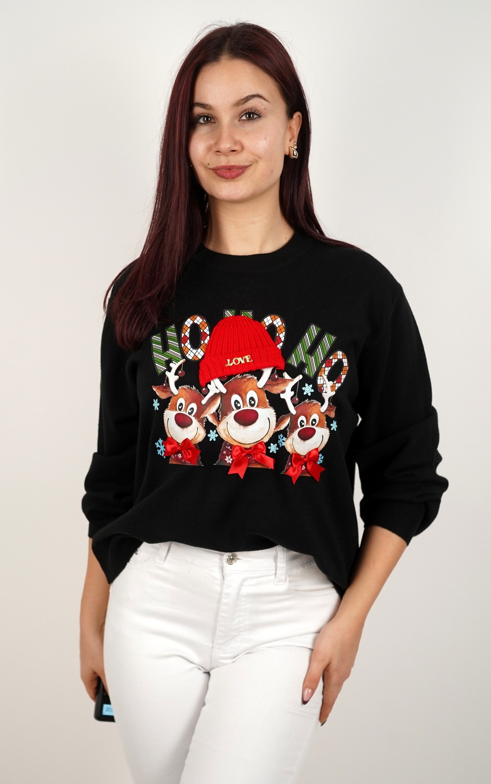 Ženska majica fino meko pletivo s 3D detaljem i Božićnim printom – 8-1763