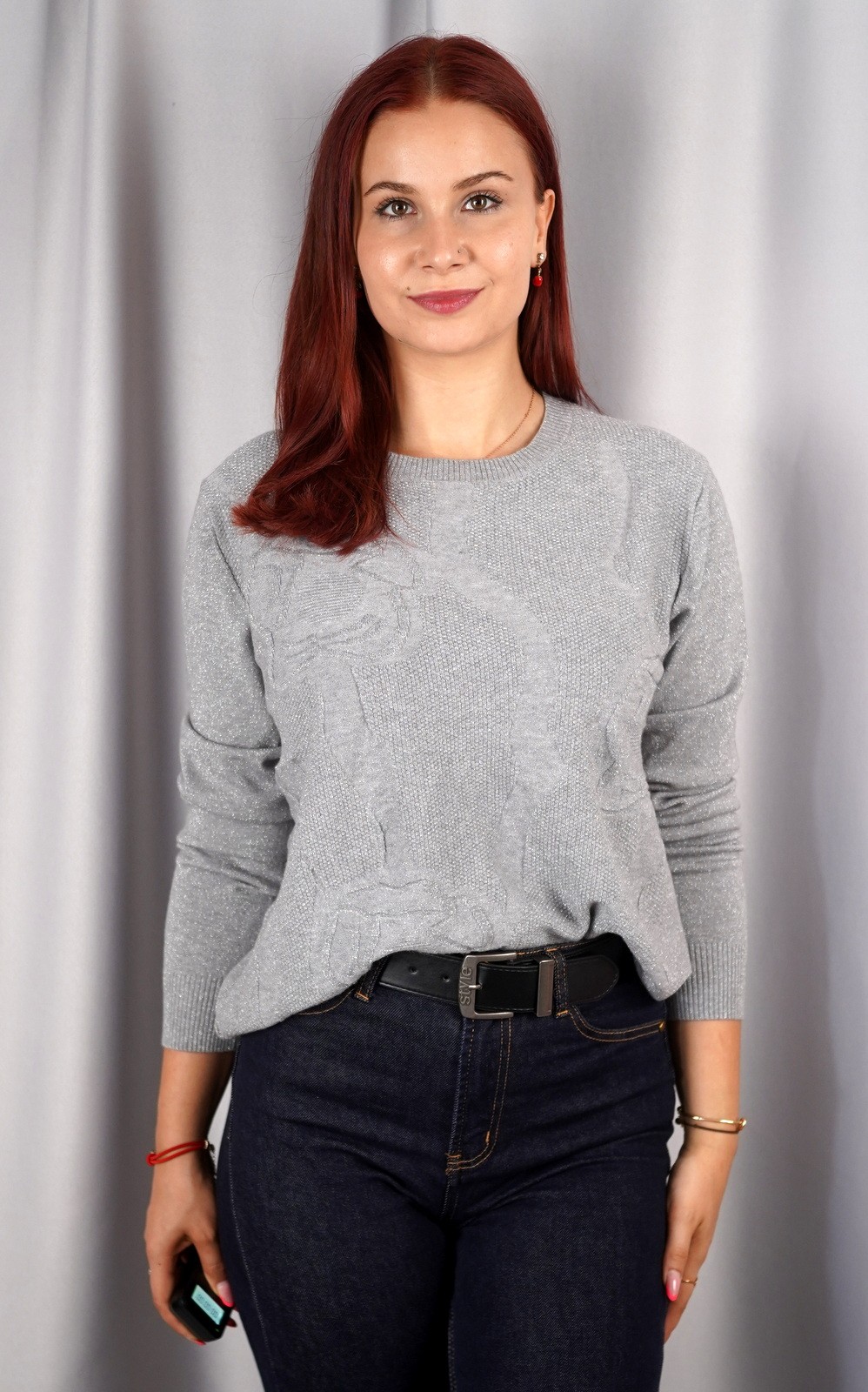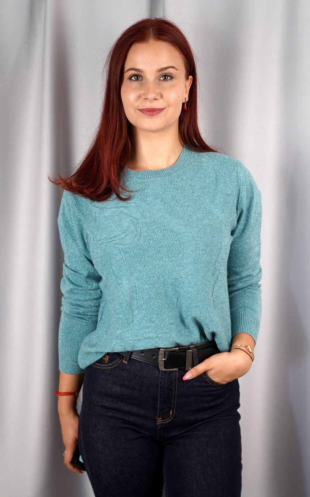 bozic20 očekuje te snižena cijena od 16.00 € za ovaj artikl u košarici.Ova udobna pletena majica je savršen izbor za svakodnevne prigode. Izrađena je od mekog materijala i ima širi kroj koji osigurava udobnost i slobodu pokreta. Posebnost majice je pleteni uzorak po cijeloj površini, što joj daje poseban šarm. Zbog svog svestranog dizajna, ova majica je idealna za razne prilike. Može se kombinirati s trapericama za ležeran izgled, a jednako dobro funkcionira i s poslovnim hlačama ili suknjama za formalnije prilike. Njezina jednostavnost i decentni detalji čine je nezamjenjivim komadom u vašoj garderobi, savršenim za prijelazno razdoblje i hladnije dane.