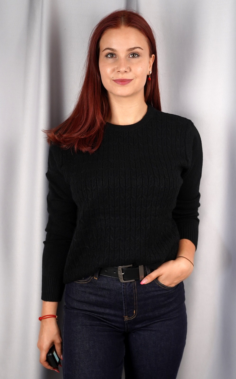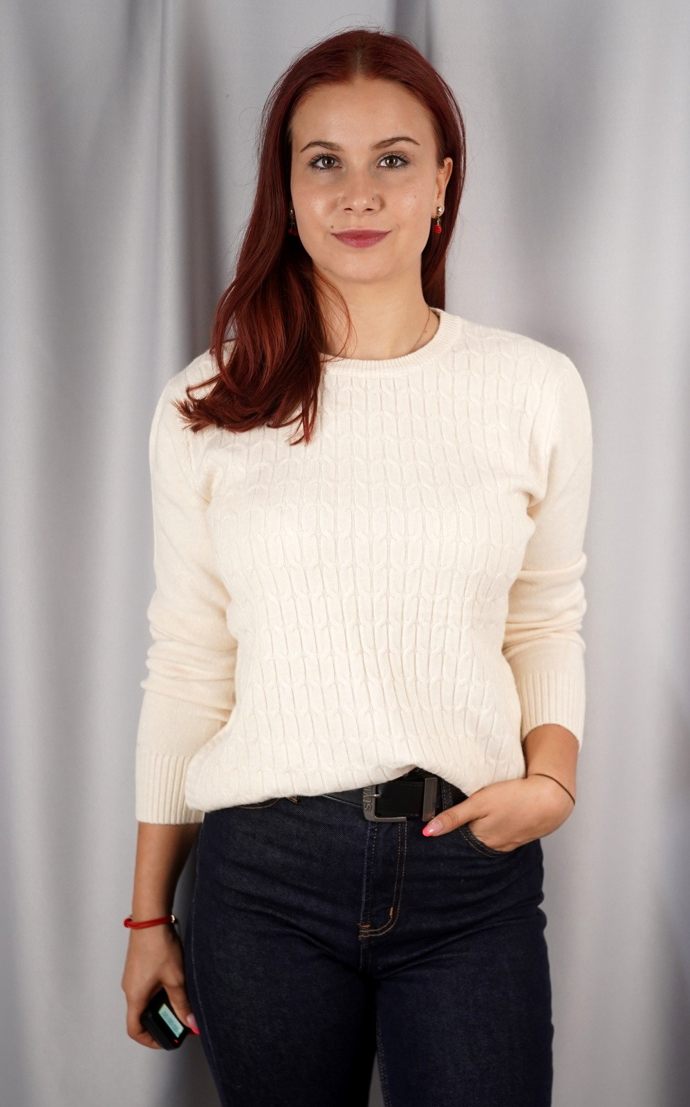 Ženska majica fino meko pletivo s ukrasnim pletenim uzorkom – u veličinama – YY-9593