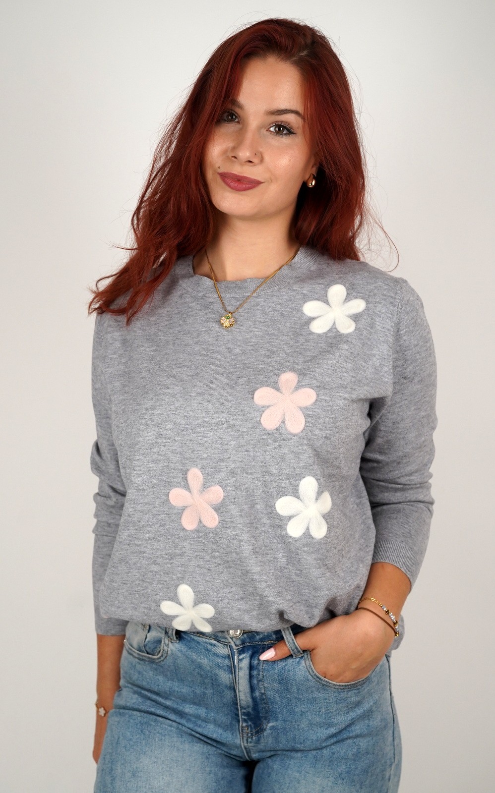 Ženska majica od mekanog pletiva s 3D cvjetnim uzorkom – u veličinama – LV593