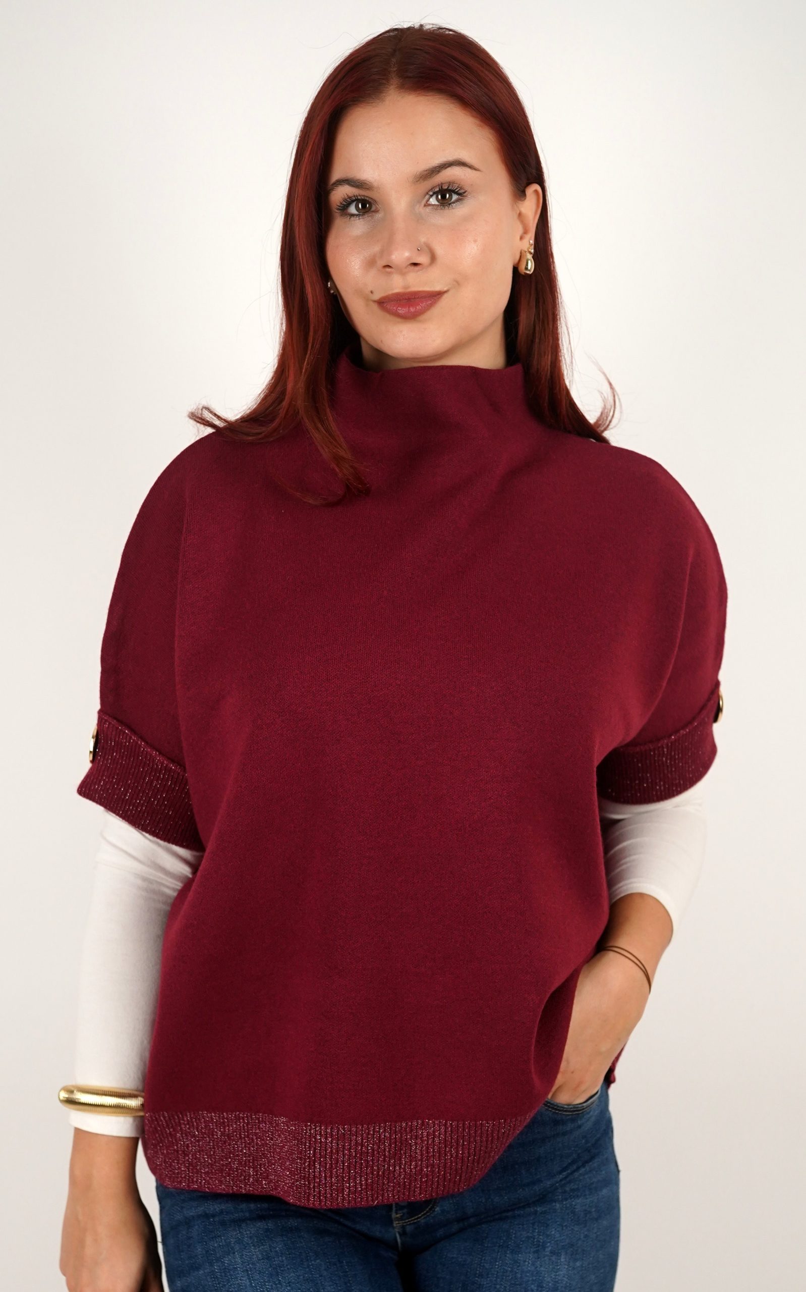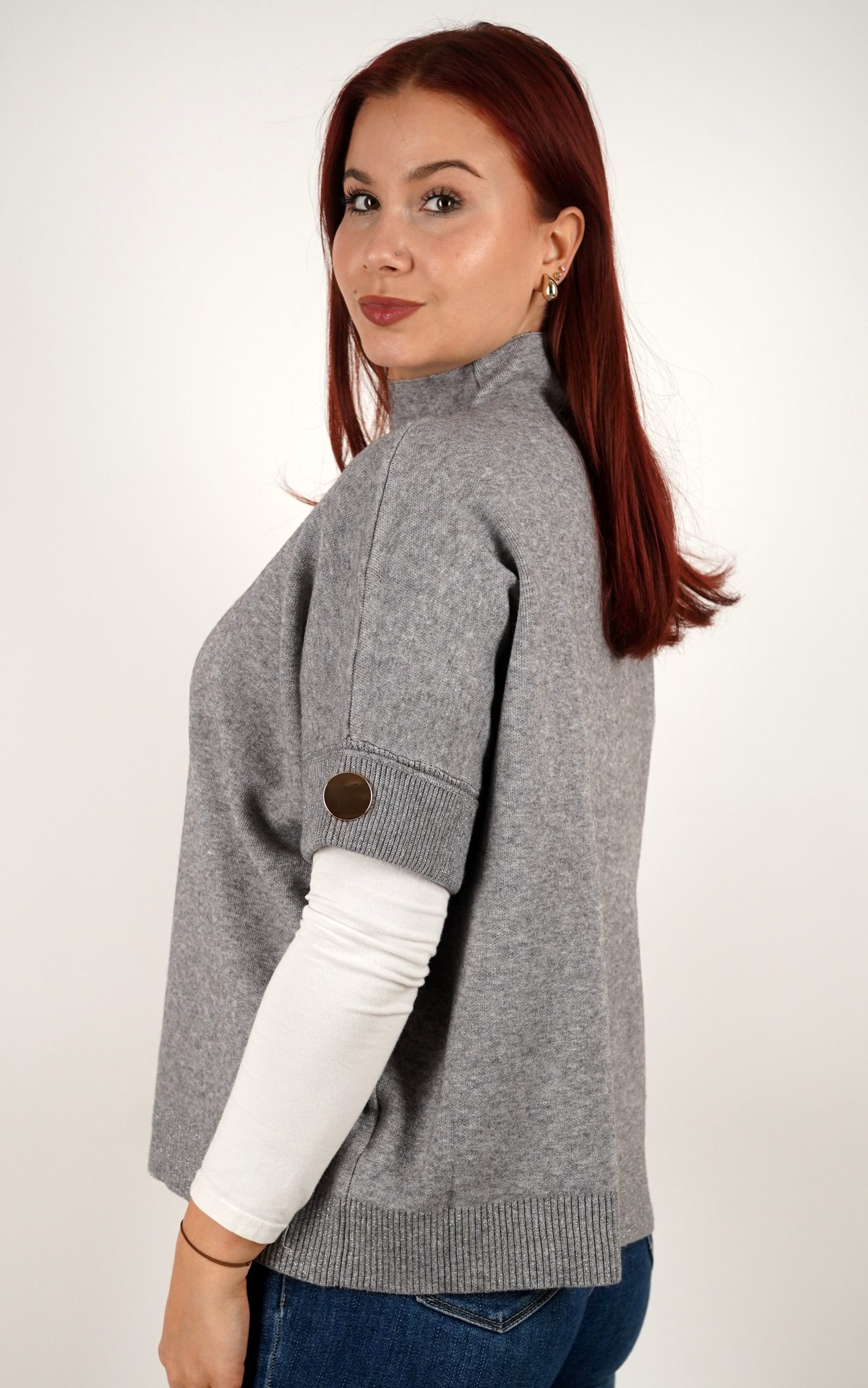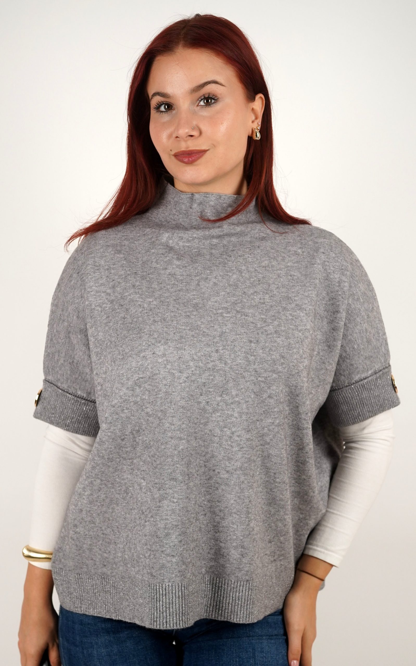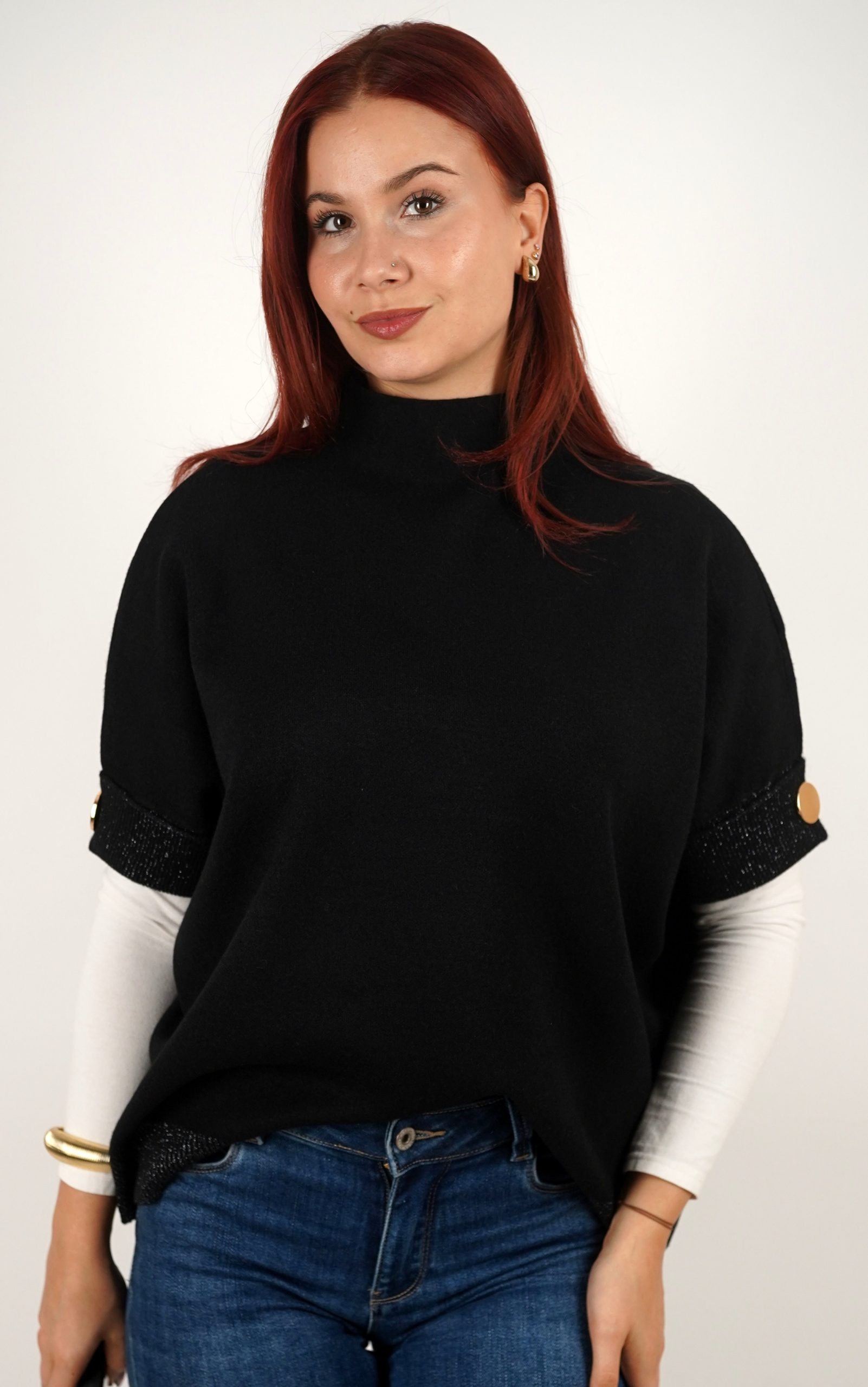 Ženska majica od mekanog pletiva s kratkim rukavima i ukrasnim gumbima – u veličinama – 3970