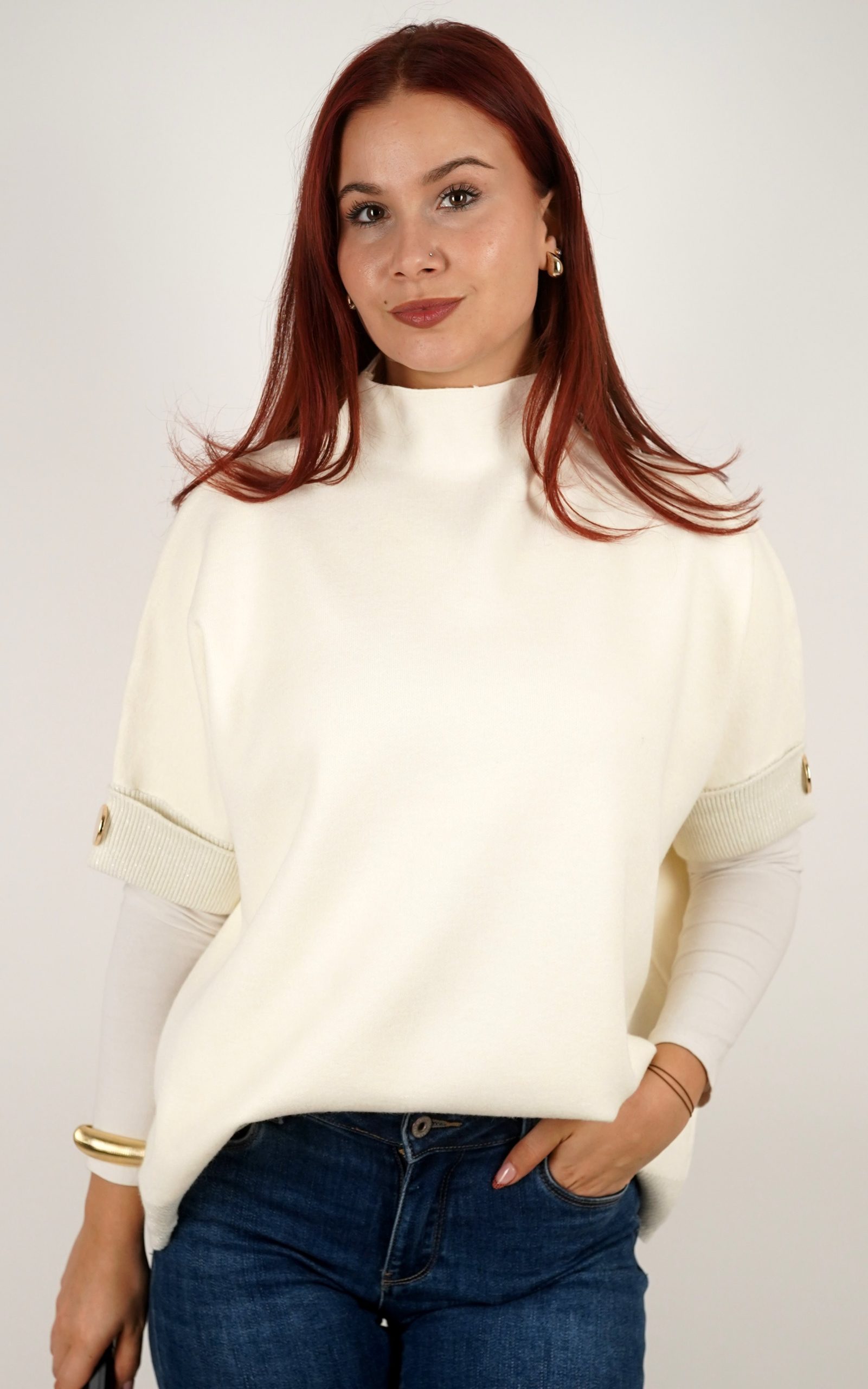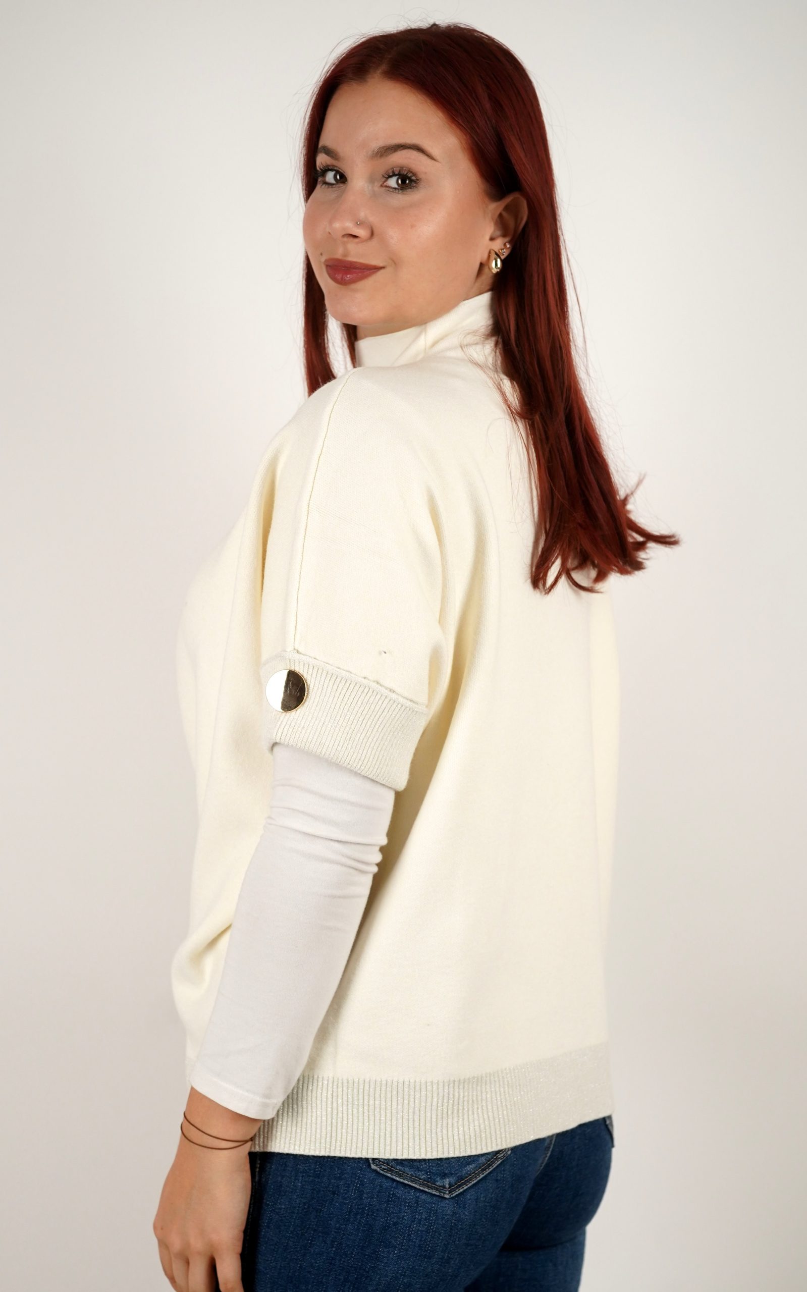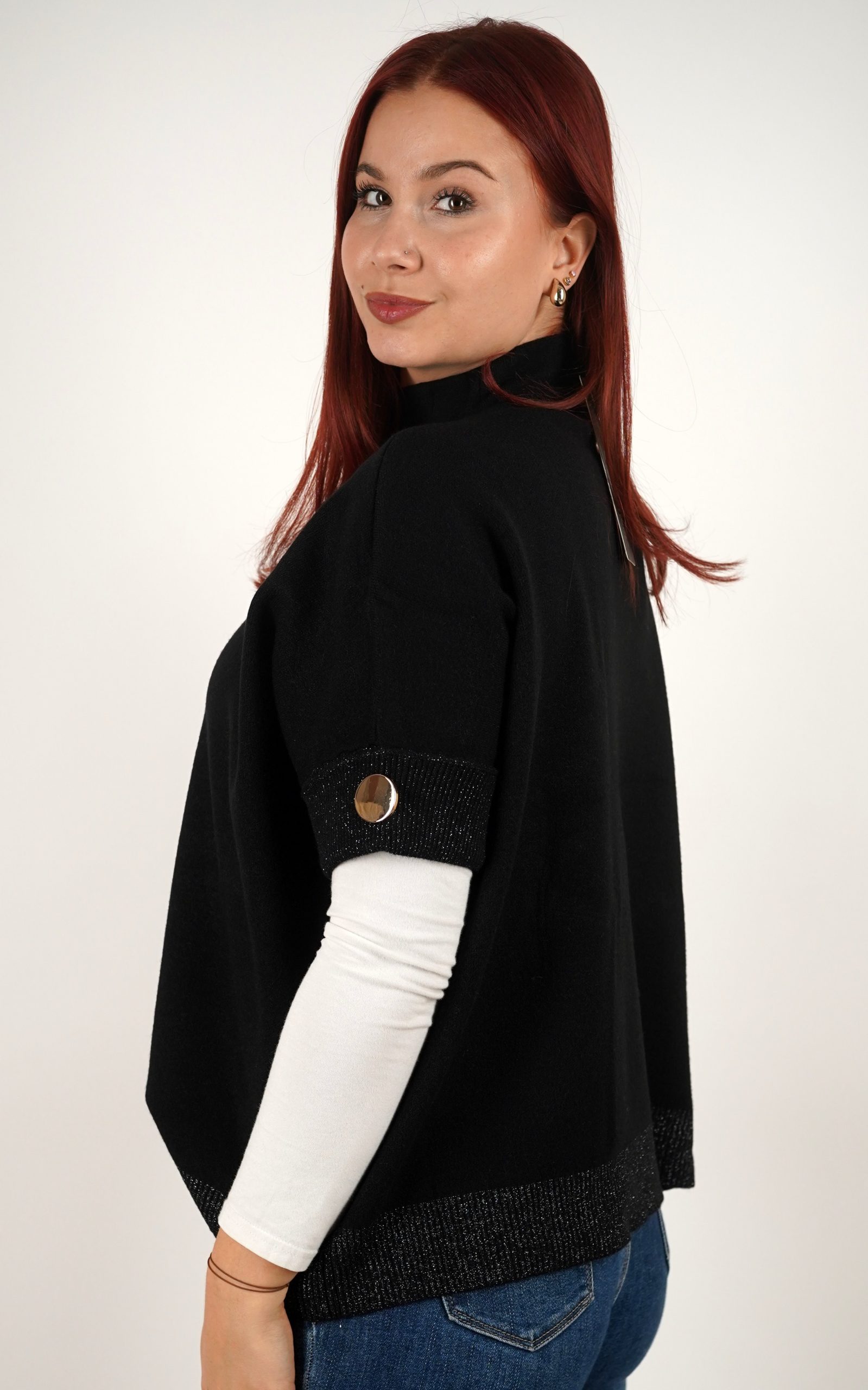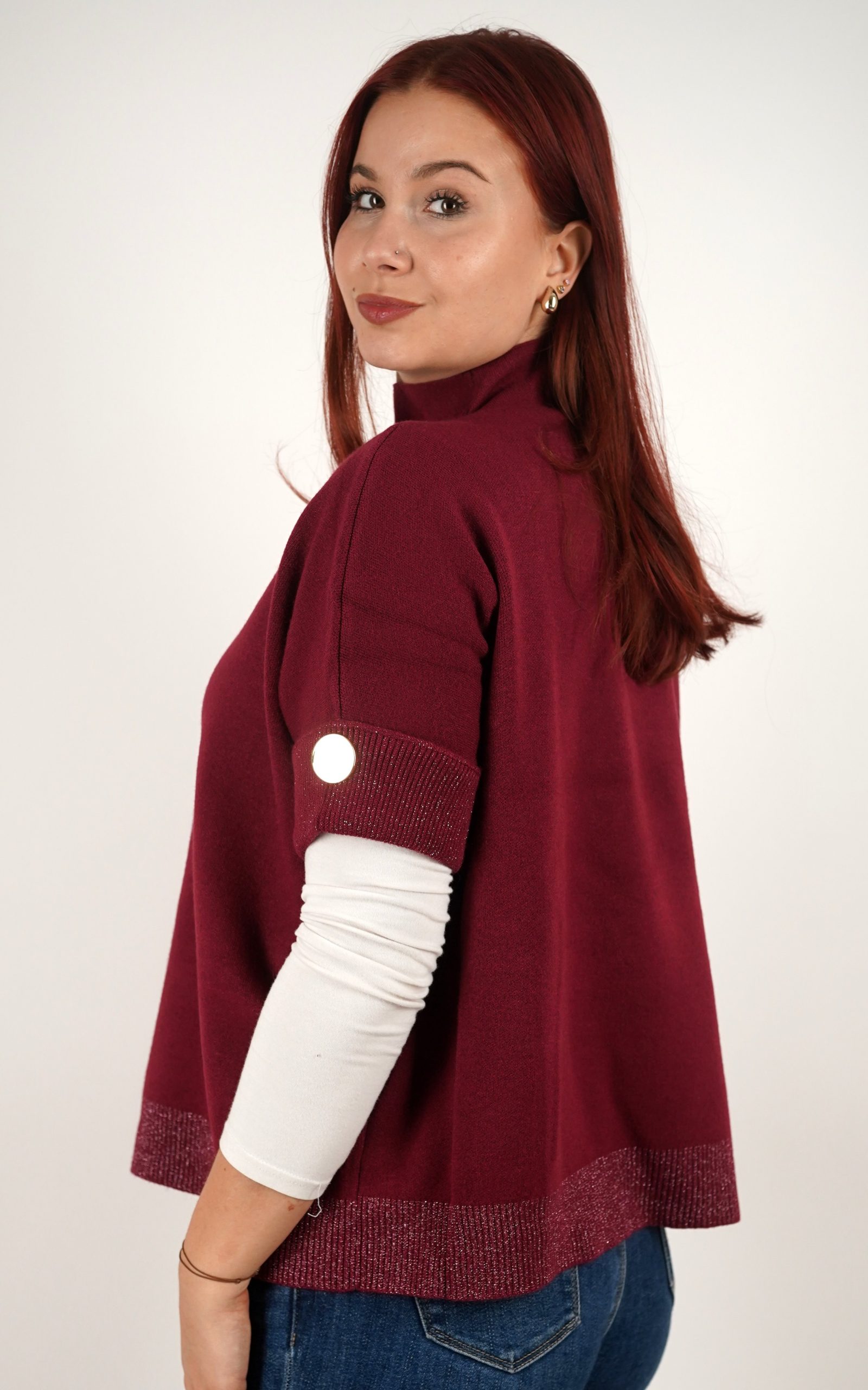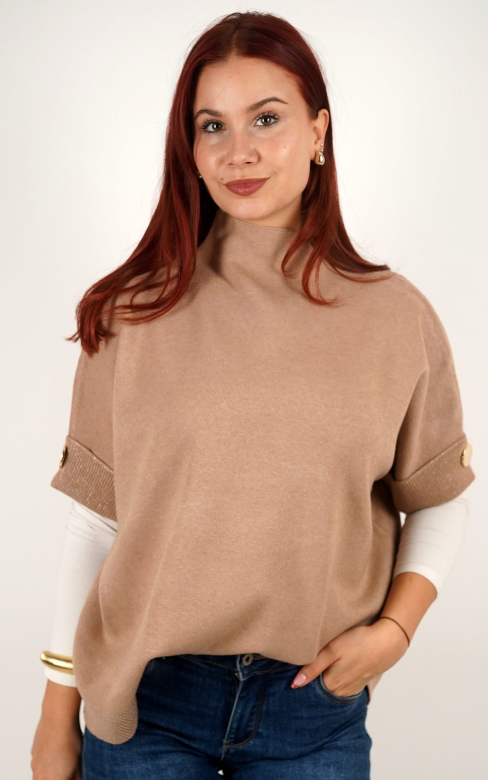 Ženska majica od mekanog pletiva s kratkim rukavima i ukrasnim gumbima – u veličinama – 3970