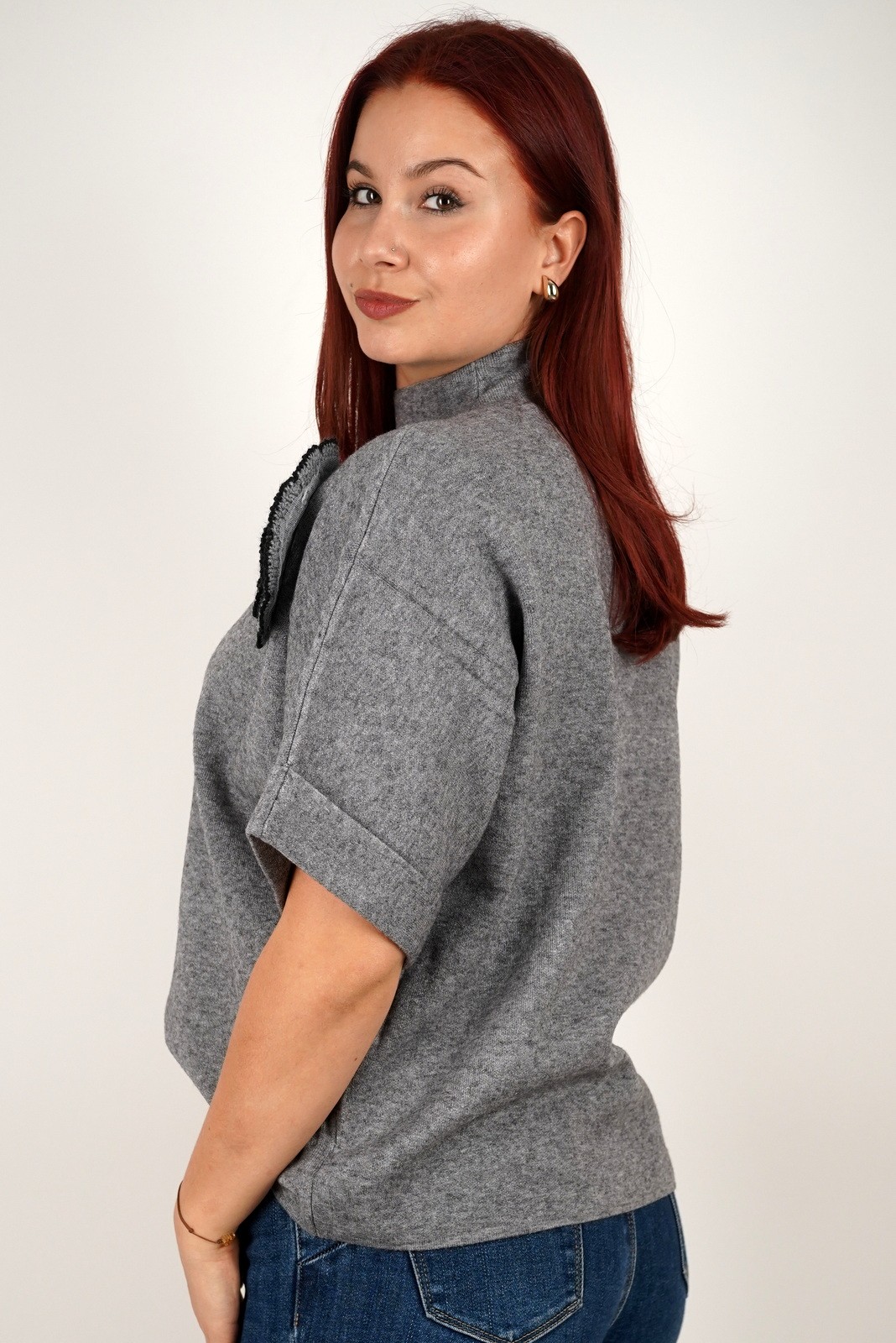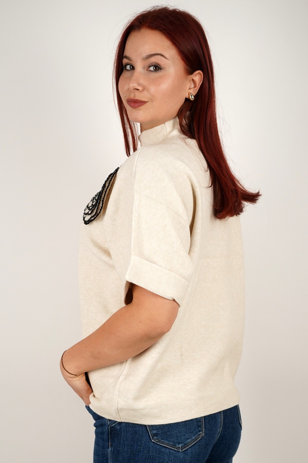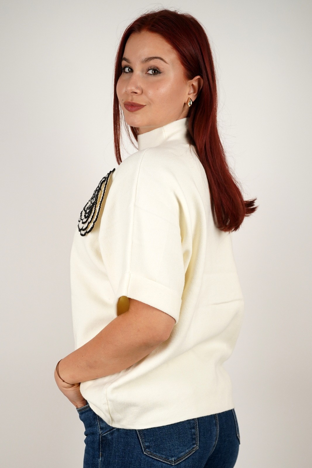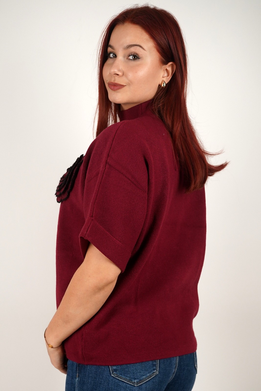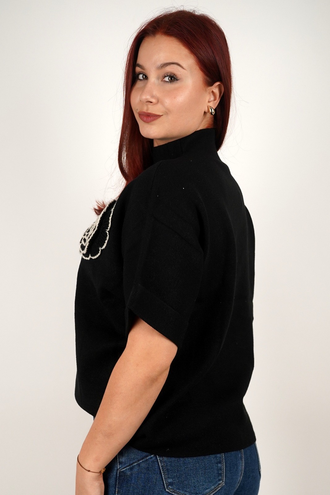 Ženska majica s ukrasnim cvijetom i kratkim rukavima – fino meko pletivo – u veličinama – 3978