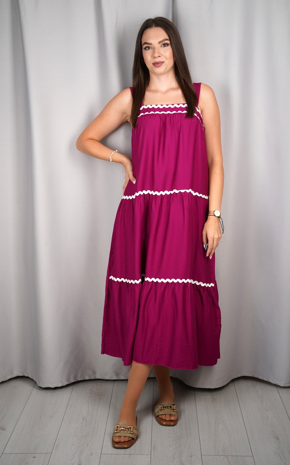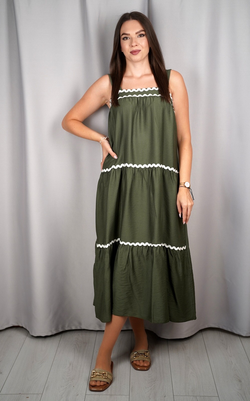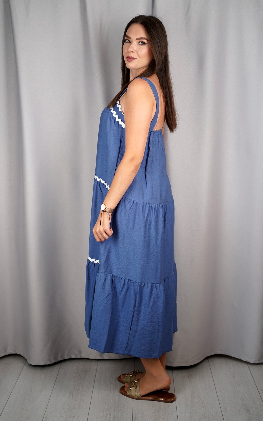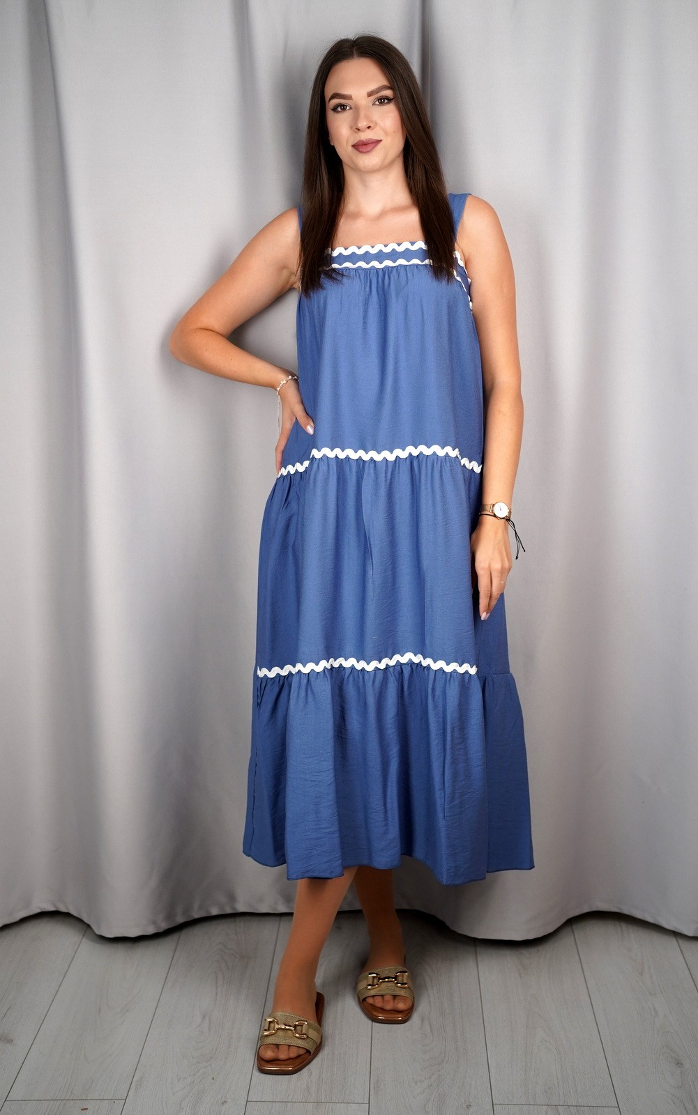 Ženska maxi haljina bez rukava s volanima i ukrasnim detaljima – ART:10429