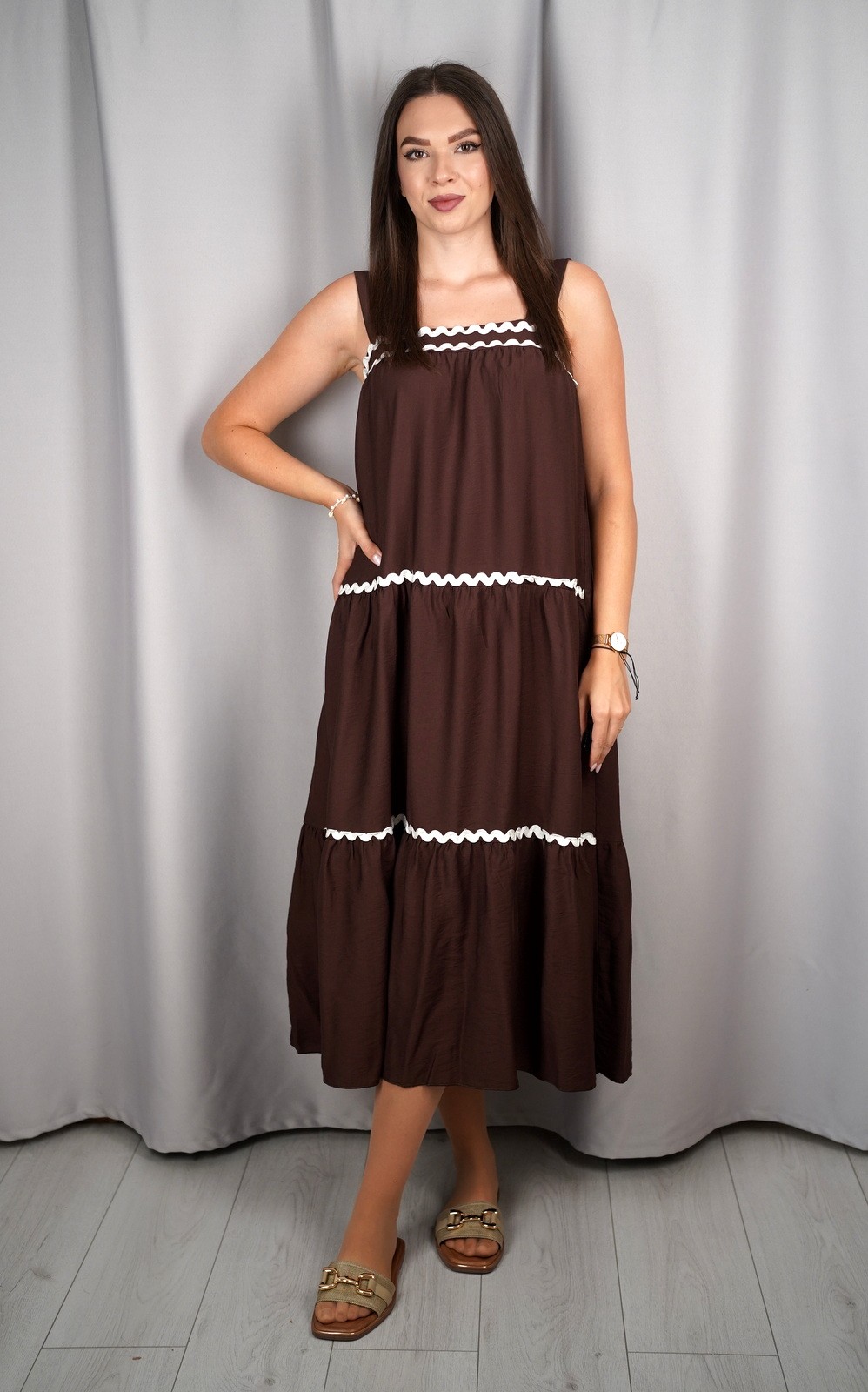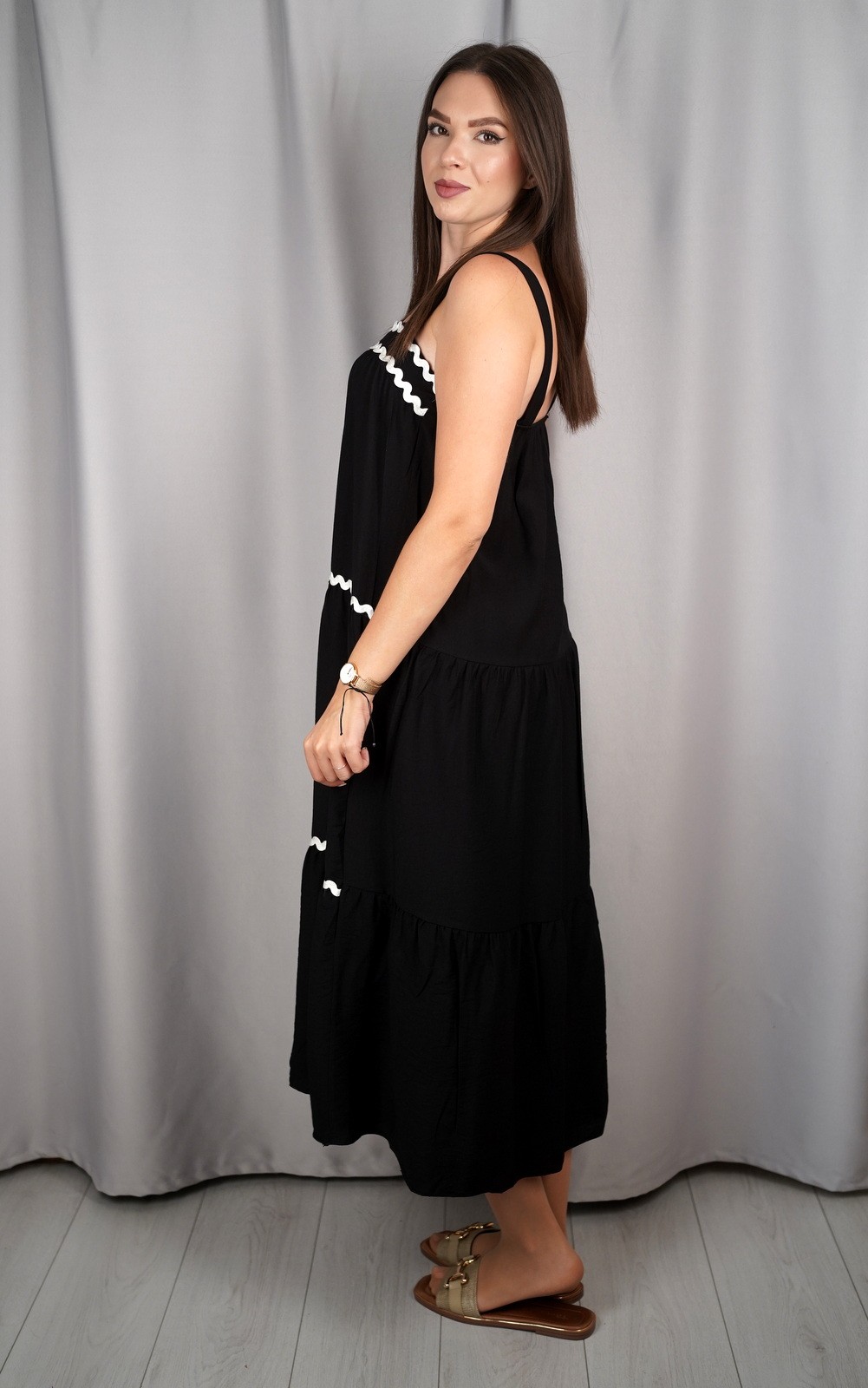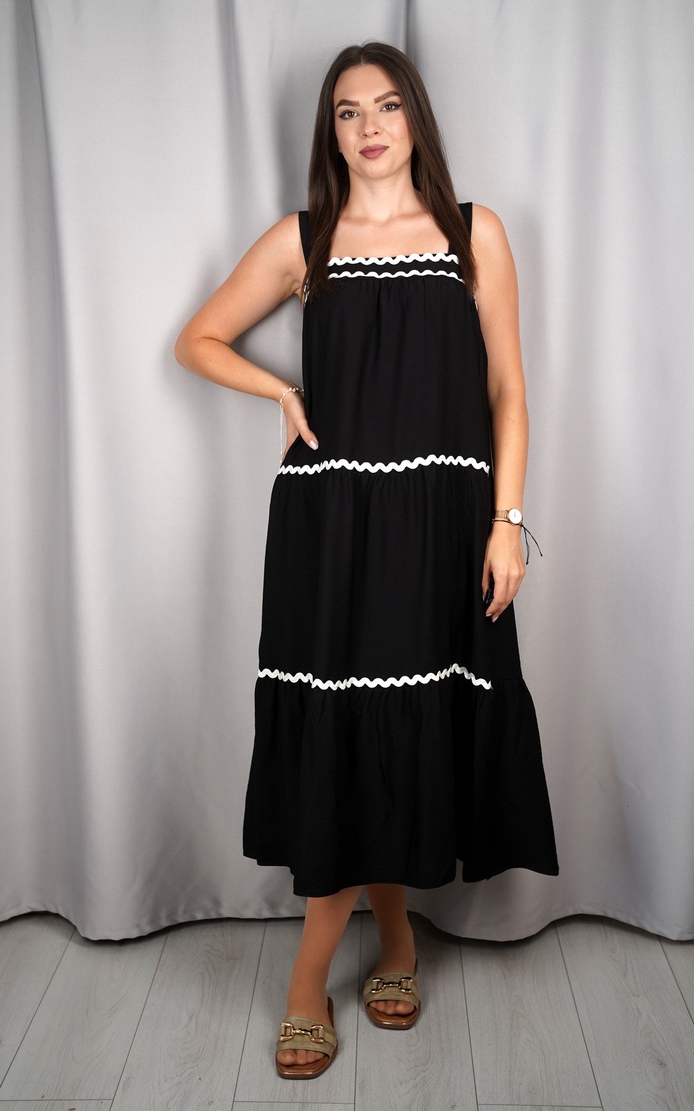 Ženska maxi haljina bez rukava s volanima i ukrasnim detaljima – ART:10429
