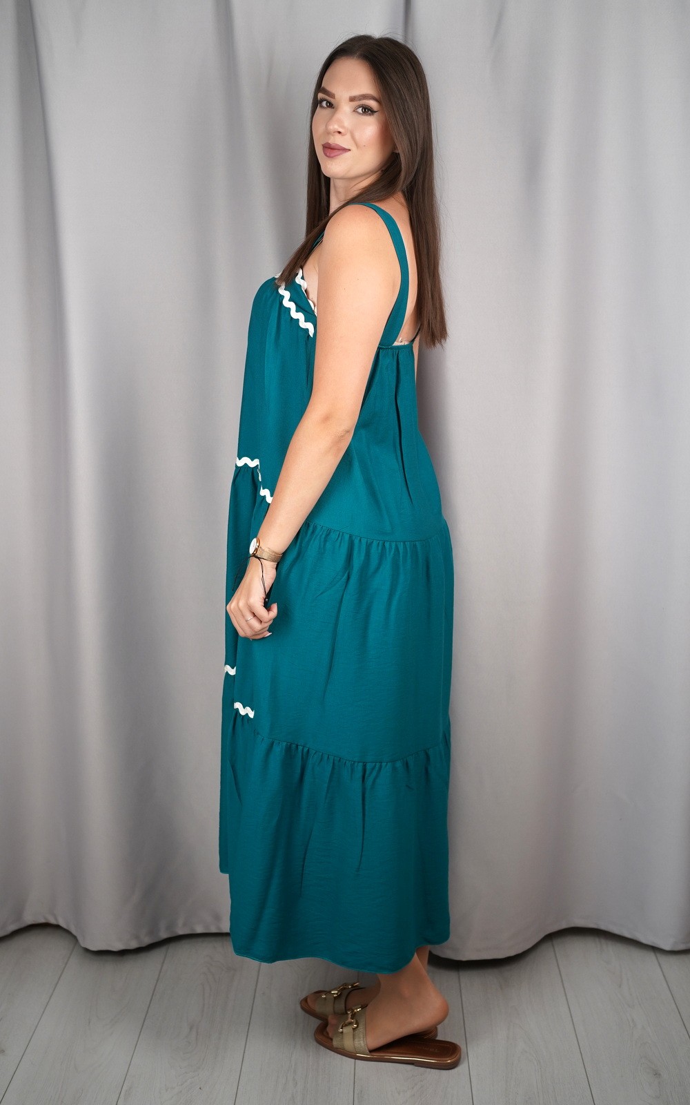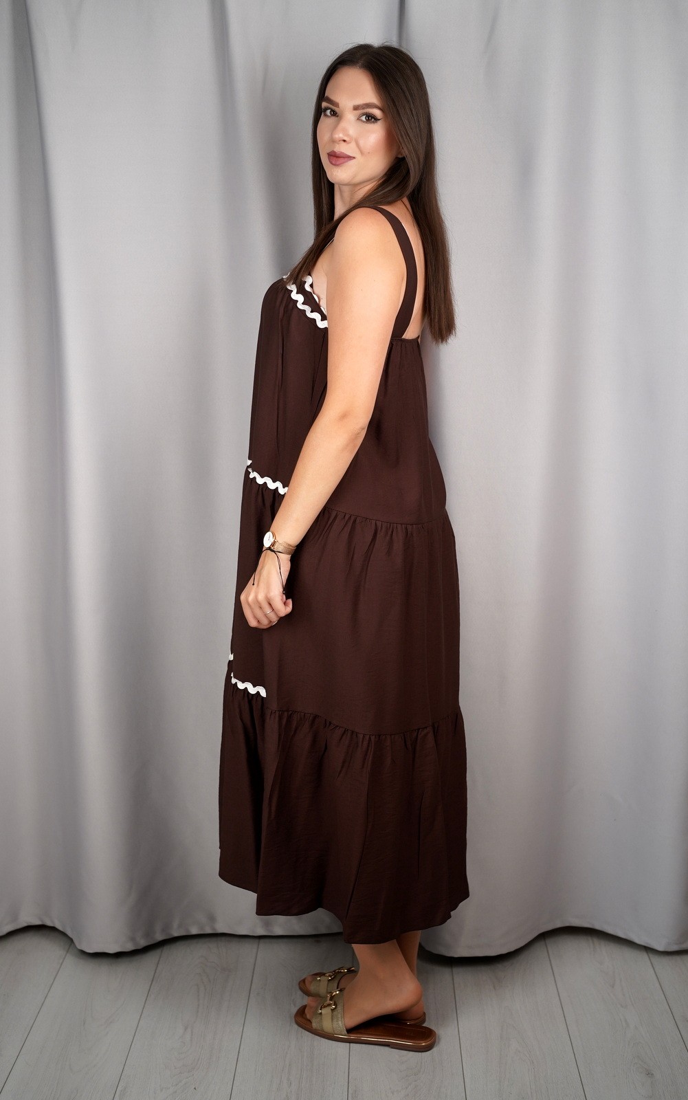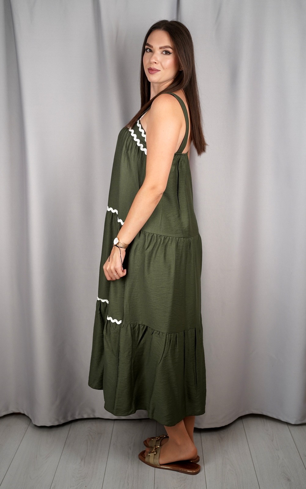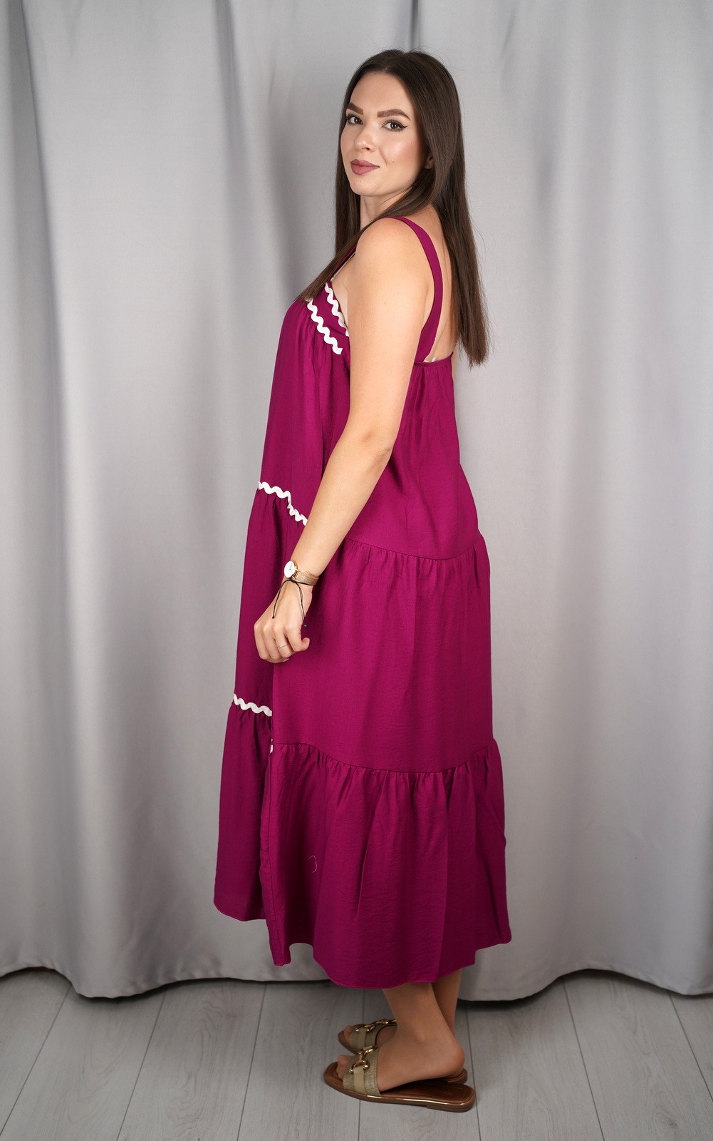 Ženska maxi haljina bez rukava s volanima i ukrasnim detaljima – ART:10429