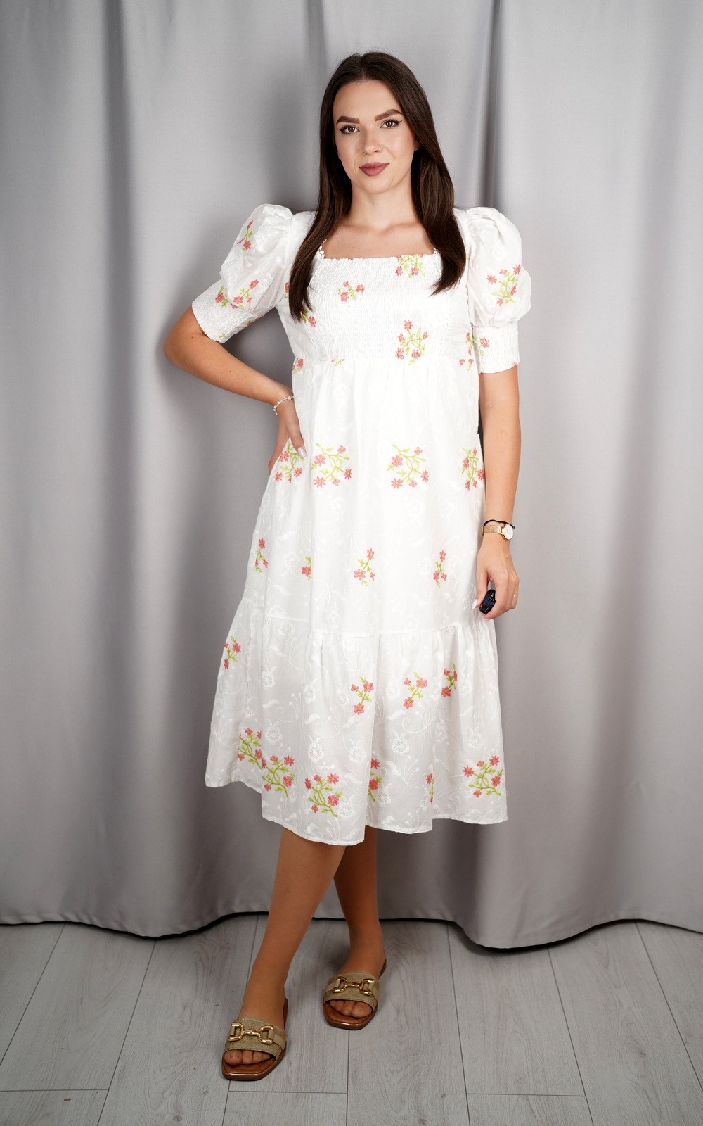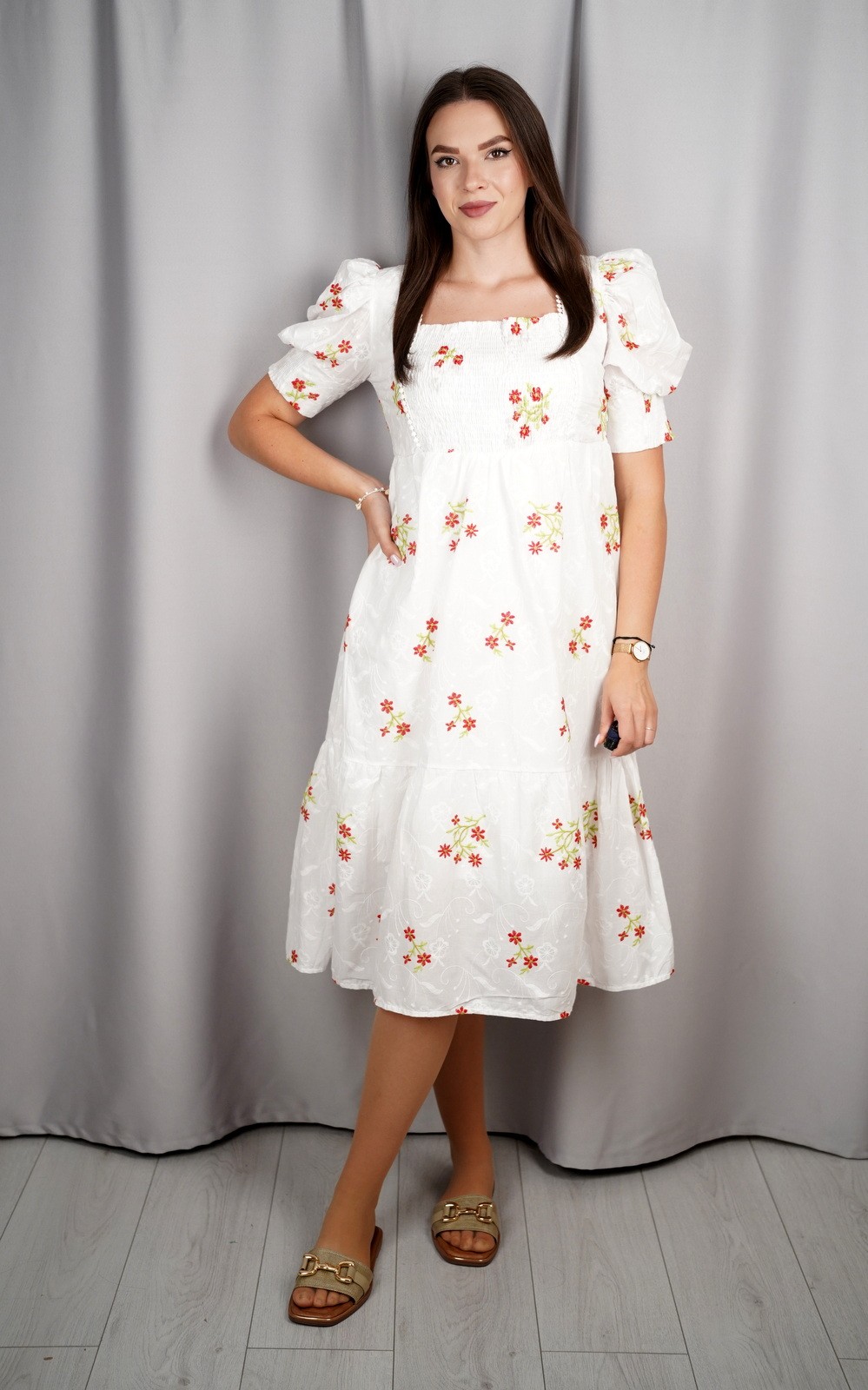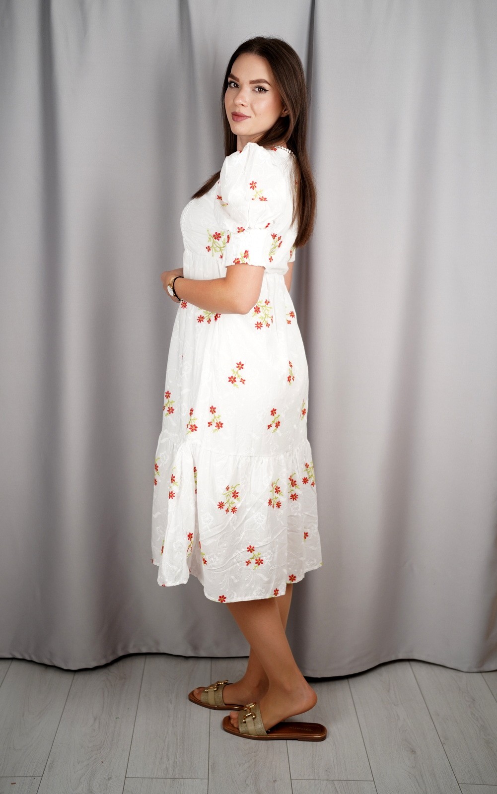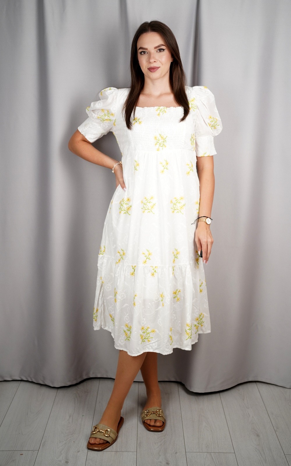 Ženska midi haljina s puf rukavima – u veličinama – 3106