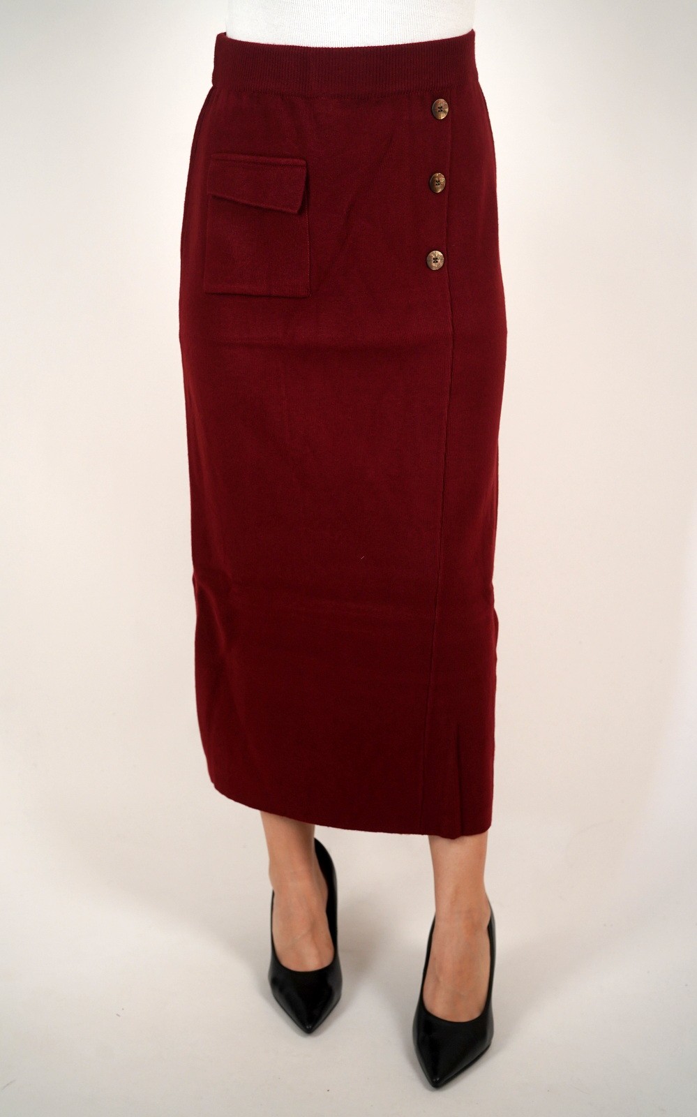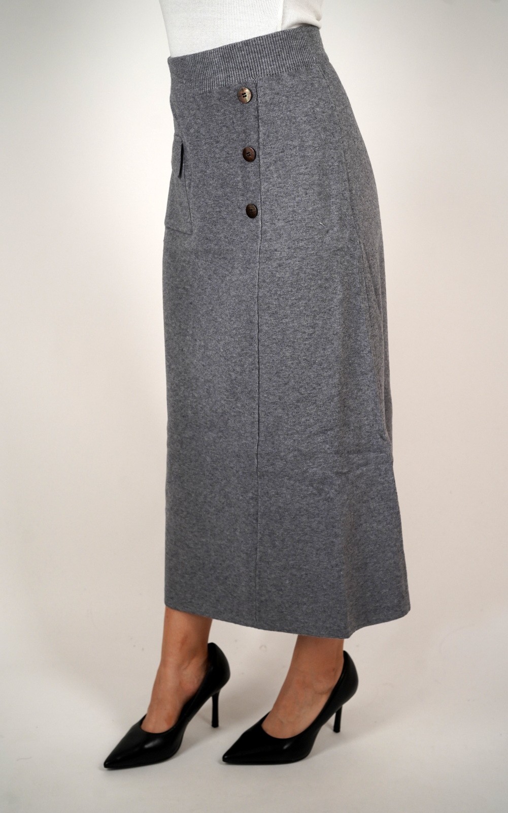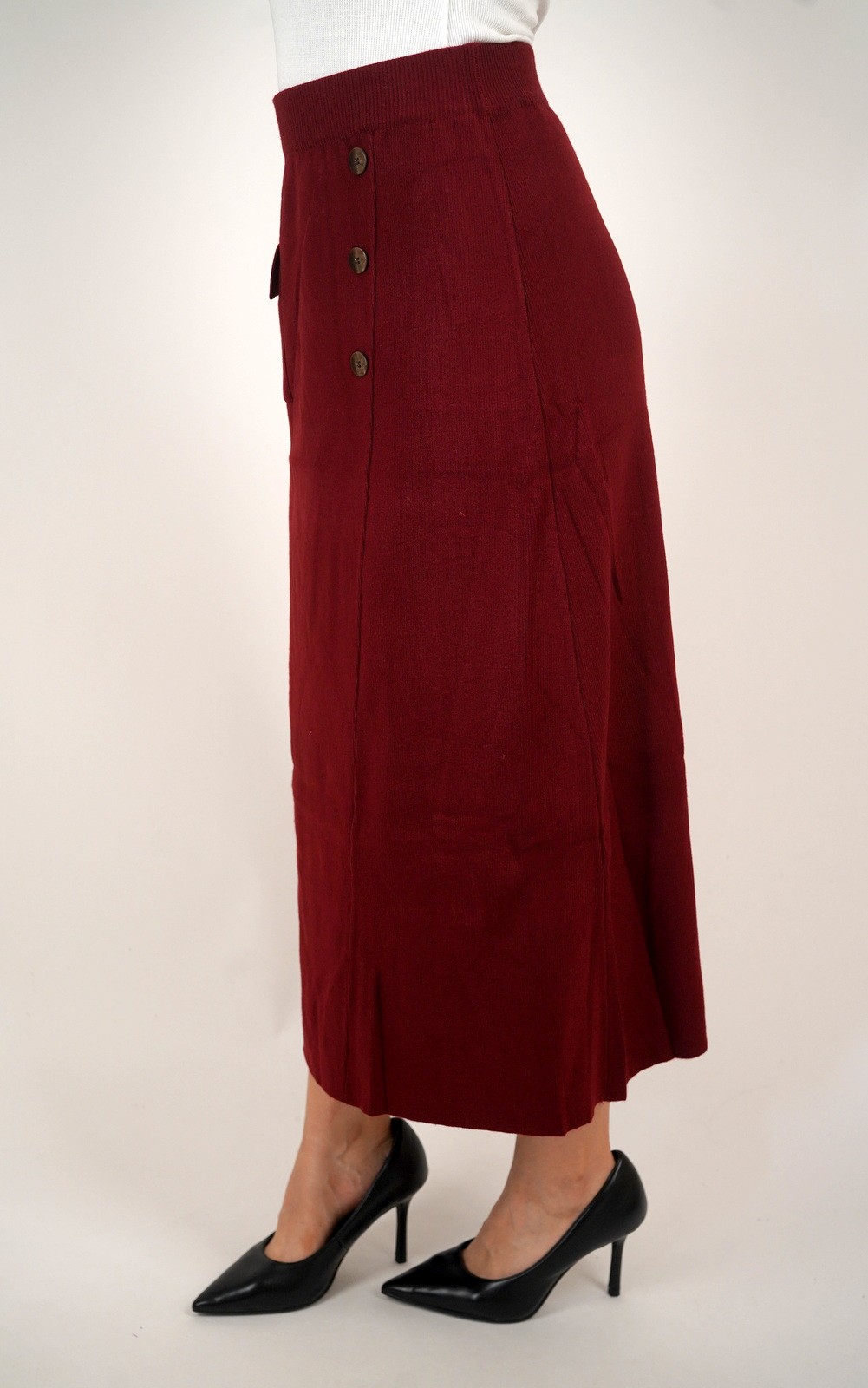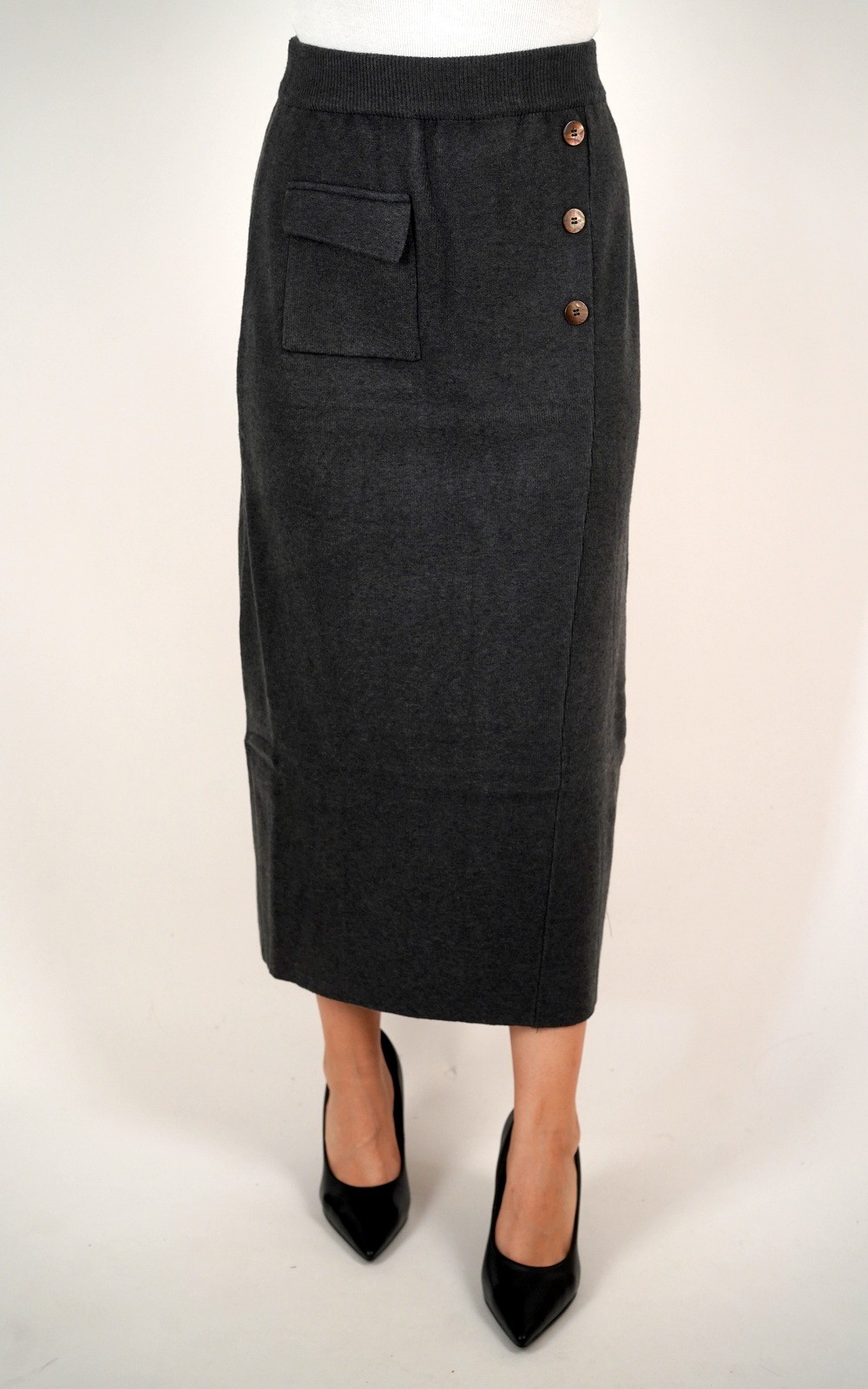 Ženska midi suknja od pletiva s gumbima i džepom – u veličinama – LV017