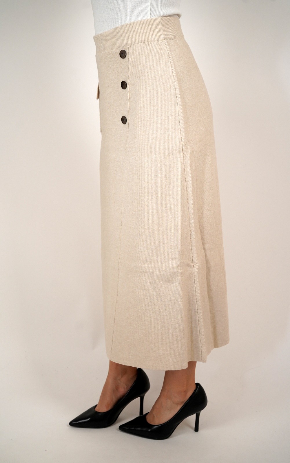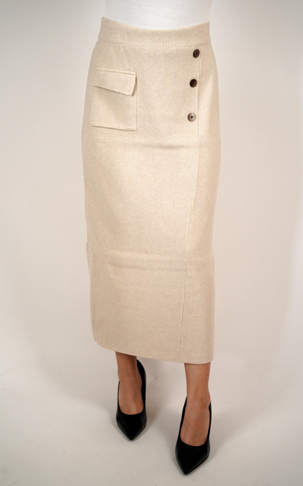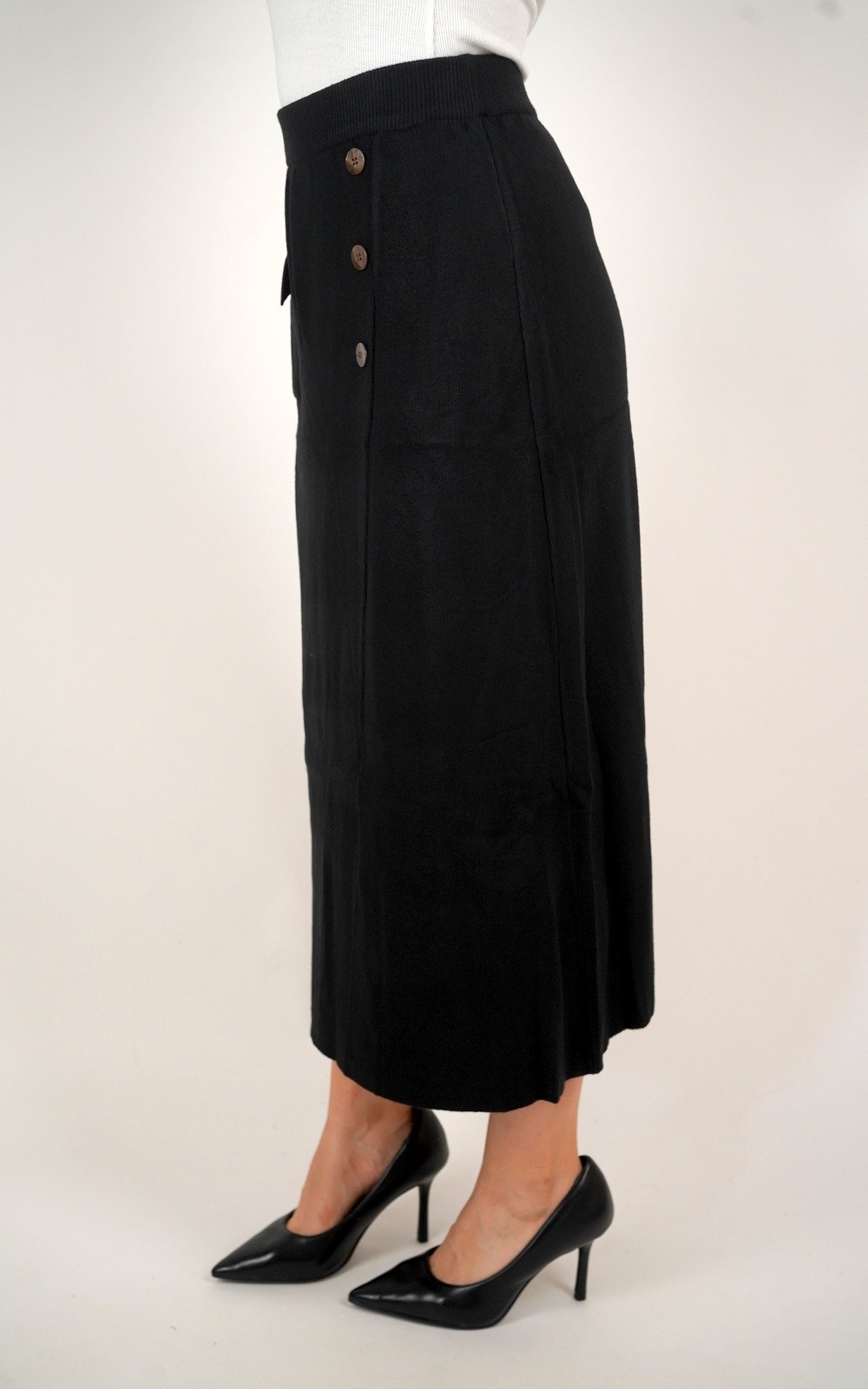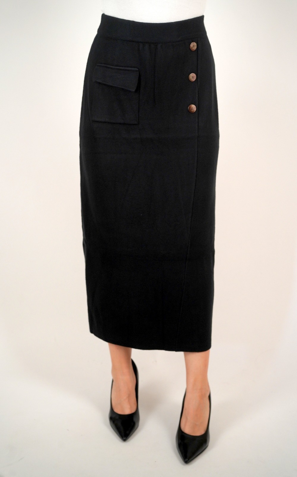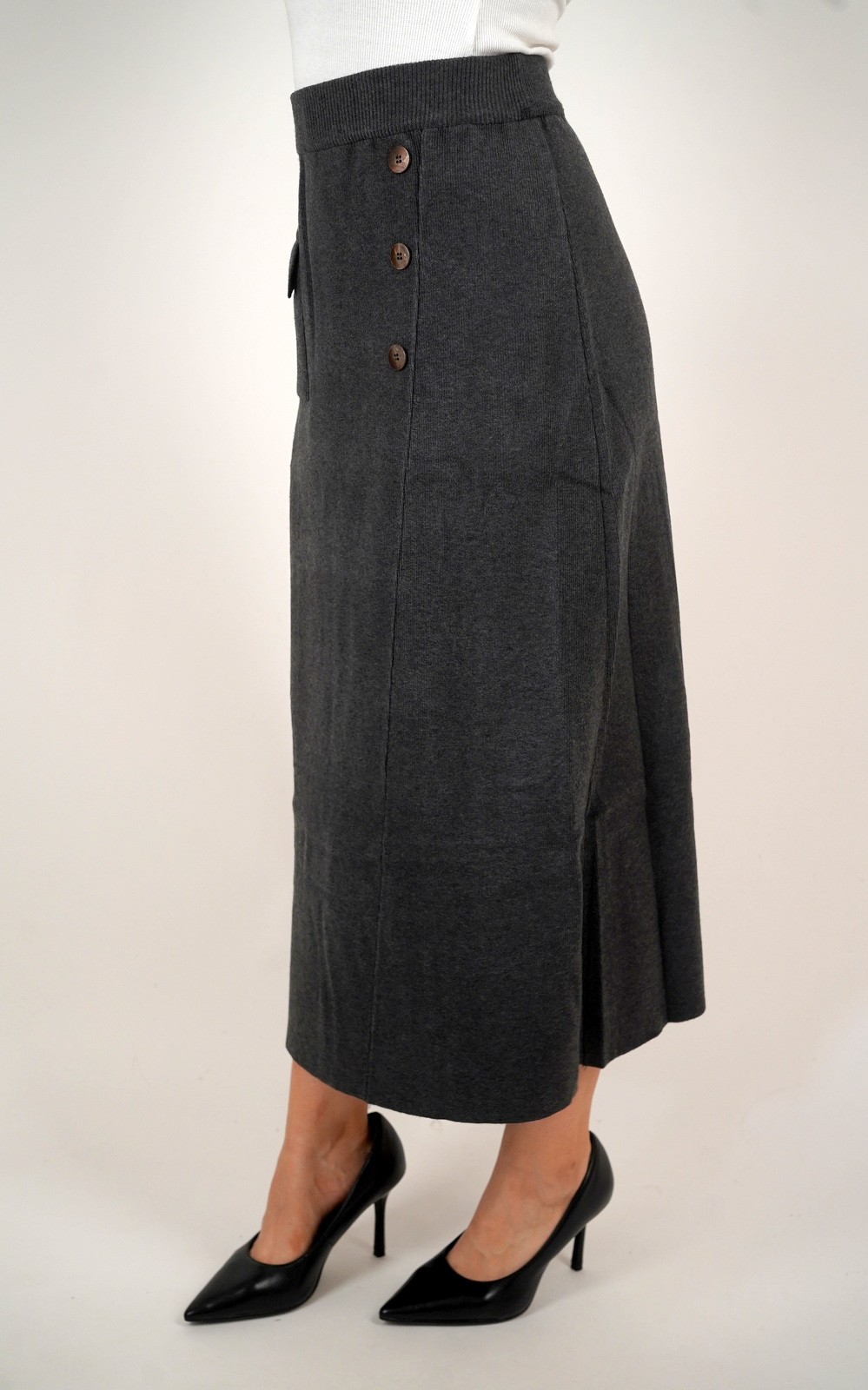 Ženska midi suknja od pletiva s gumbima i džepom – u veličinama – LV017
