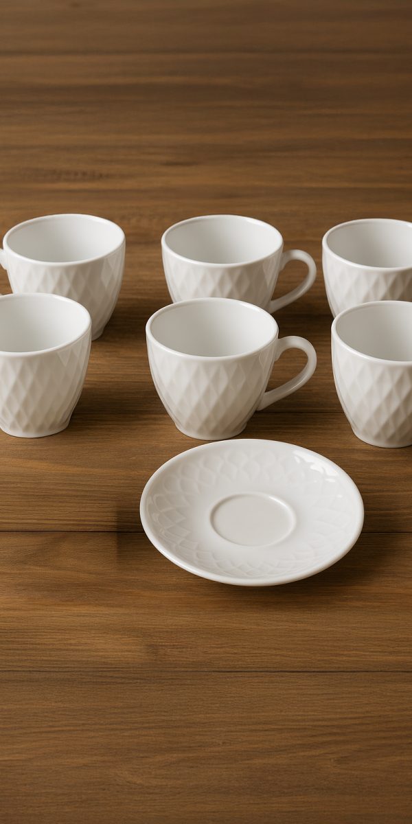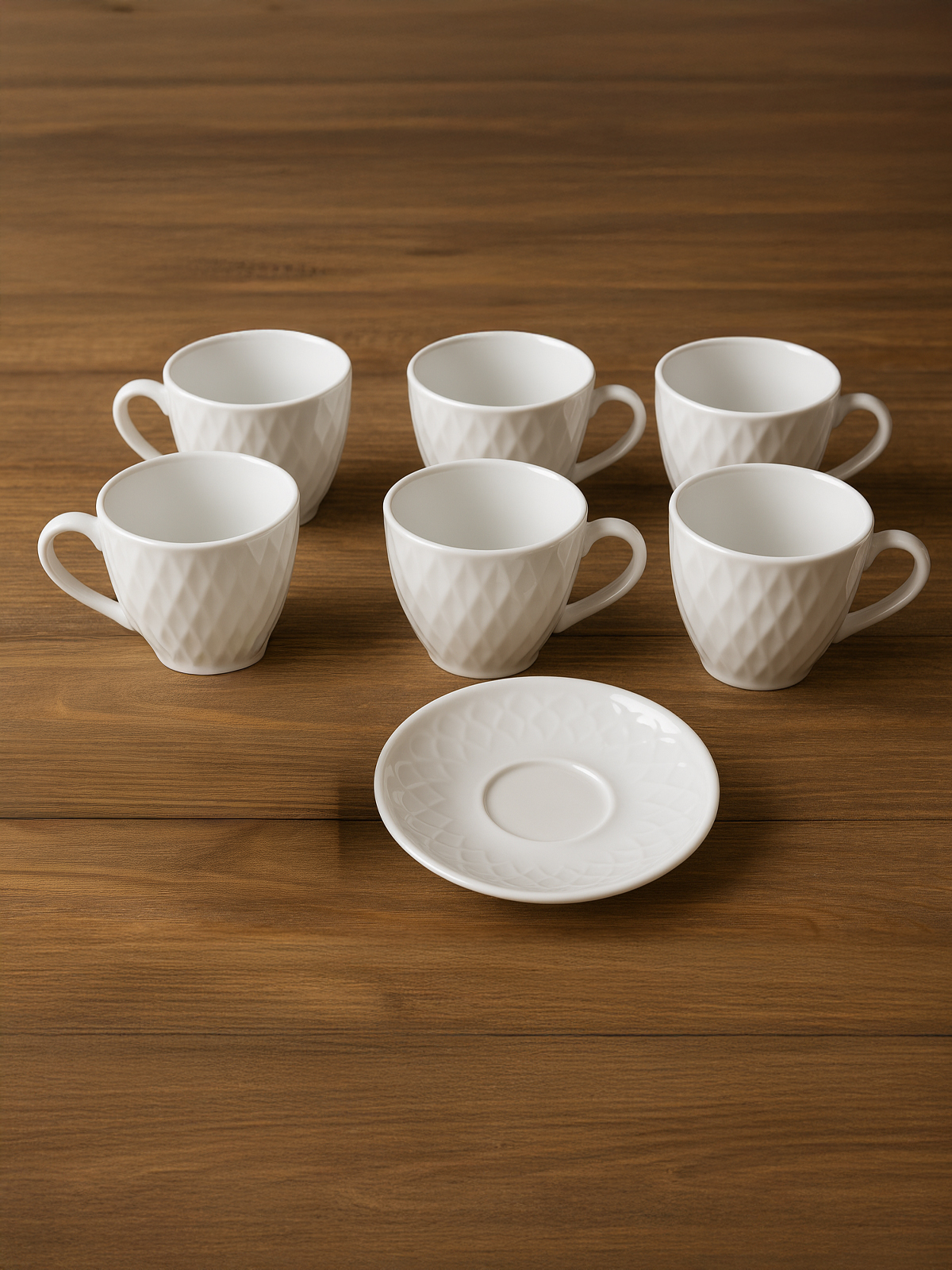Set porculanskih šalica s reljefnim dijamant uzorkom i tanjurićima – 100 ml – ss-601-1