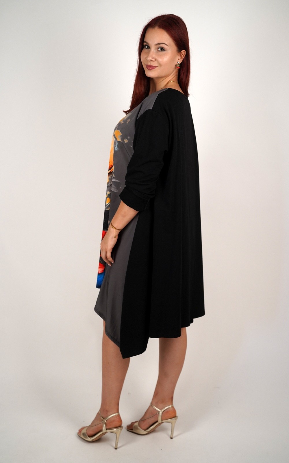 Ženska oversized asimetrična haljina s printom i dugim rukavima – 45011455