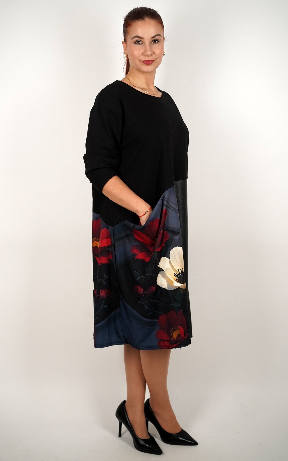 Ženska oversized lepršava haljina s kombinacijom tkanina i džepovima – 45011610