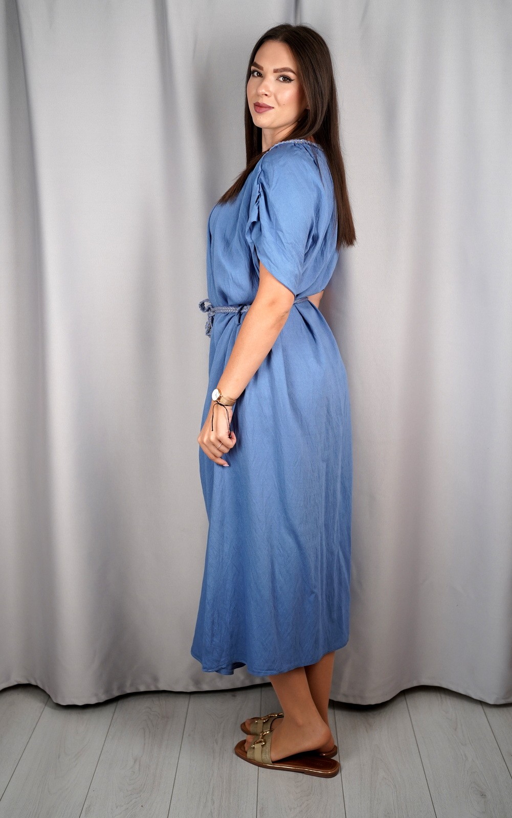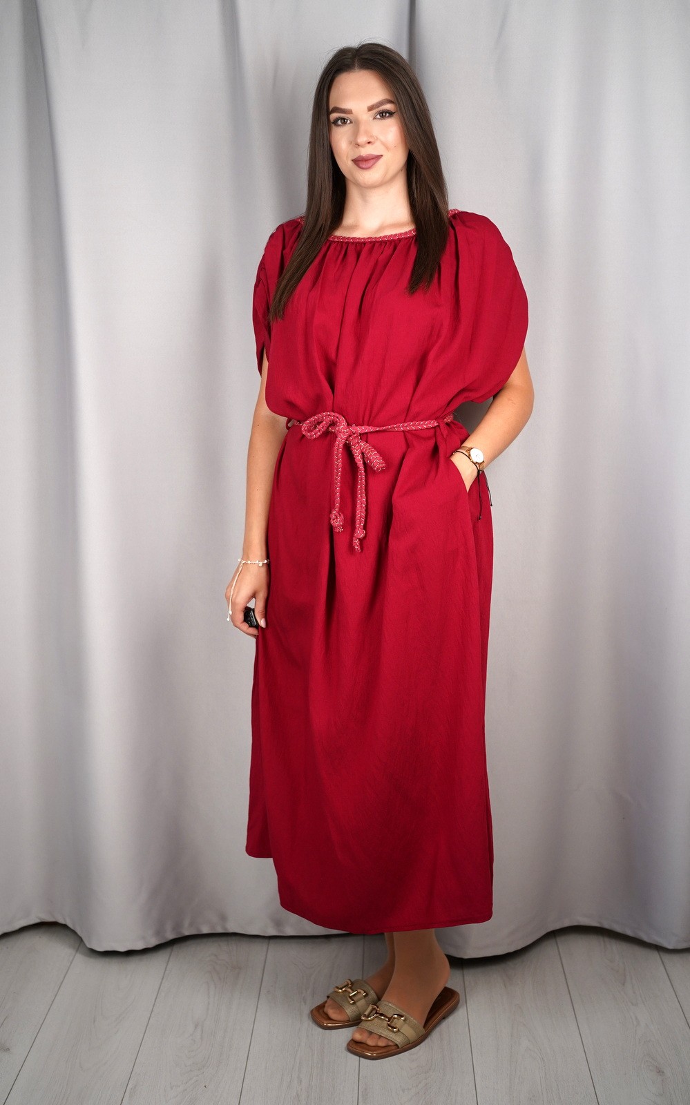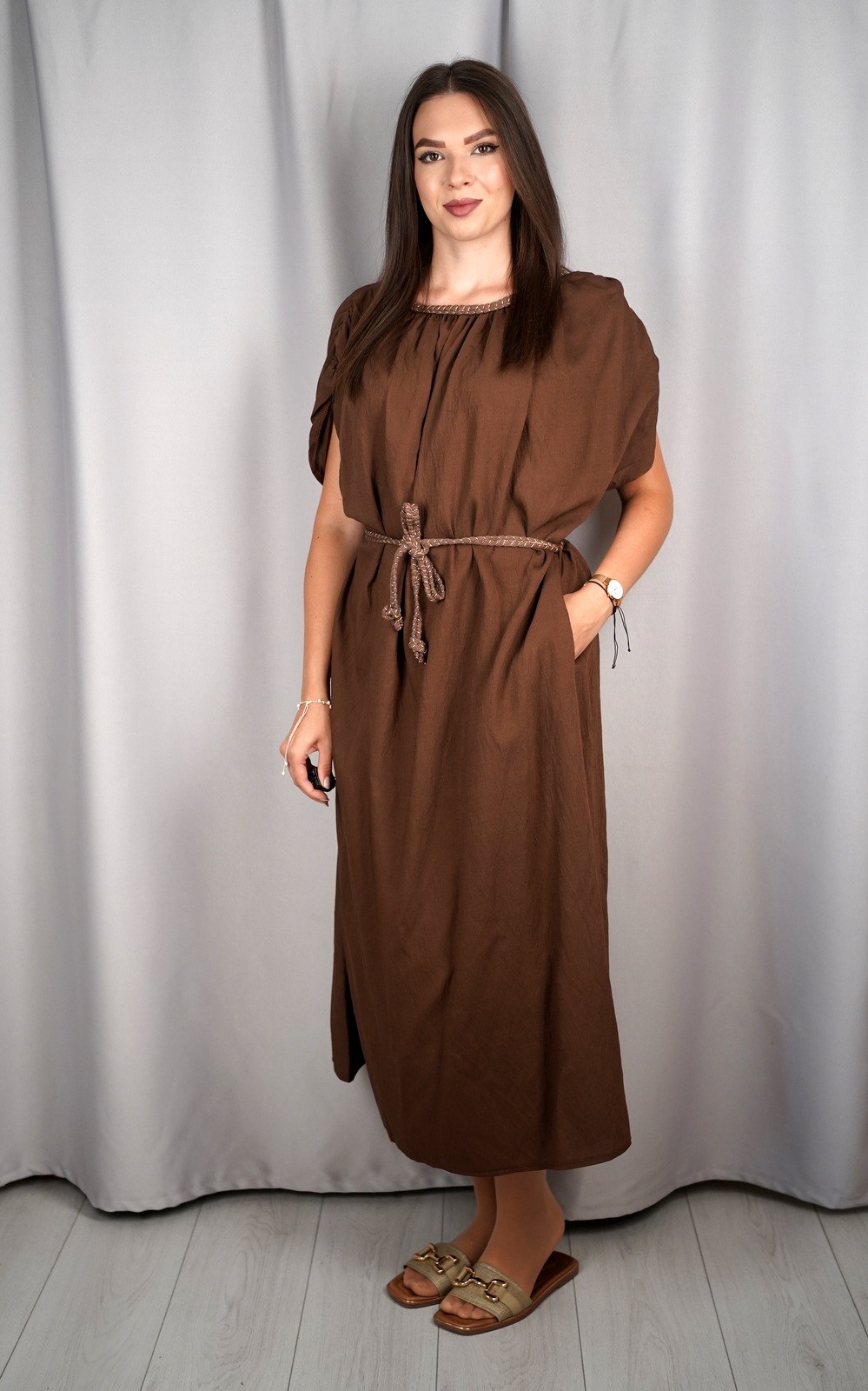 bozic30 očekuje te snižena cijena od 16.80 € za ovaj artikl u košarici.Ženska lepršava maxi haljina s pojasom i širokim rukavima pravi je izbor za žene koje vole spoj udobnosti i ženstvene elegancije. Lagani i prozračni materijal omogućava da se haljina ugodno nosi tijekom cijelog dana, dok široki rukavi pružaju dodatnu slobodu pokreta. Pojas naglašava struk i dodaje oblik figuri, pa haljina lijepo pristaje svakoj građi tijela. Svestrana je i praktična – idealna za dnevne šetnje, opuštene trenutke, kao i večernje kombinacije uz pravi modni dodatak. Ovaj model je bezvremenski i može se nositi u različitim prilikama, od casual do elegantnijih izlazaka.