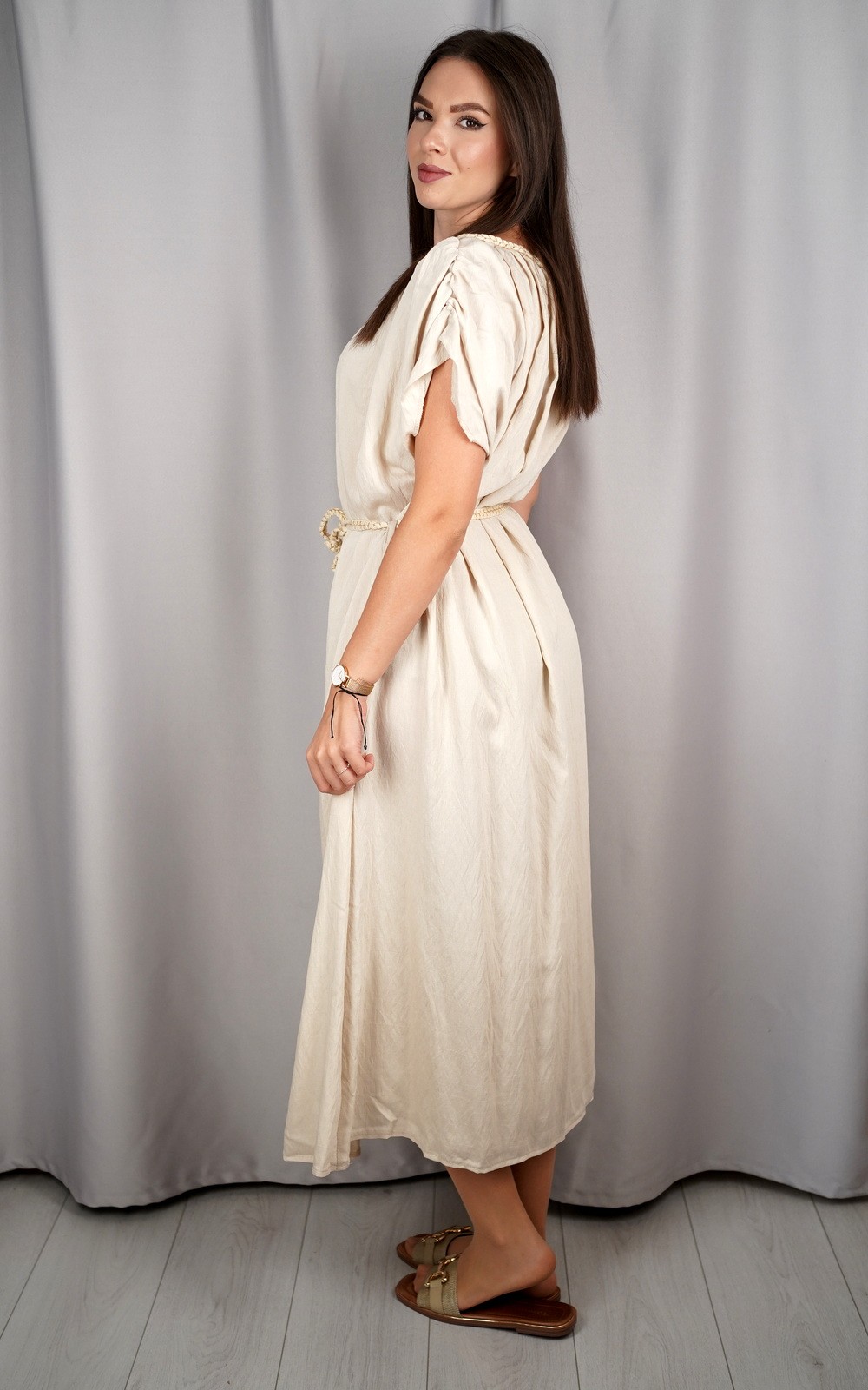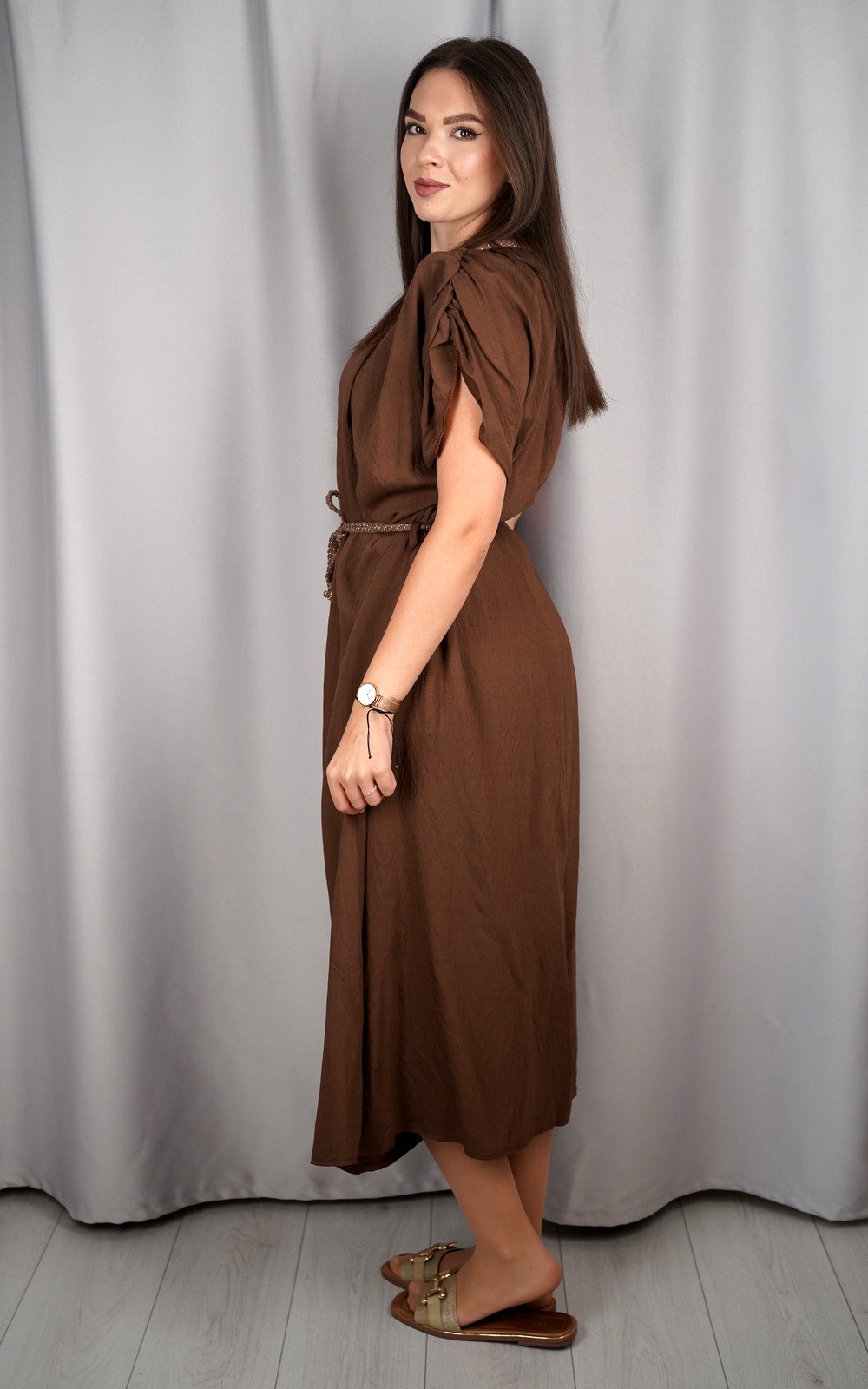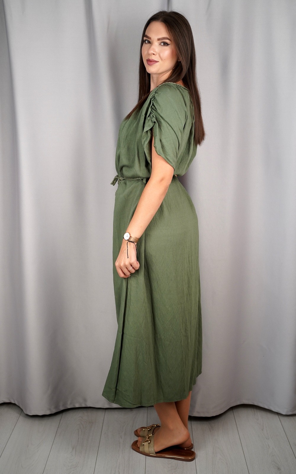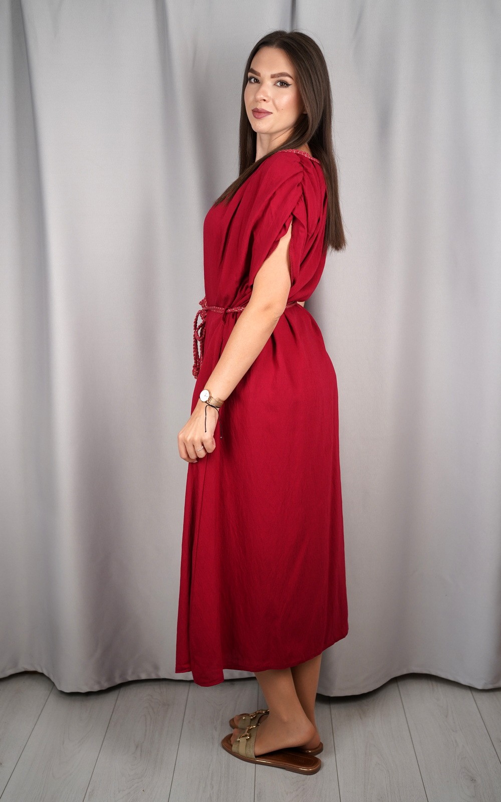 bozic30 očekuje te snižena cijena od 16.80 € za ovaj artikl u košarici.Ženska lepršava maxi haljina s pojasom i širokim rukavima pravi je izbor za žene koje vole spoj udobnosti i ženstvene elegancije. Lagani i prozračni materijal omogućava da se haljina ugodno nosi tijekom cijelog dana, dok široki rukavi pružaju dodatnu slobodu pokreta. Pojas naglašava struk i dodaje oblik figuri, pa haljina lijepo pristaje svakoj građi tijela. Svestrana je i praktična – idealna za dnevne šetnje, opuštene trenutke, kao i večernje kombinacije uz pravi modni dodatak. Ovaj model je bezvremenski i može se nositi u različitim prilikama, od casual do elegantnijih izlazaka.