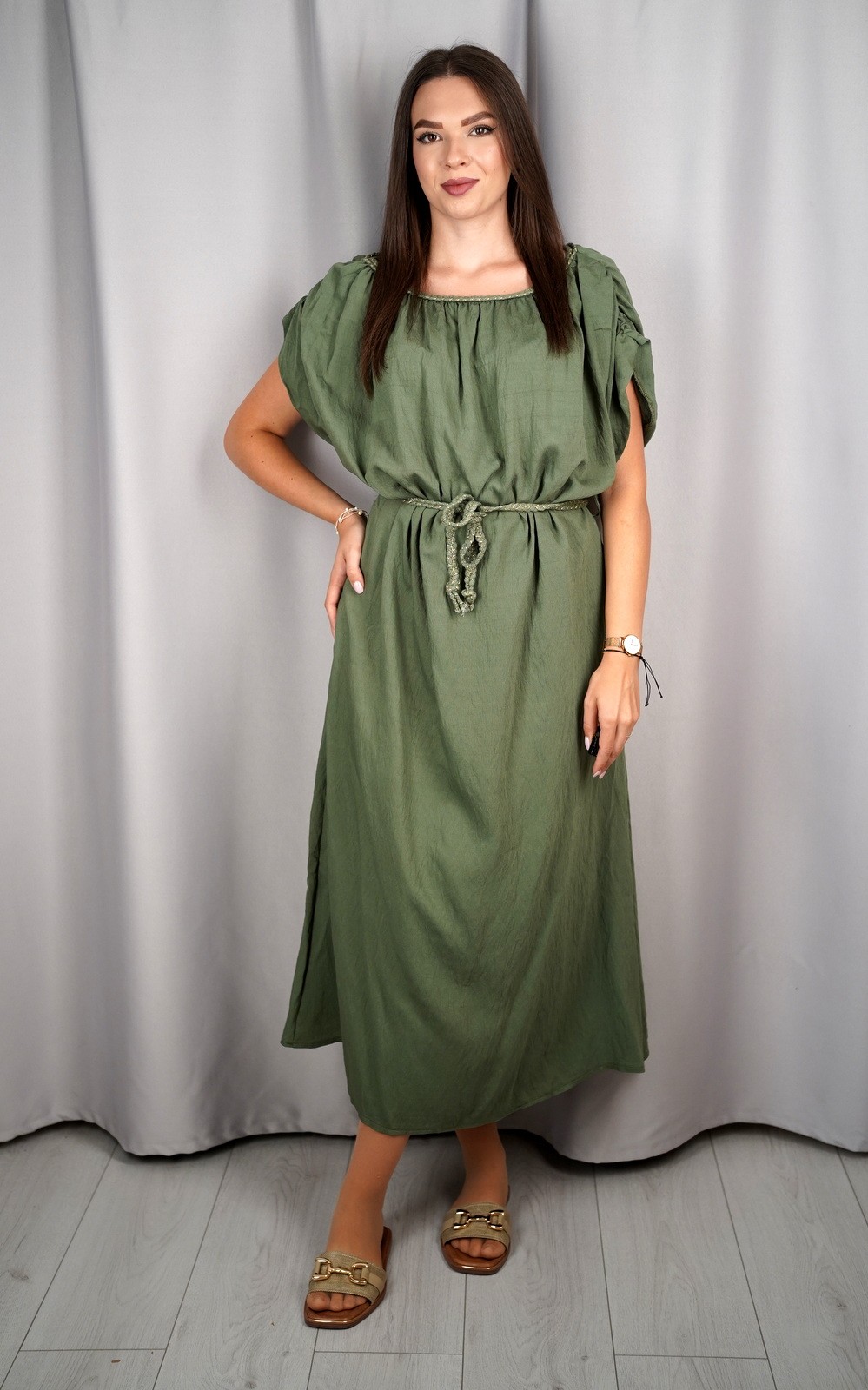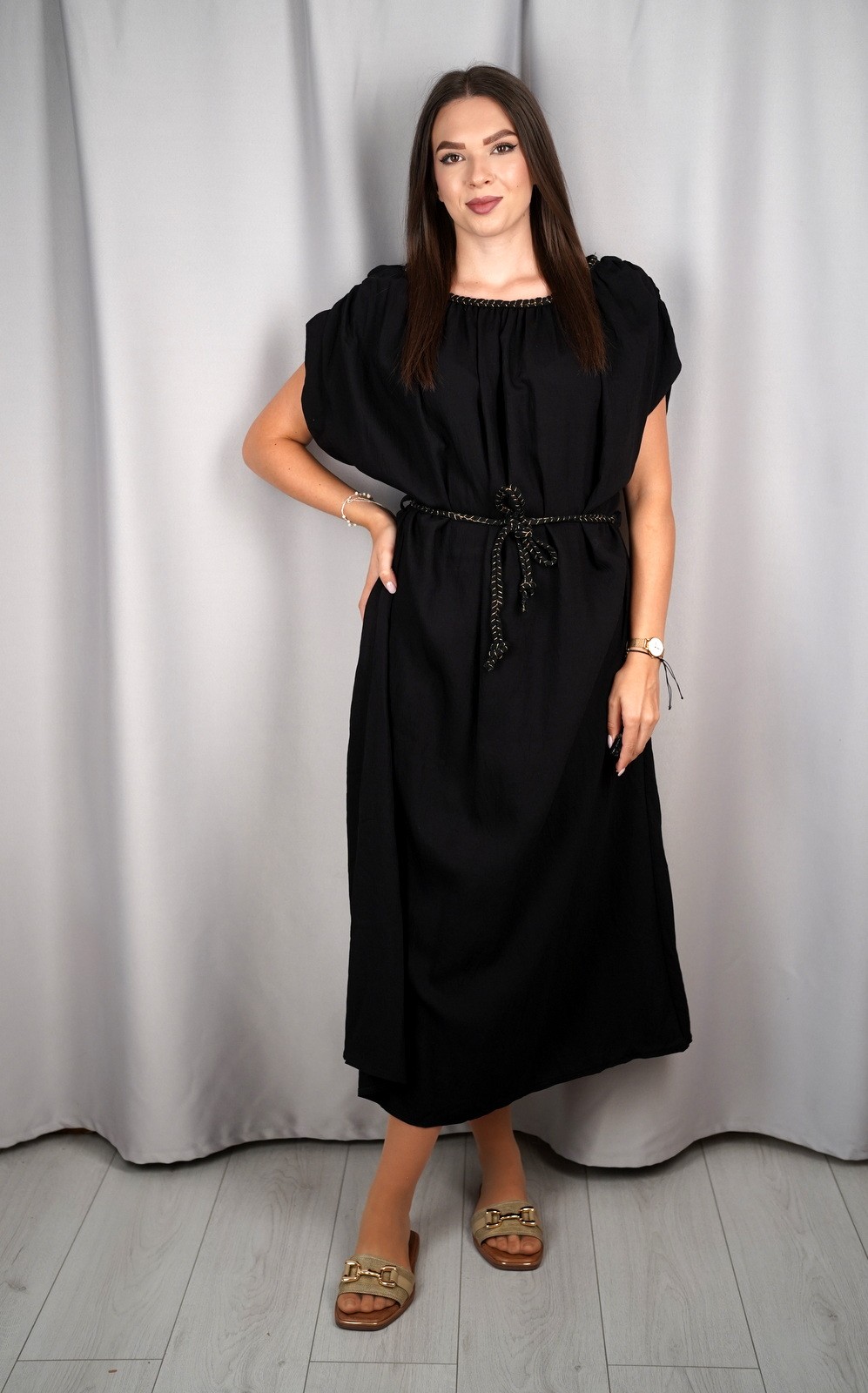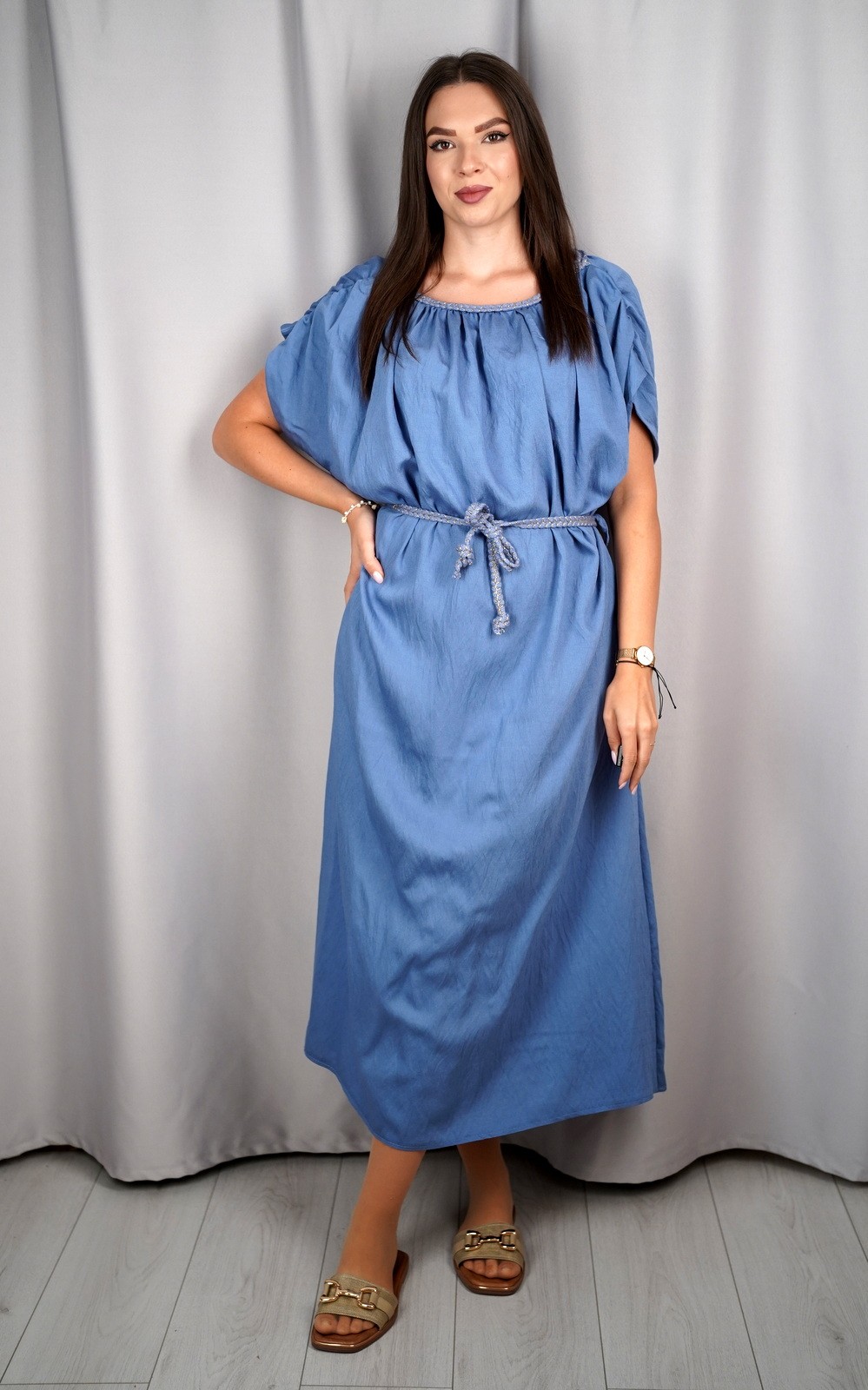 Ženska oversized lepršava maxi haljina s vezicom i širokim rukavima – ART:23539
