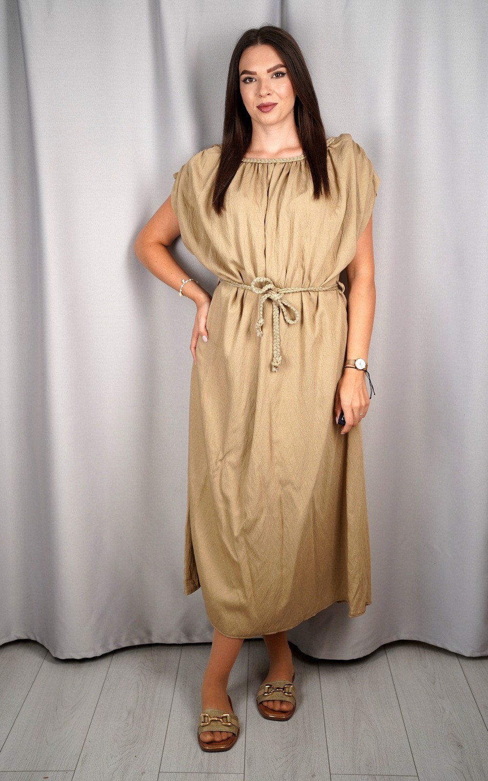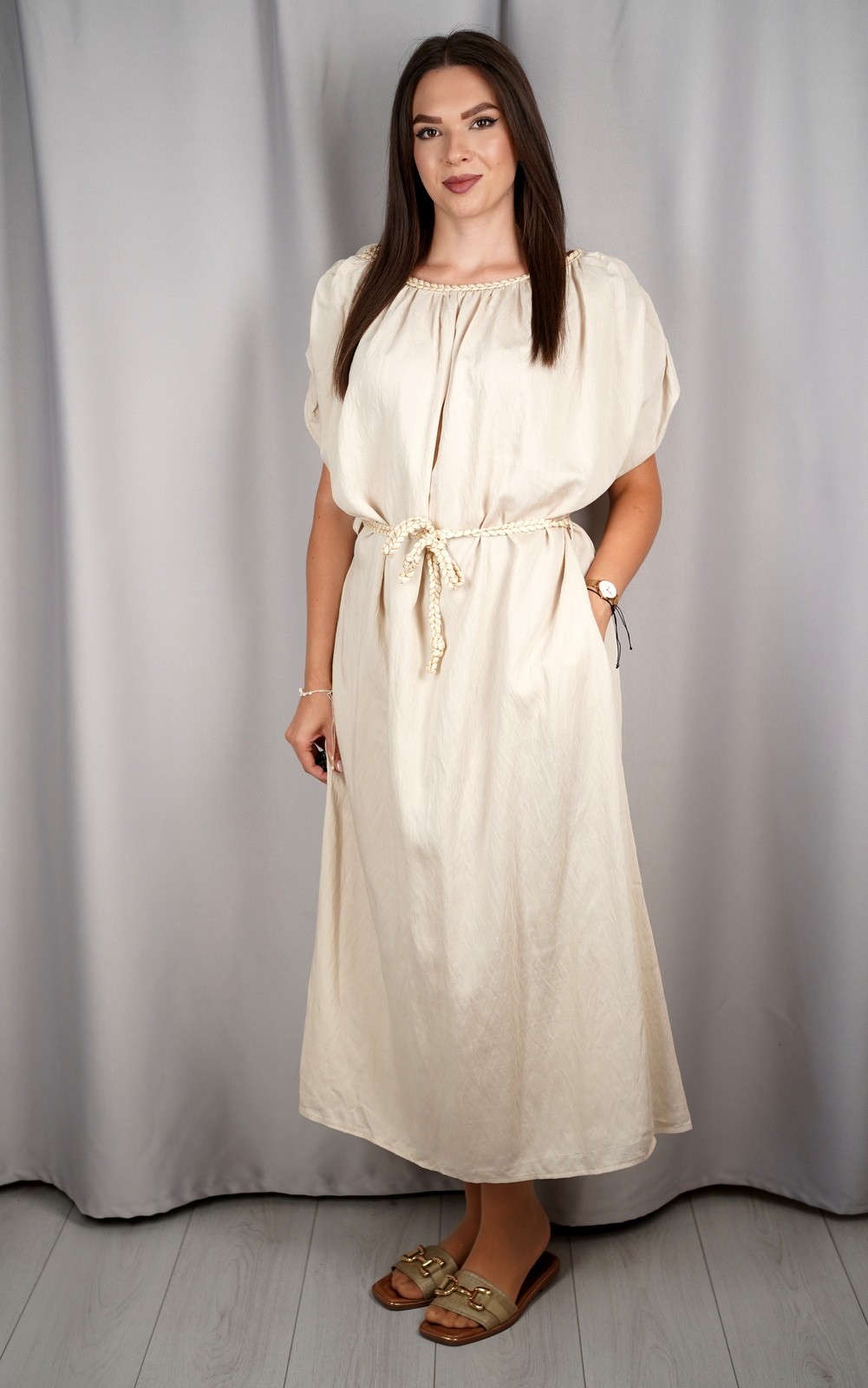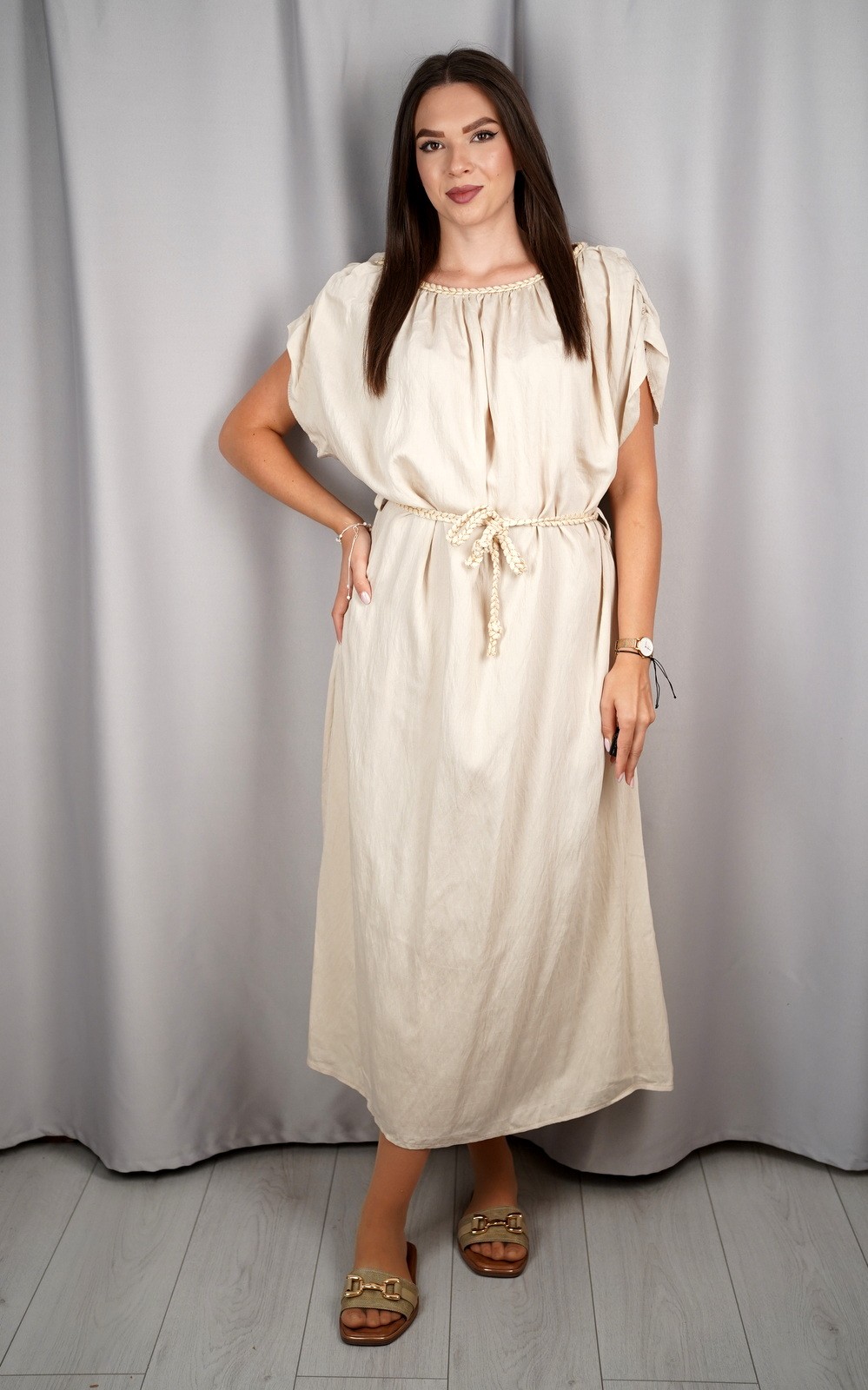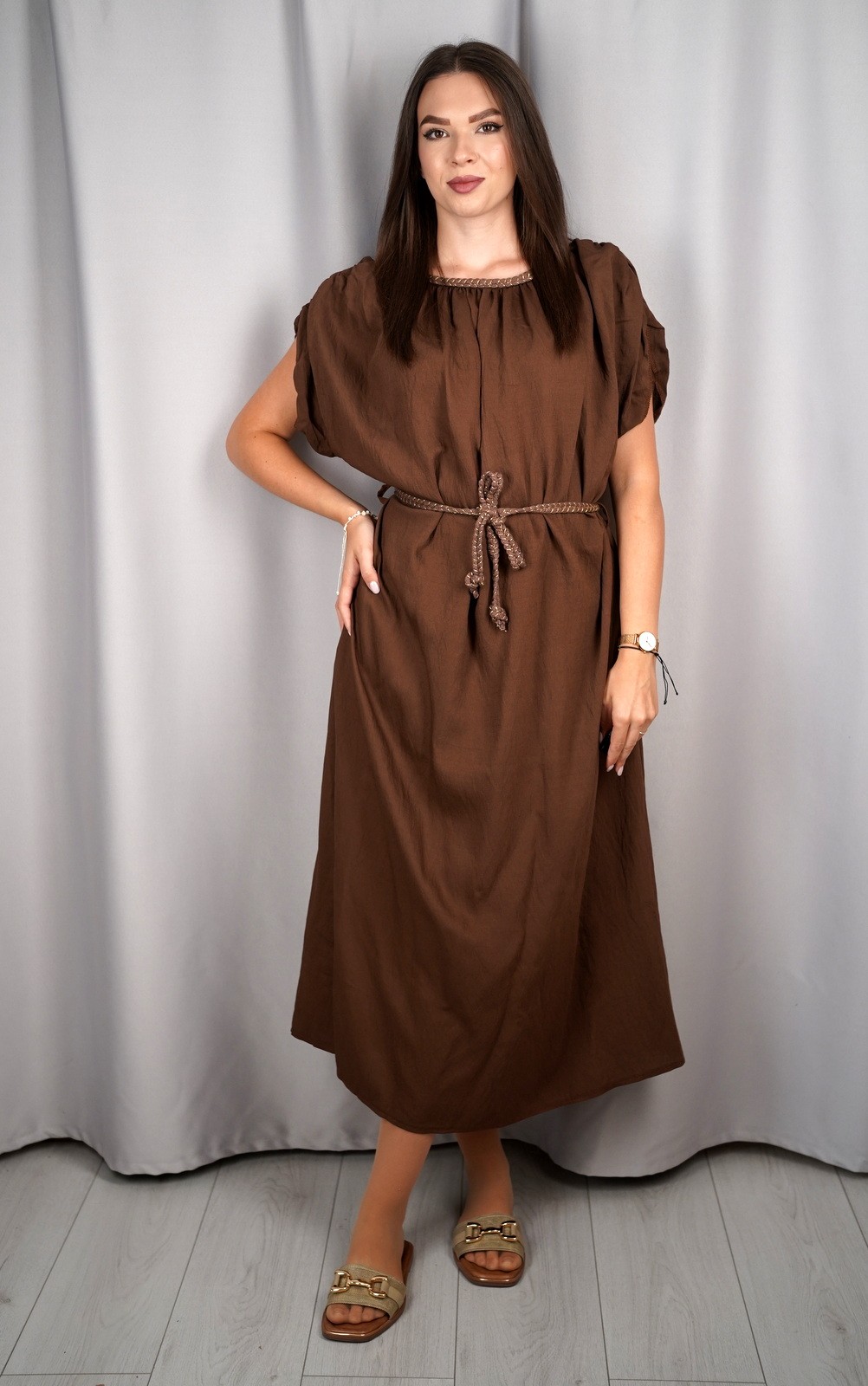 Ženska oversized lepršava maxi haljina s vezicom i širokim rukavima – ART:23539