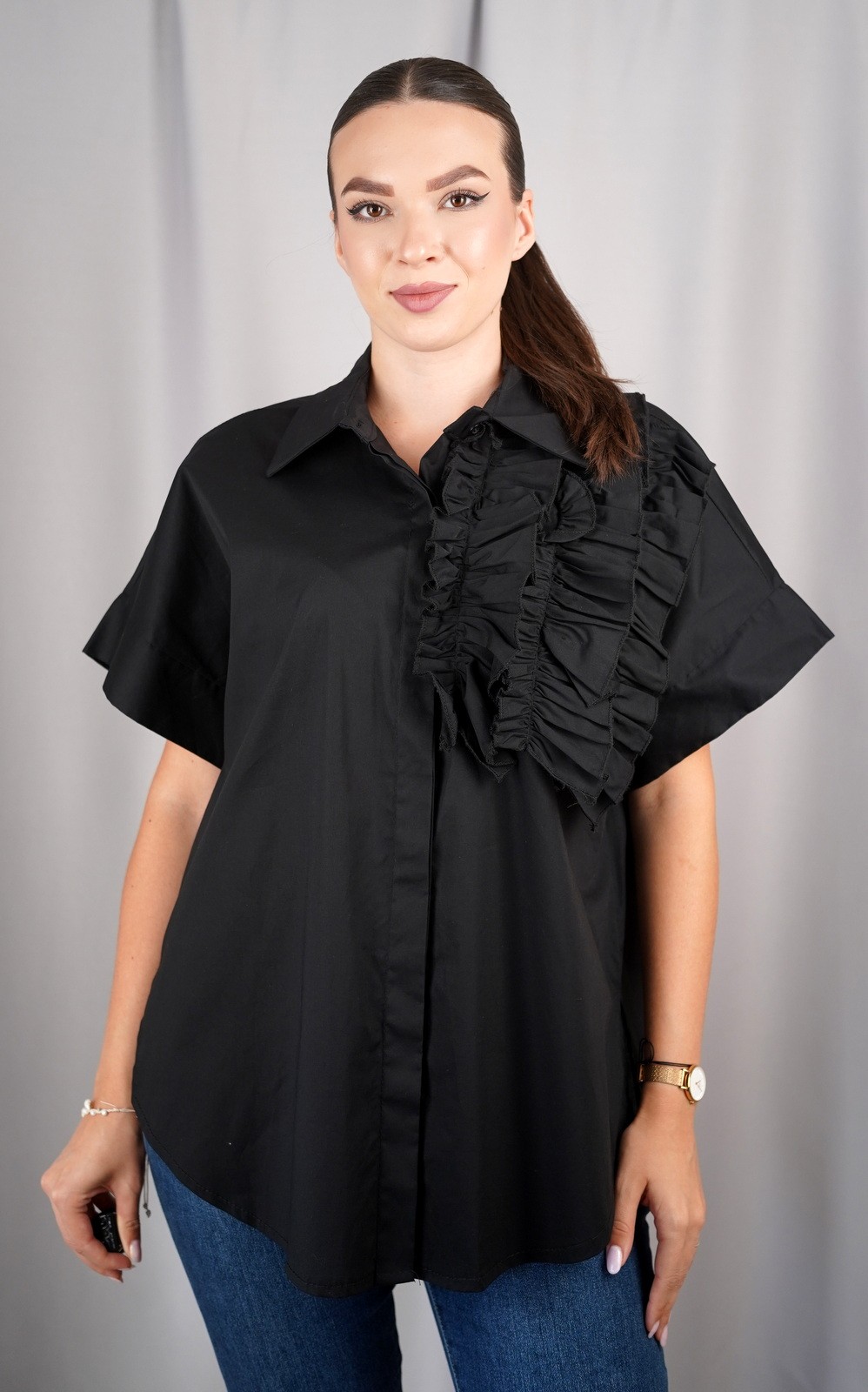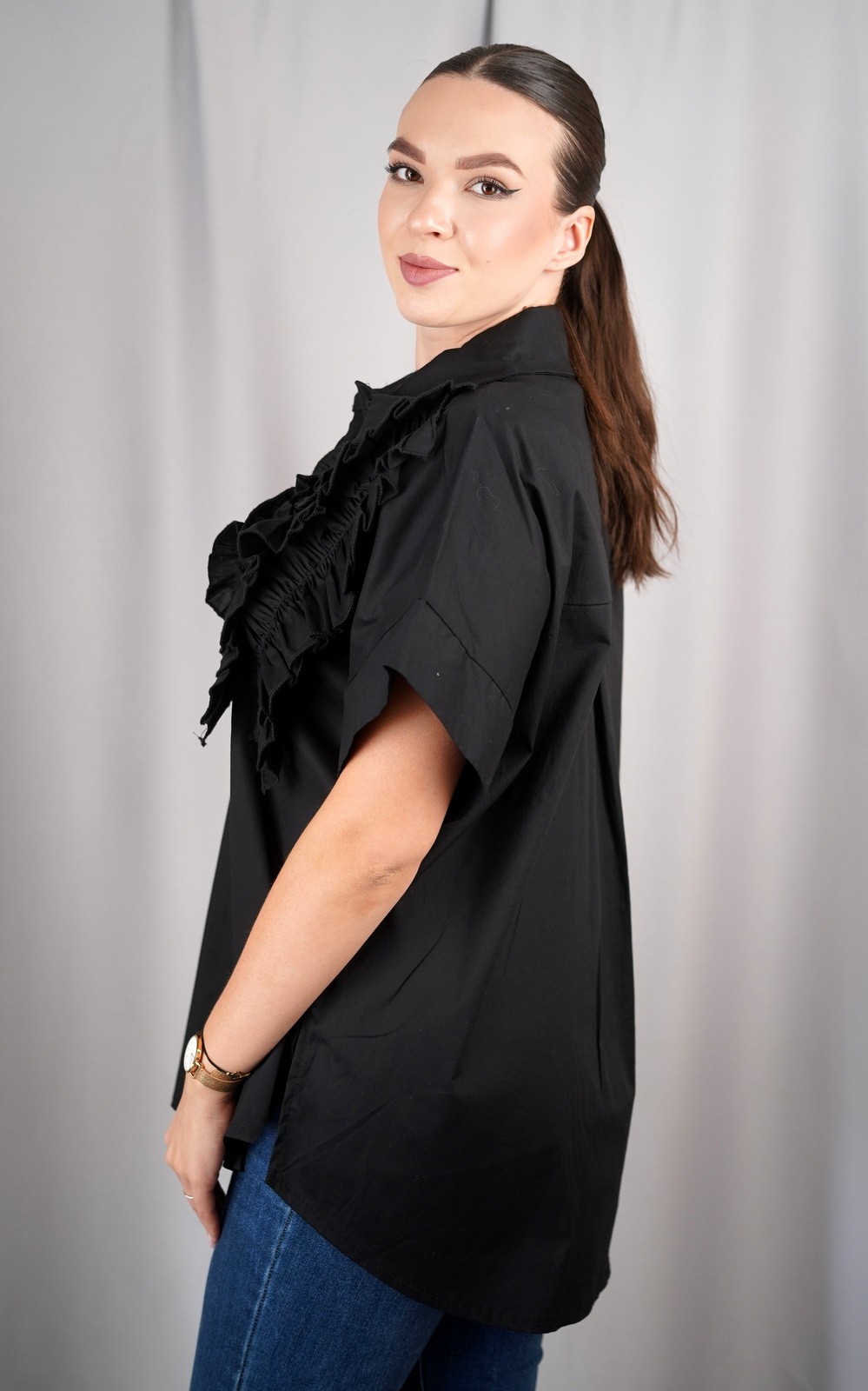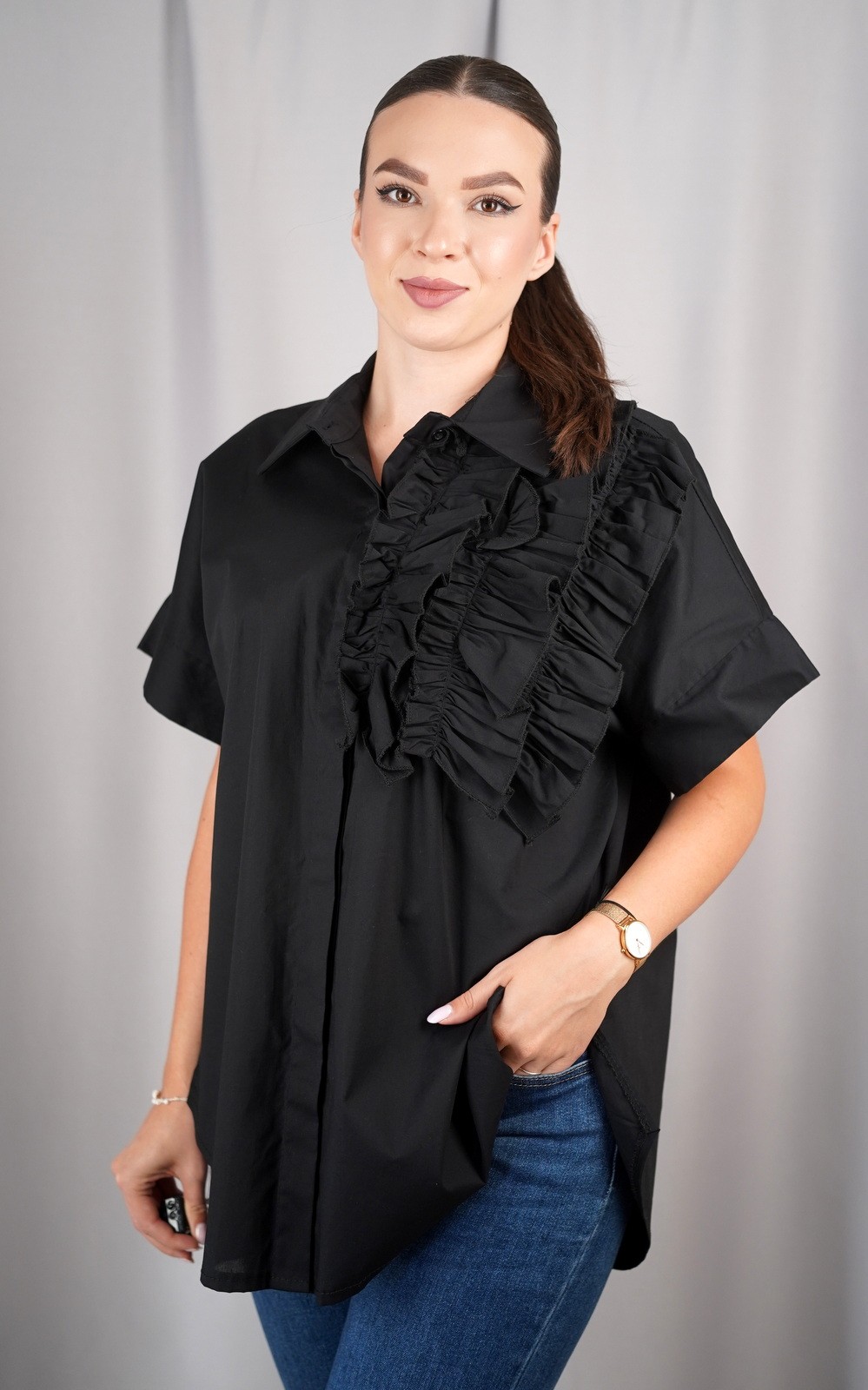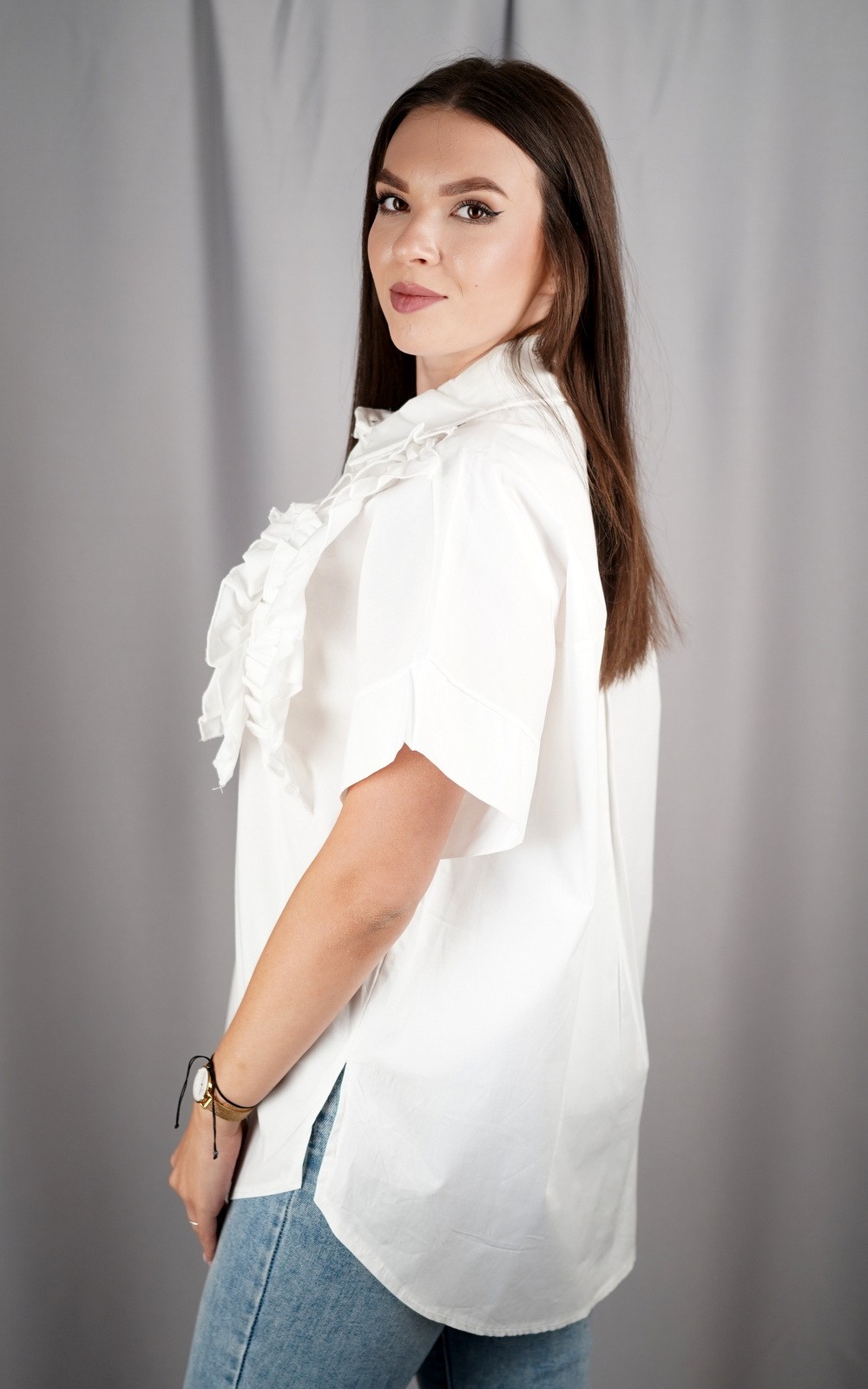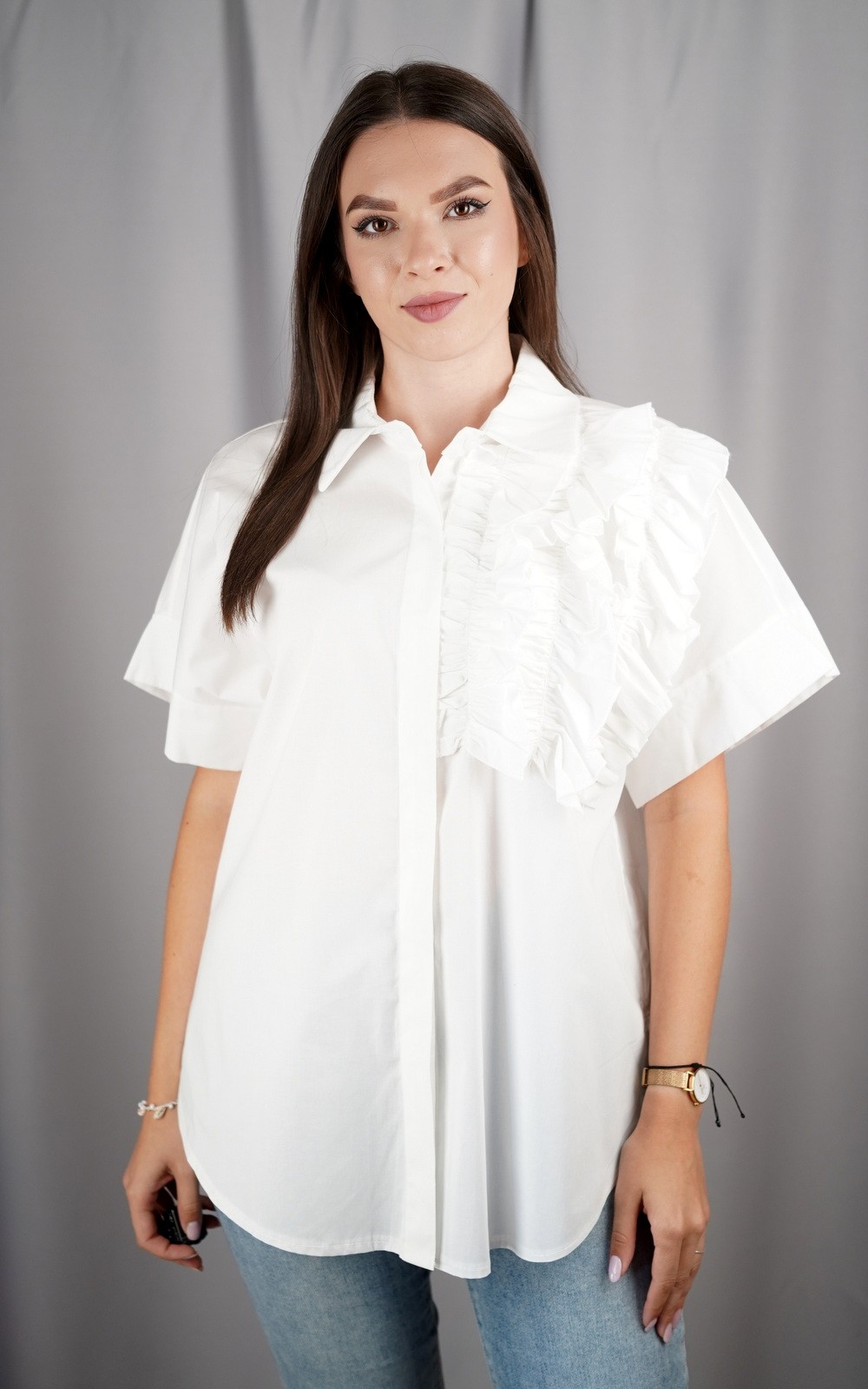 Ženska oversized pamučna košulja kratkih rukava s volanima i elegantnim detaljima – 688