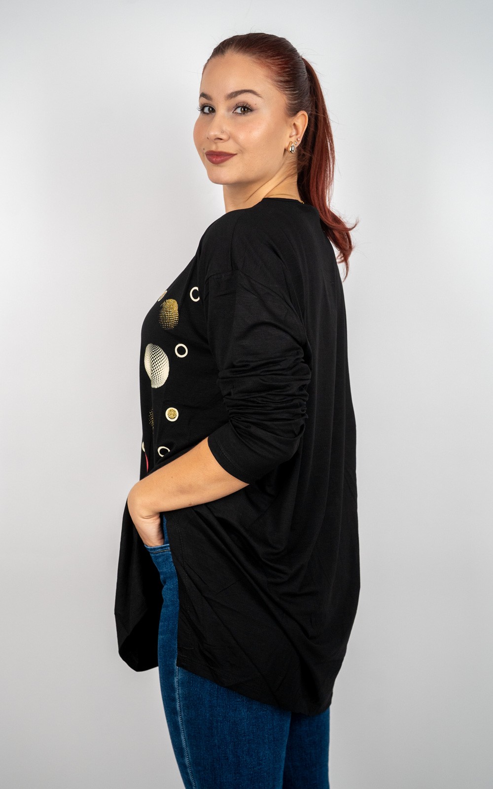 Ženska oversized viskozna tunika s uzorkom krugova – 45011599