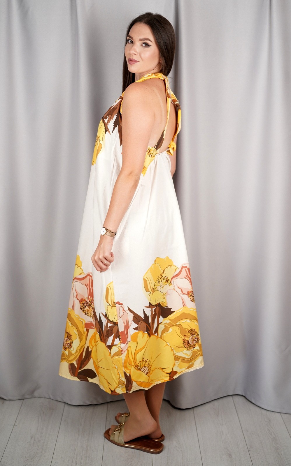 Ženska pamučna duga ljetna haljina s cvjetnim printom – 16895