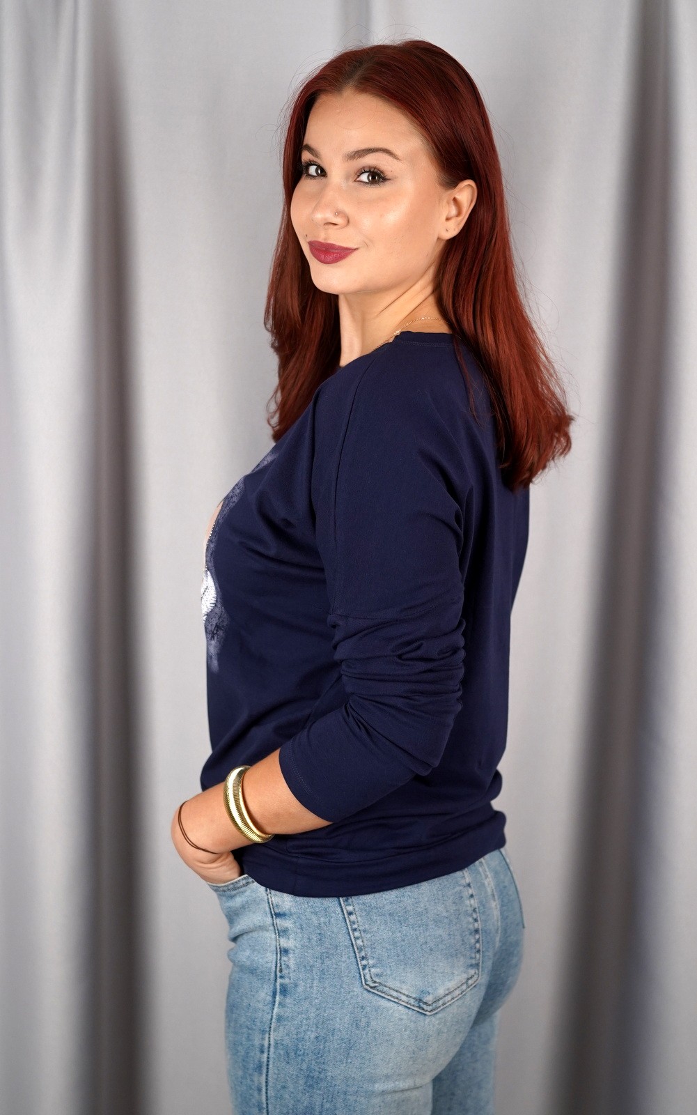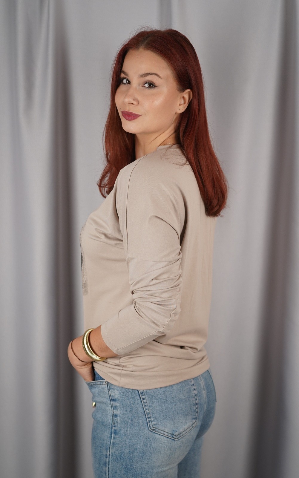 Ova ženska majica dugih rukava ističe se prekrasnim printom perja koji simbolizira lagodnost, slobodu i prirodnu eleganciju. Detalj vezice u struku omogućuje prilagodbu širine i dodatno naglašava ženstvenu siluetu, čineći ovaj model praktičnim i modernim u isto vrijeme. Mekan i udoban materijal osigurava ugodan osjećaj tijekom nošenja, dok decentni uzorak dodaje notu unikatnosti outfitu. Savršena je za svakodnevne kombinacije s trapericama ili ležernim hlačama, ali i za slojevite modne kombinacije kada želite unijeti poseban detalj u svoj izgled.
