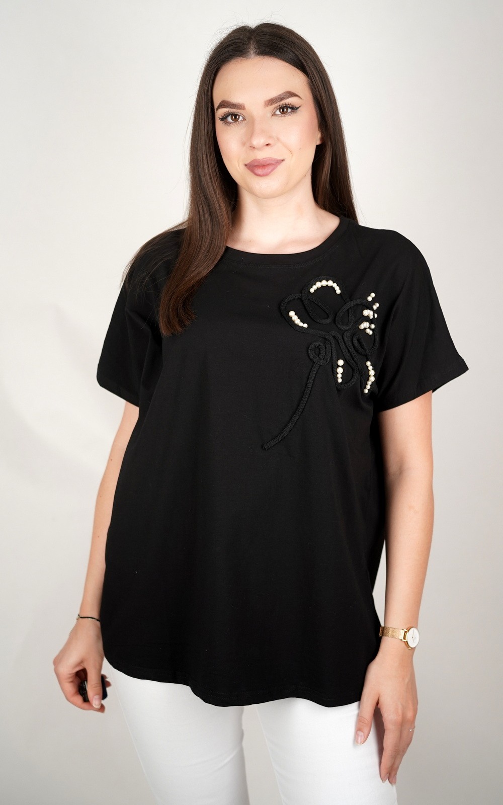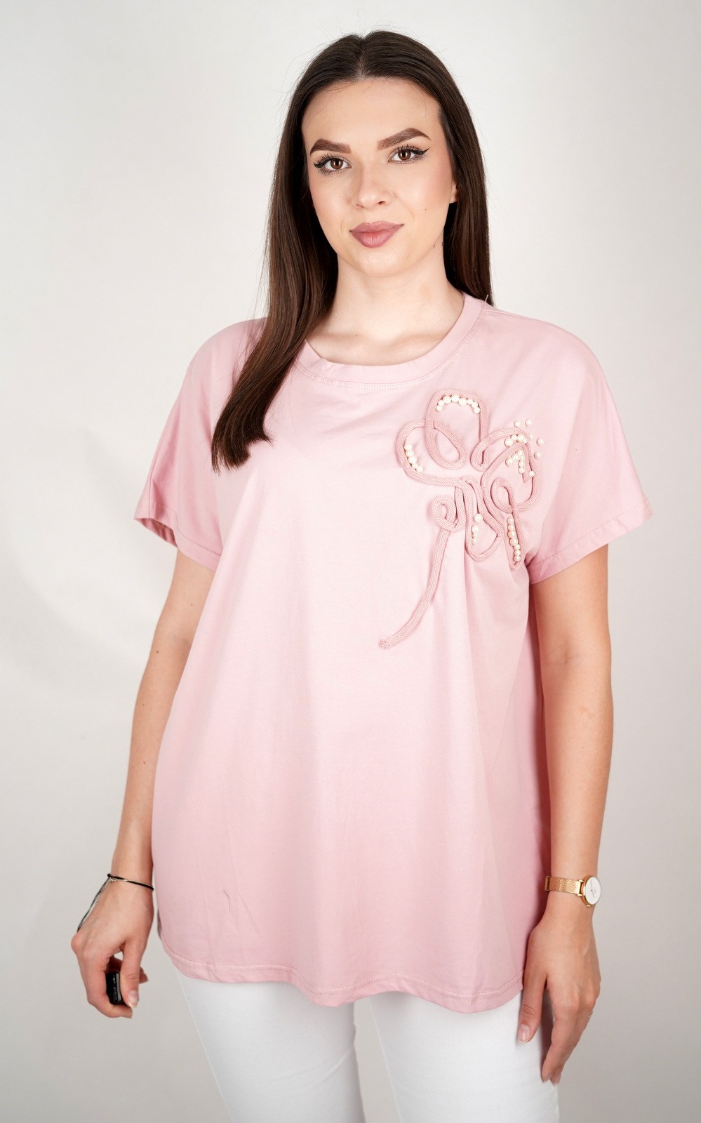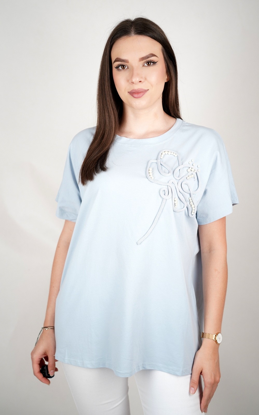 Ženska pamučna majica opuštenog kroja s 3D cvjetnim detaljem i ukrasnim perlicama- u veličinama – 17-256#
