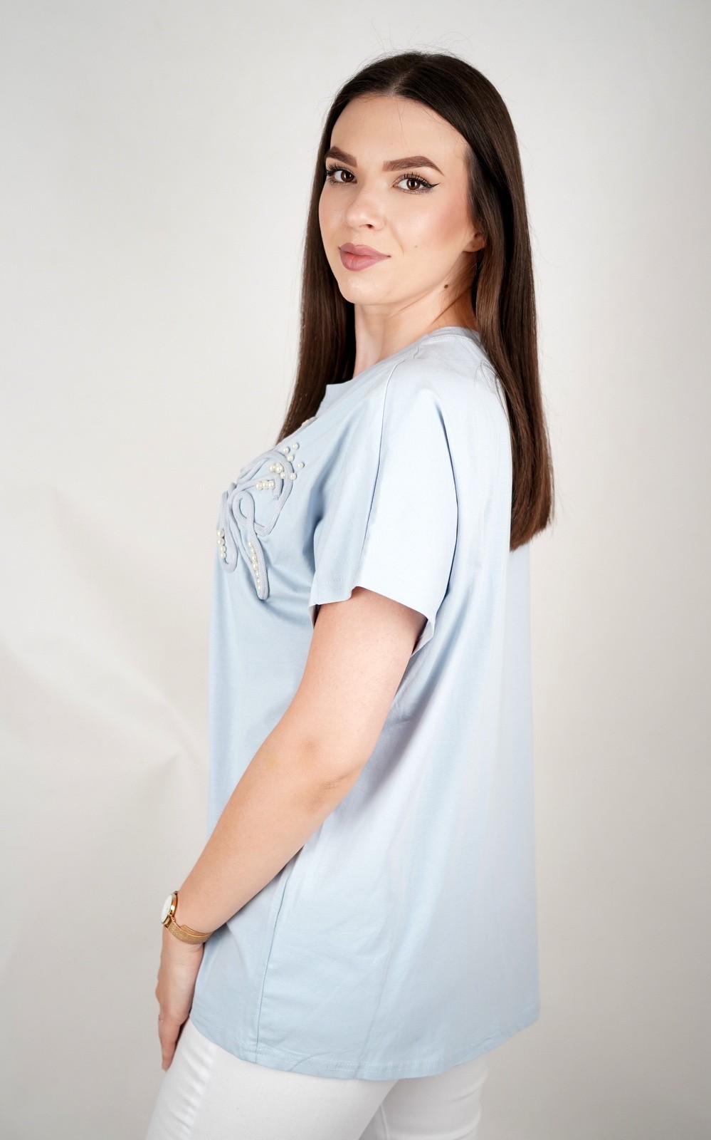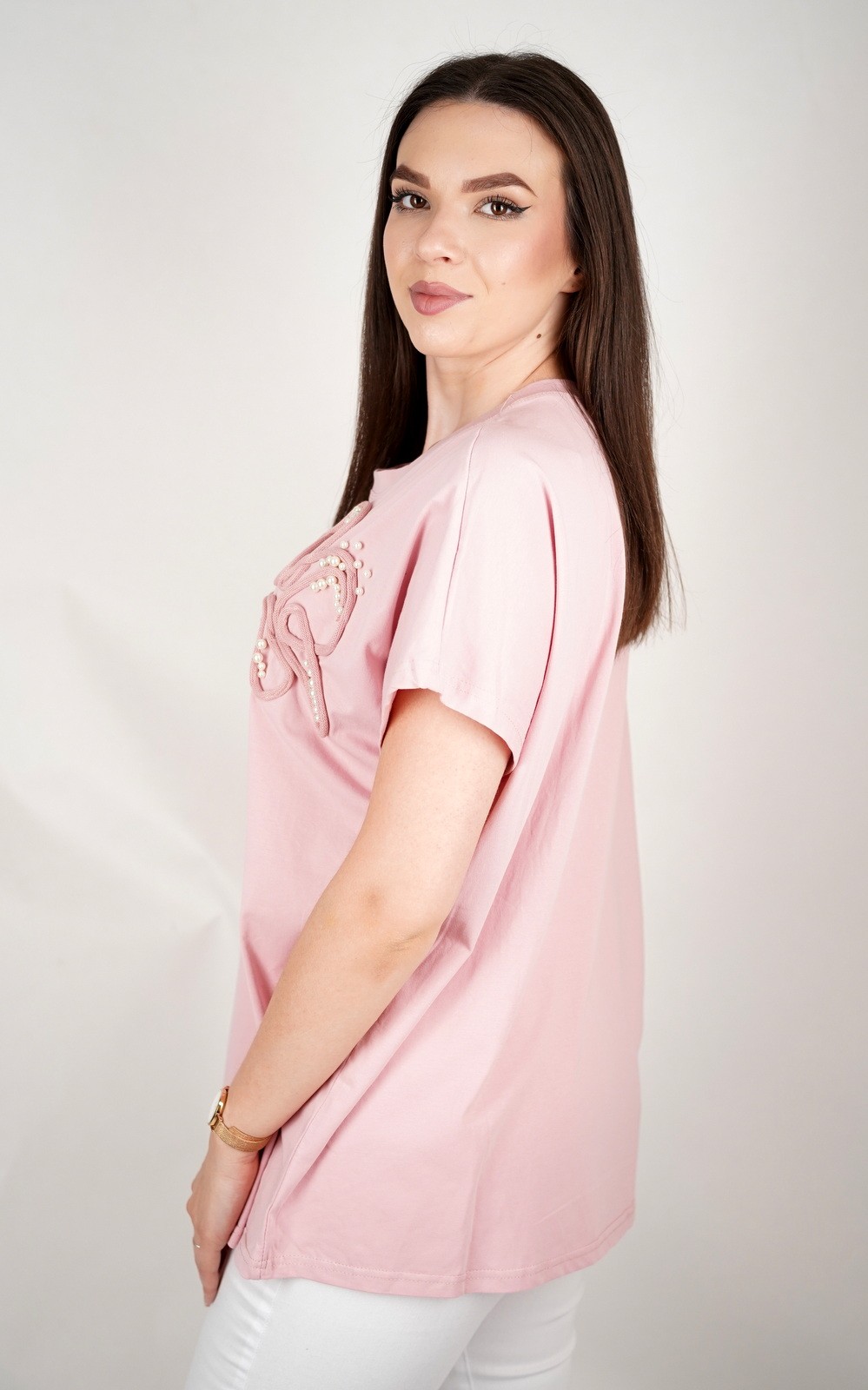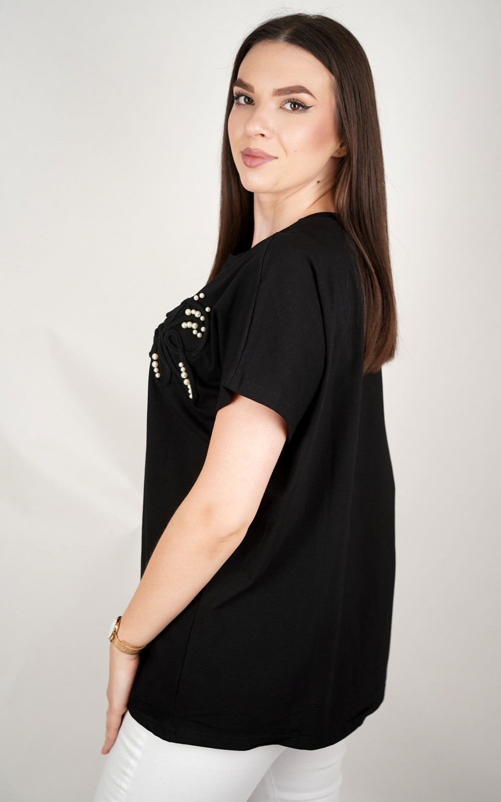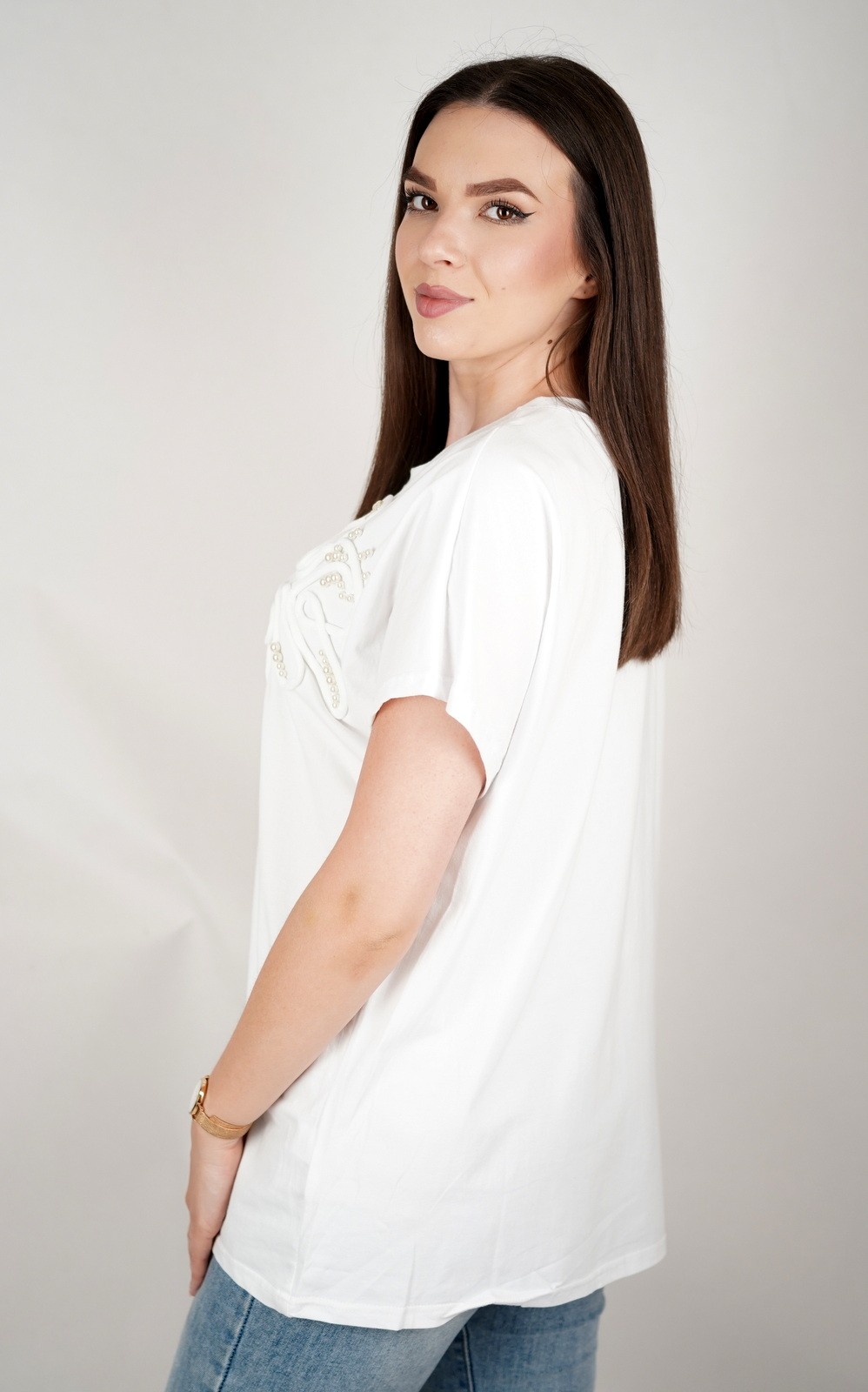 Ženska pamučna majica opuštenog kroja s 3D cvjetnim detaljem i ukrasnim perlicama- u veličinama – 17-256#