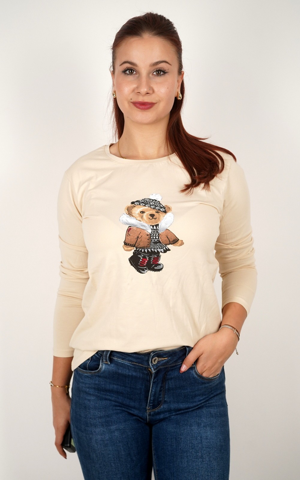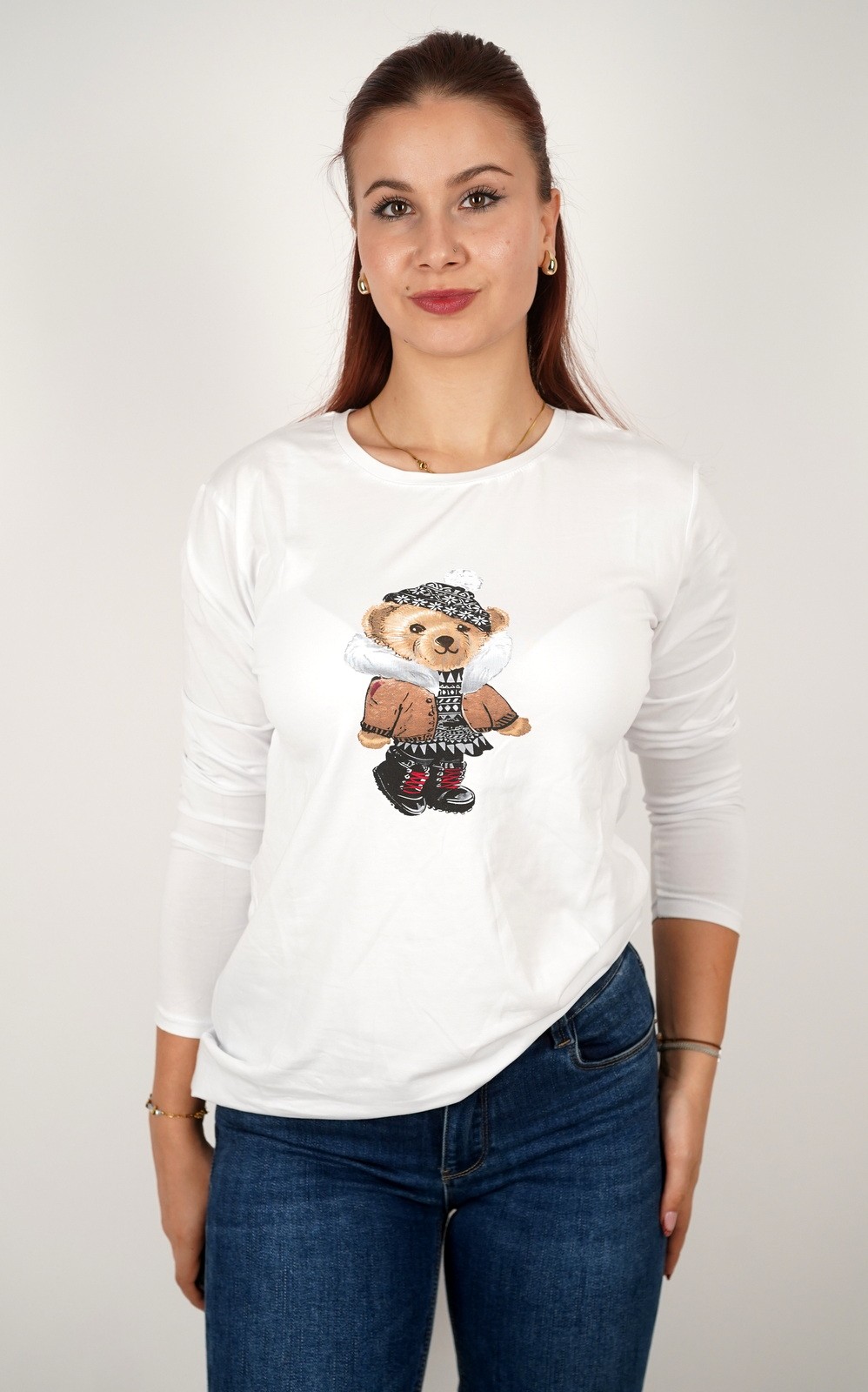 Ženska pamučna majica s printom medvjedića – u veličinama – 45011482